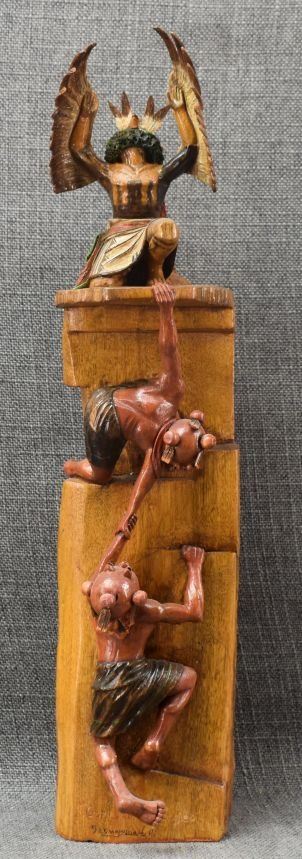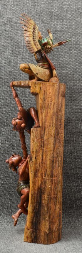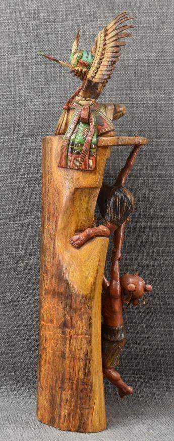 1990-2000's Hopi, carved and painted cottonwood titled "Gathering of Eagles" by Lomahquahu 17.25" tall