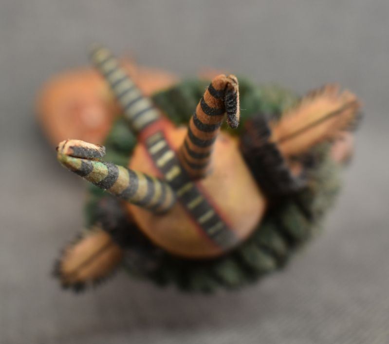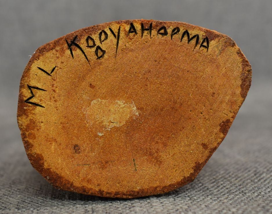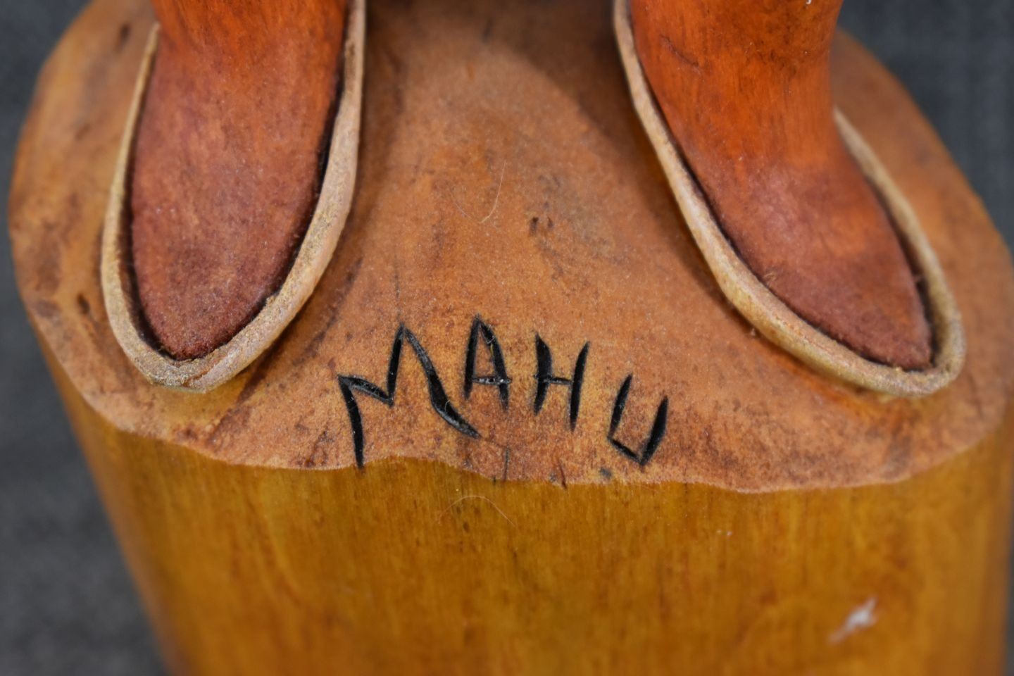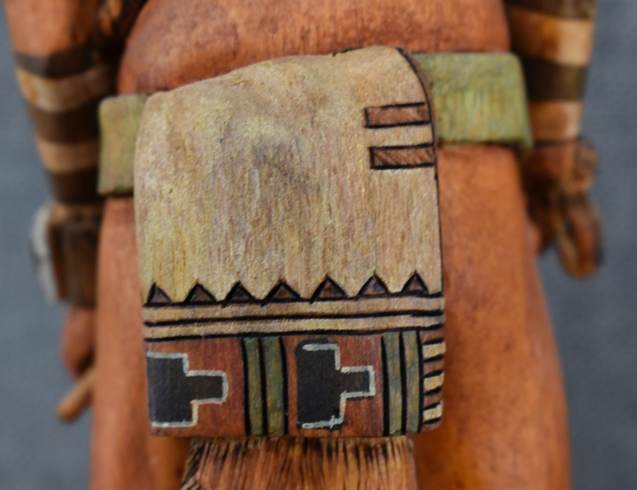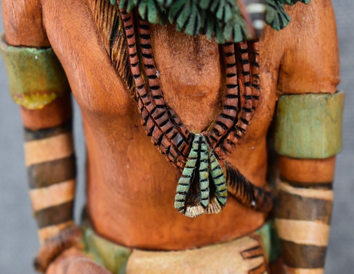 1990's Hopi. Hand carved and painted cotton wood kachina. Signed M.L. Kooyahopma. 15'' tall