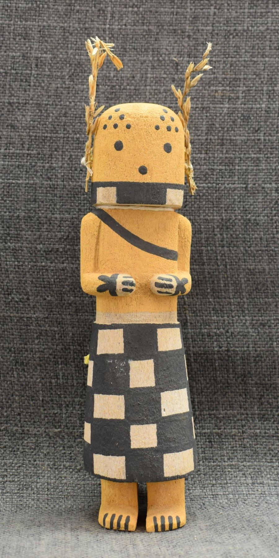 1990's Hopi, carved and painted cottonwood kachina signed with butterfly hallmark for Manuel Denet Chavarria 9.5" tall