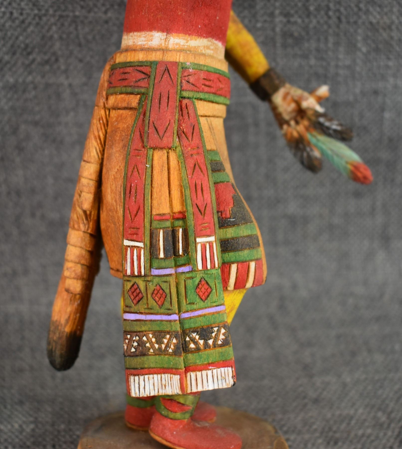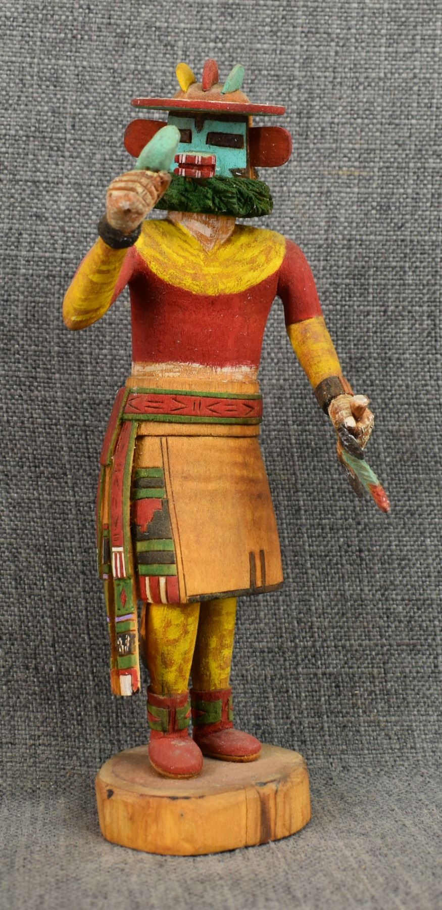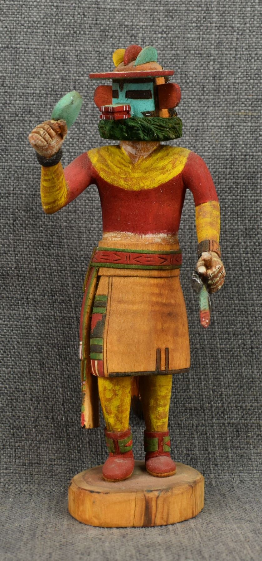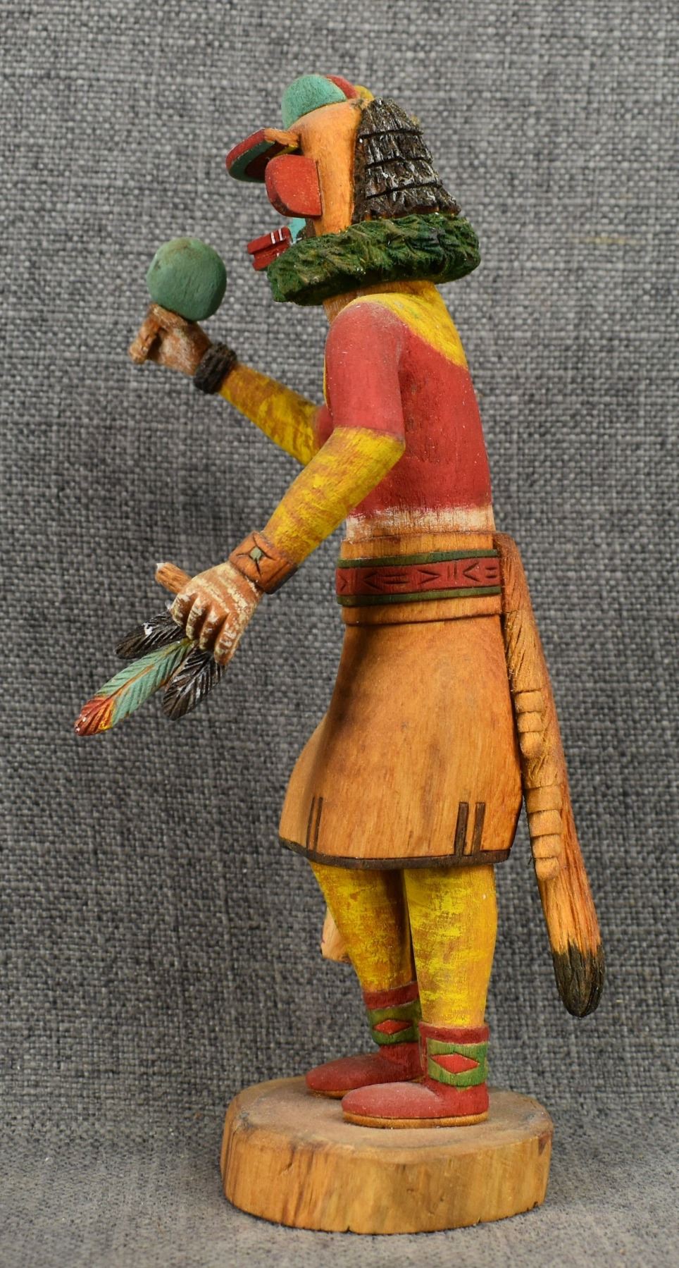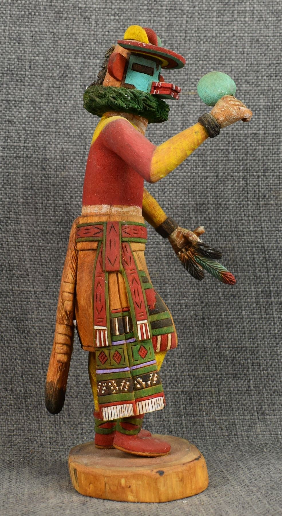 1990's Hopi . Hand carved and painted cotton wood kachina. Signed Marvin Polacca. 9.5'' tall