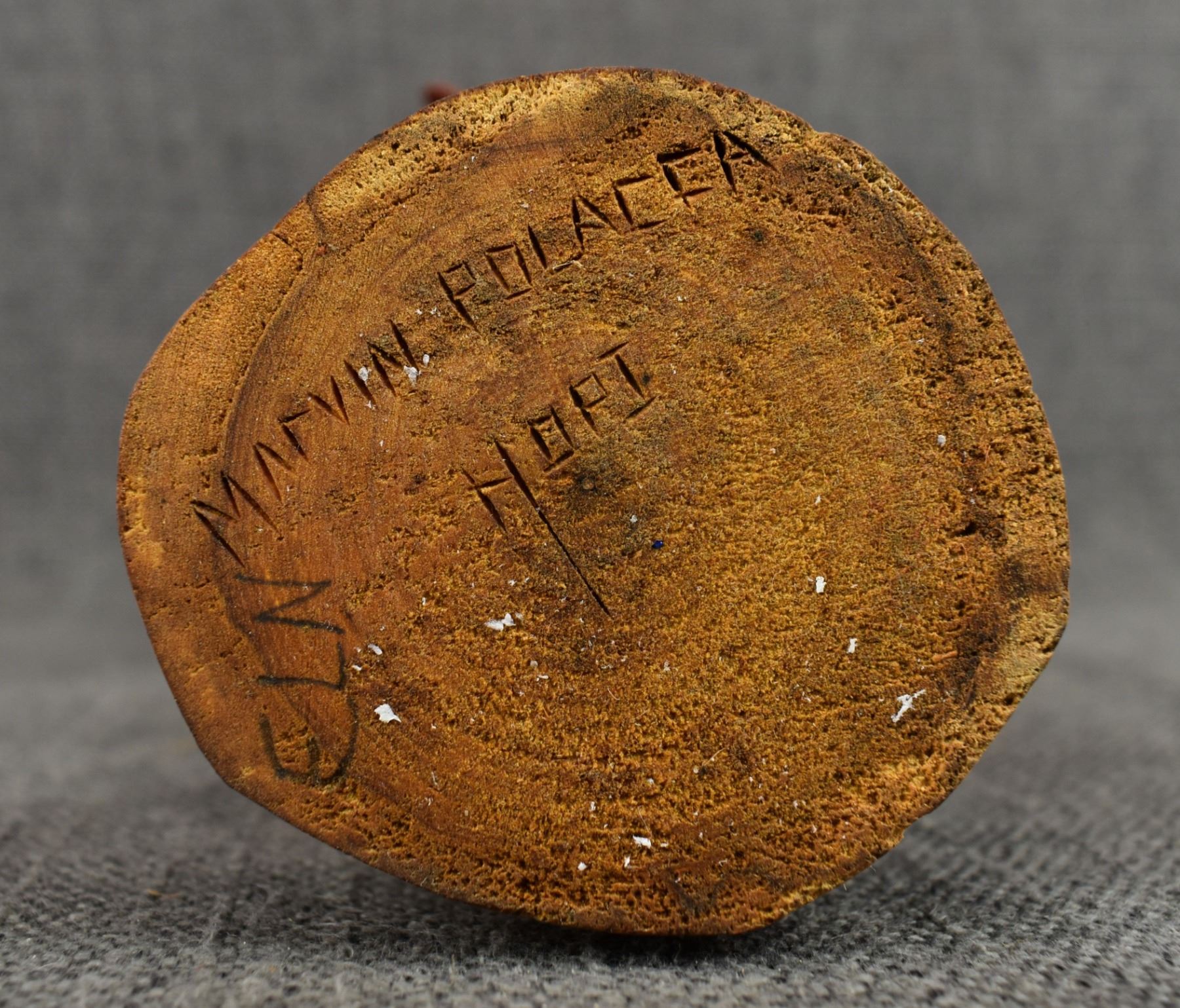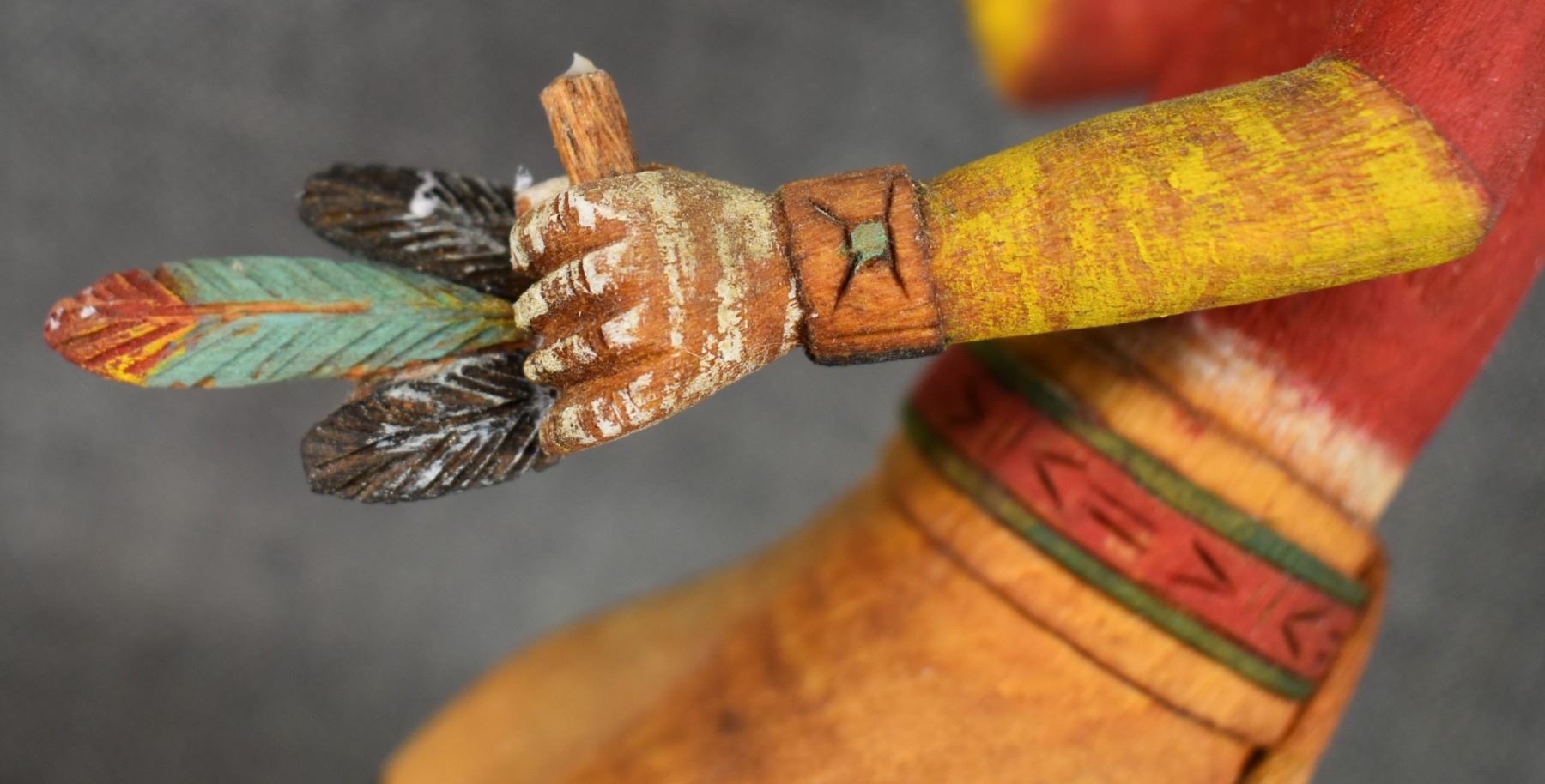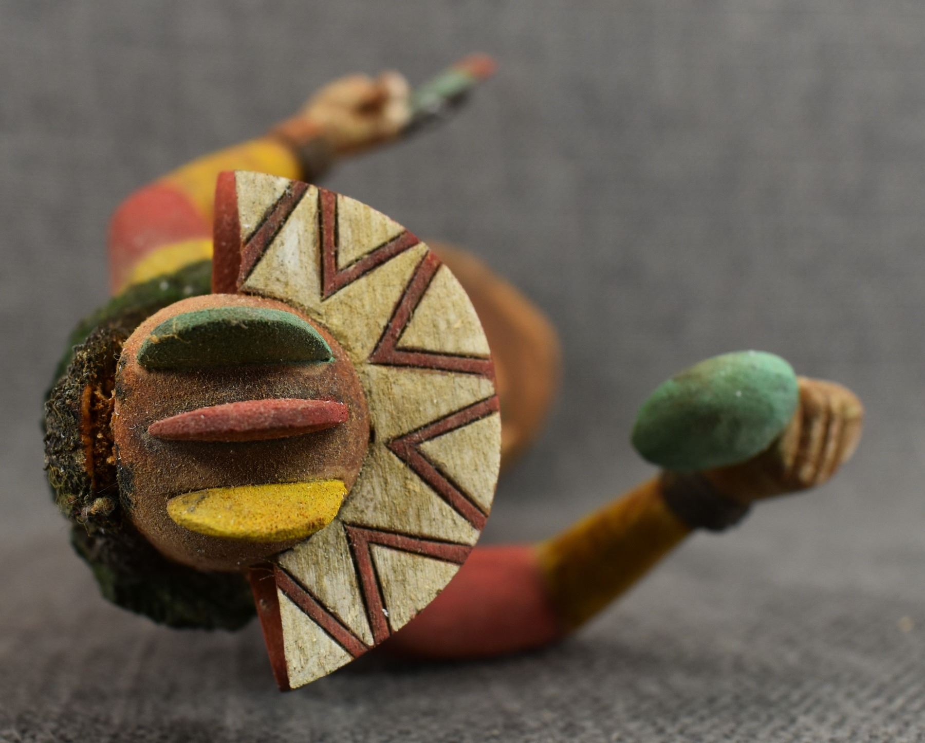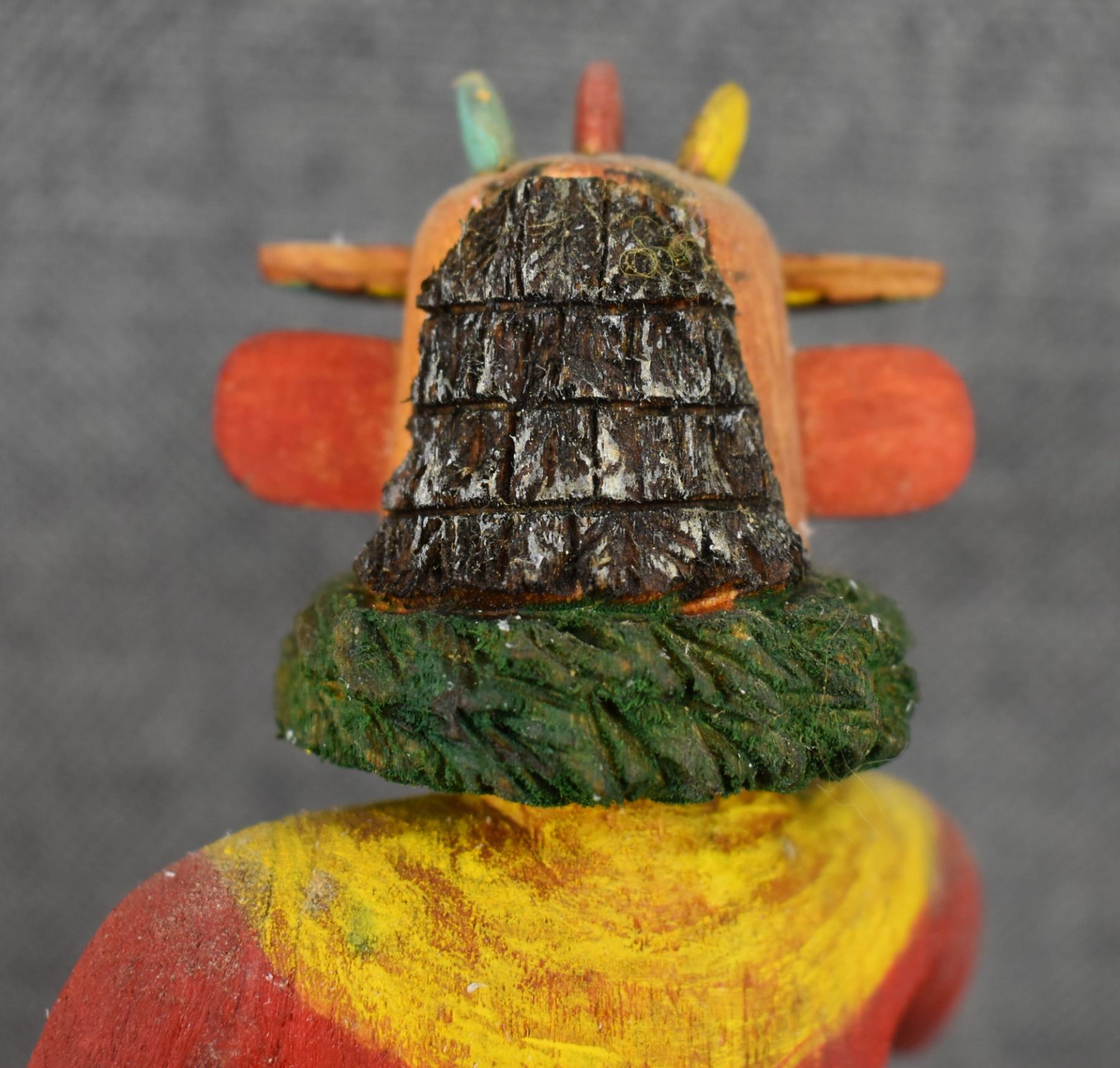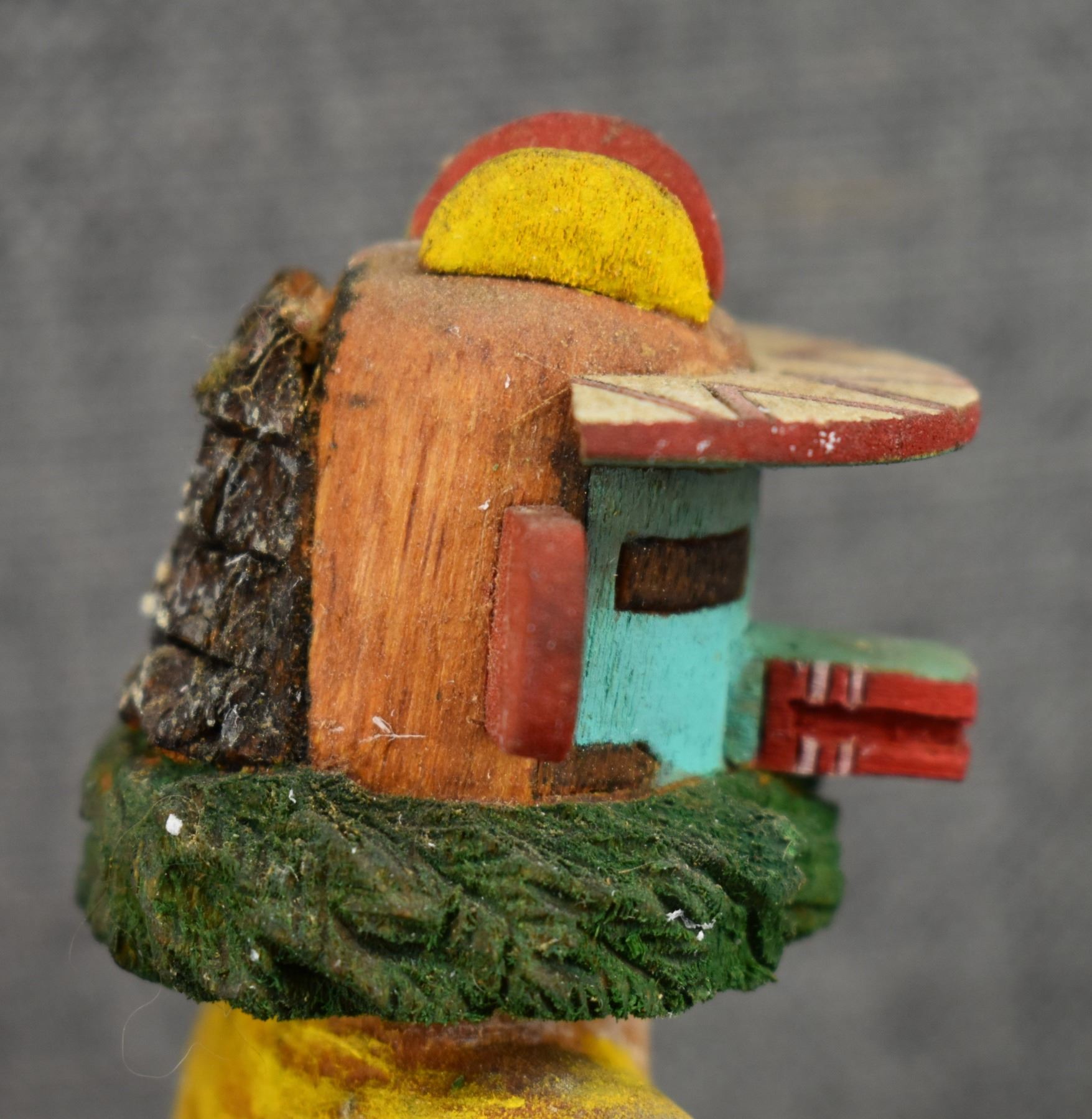 1990's Hopi . Hand carved and painted cotton wood kachina. Signed Marvin Polacca. 9.5'' tall
