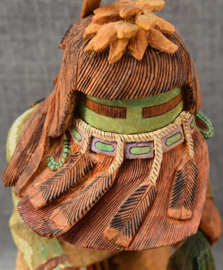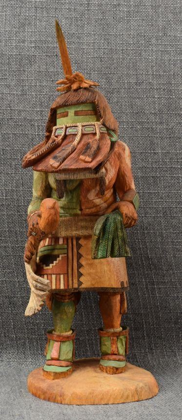 1990-2000's Hopi, carved and painted cottonwood titled "Long Hair Dancer" signed M Talahytewa 13" tall