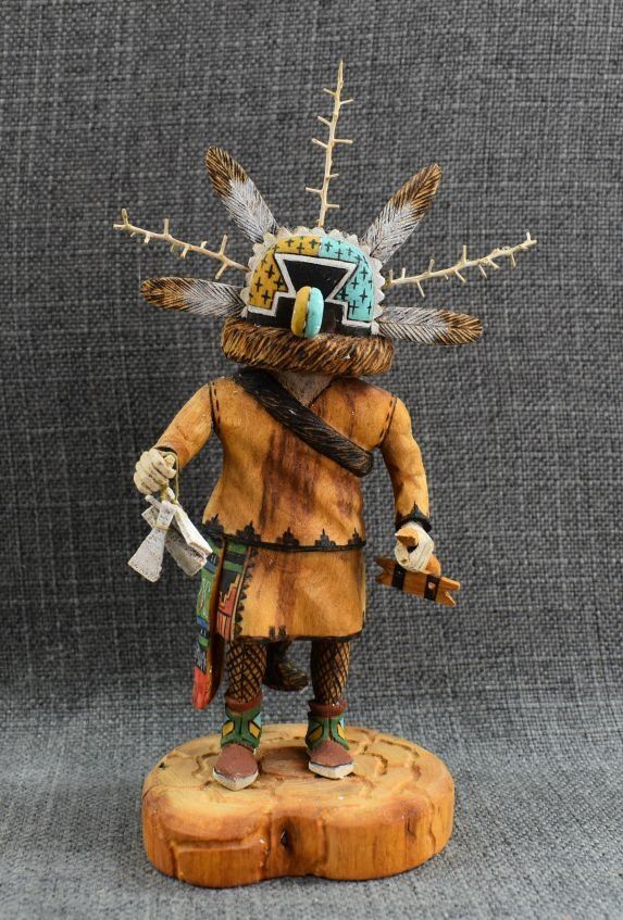 1990's Hopi, carved and painted cottonwood titled "WuWuyomo" by Preston Youvella 8" tall