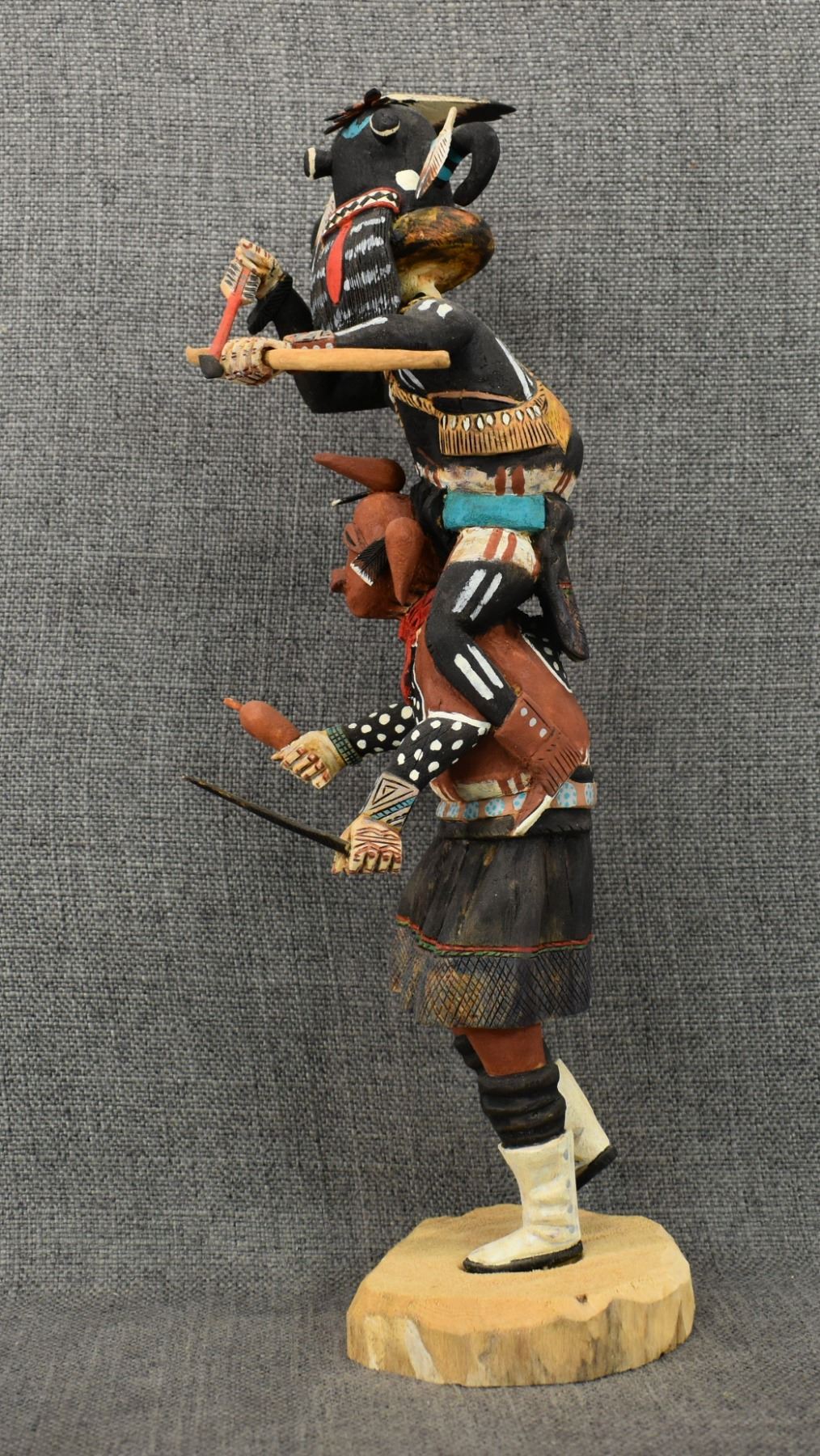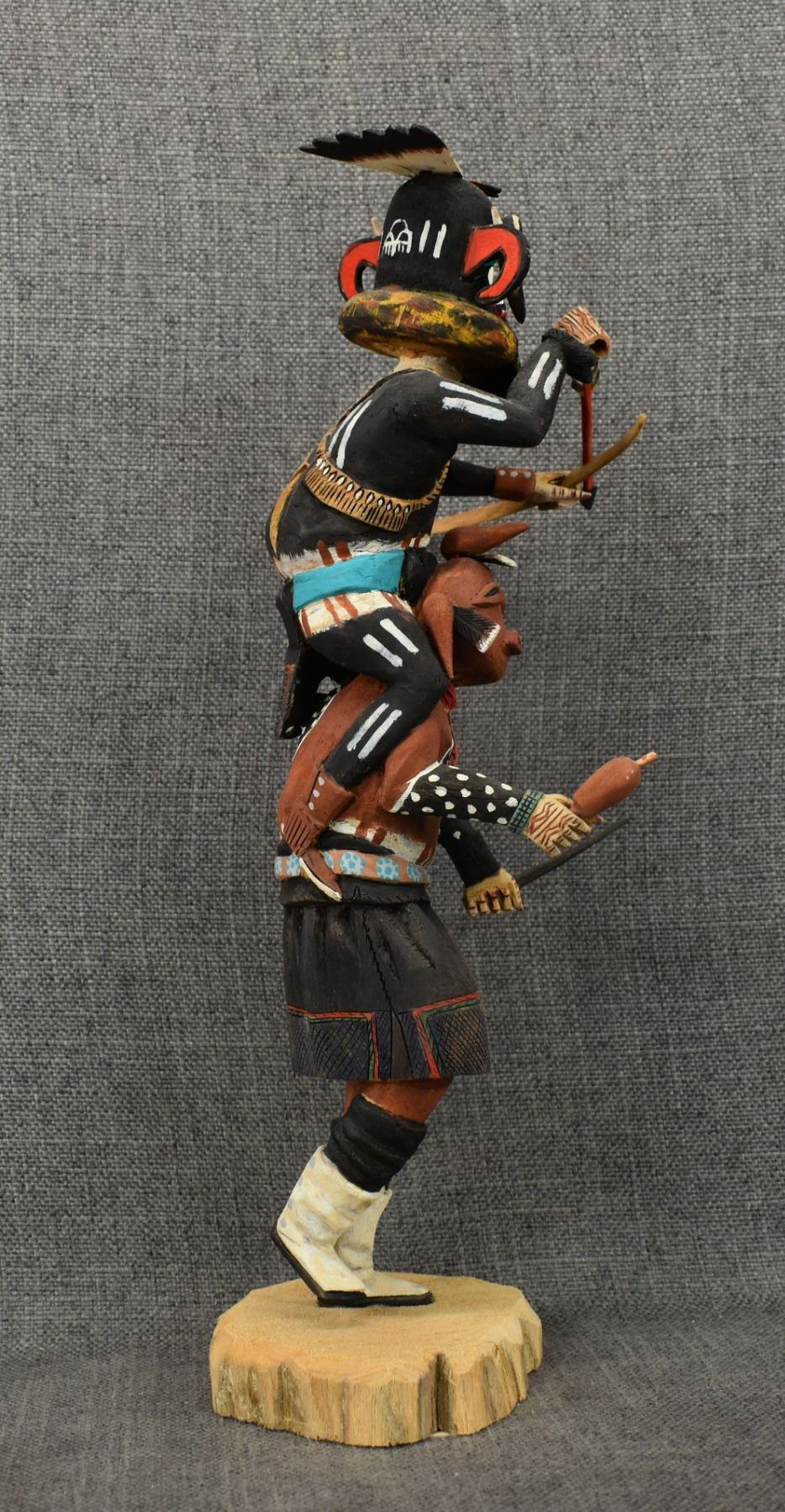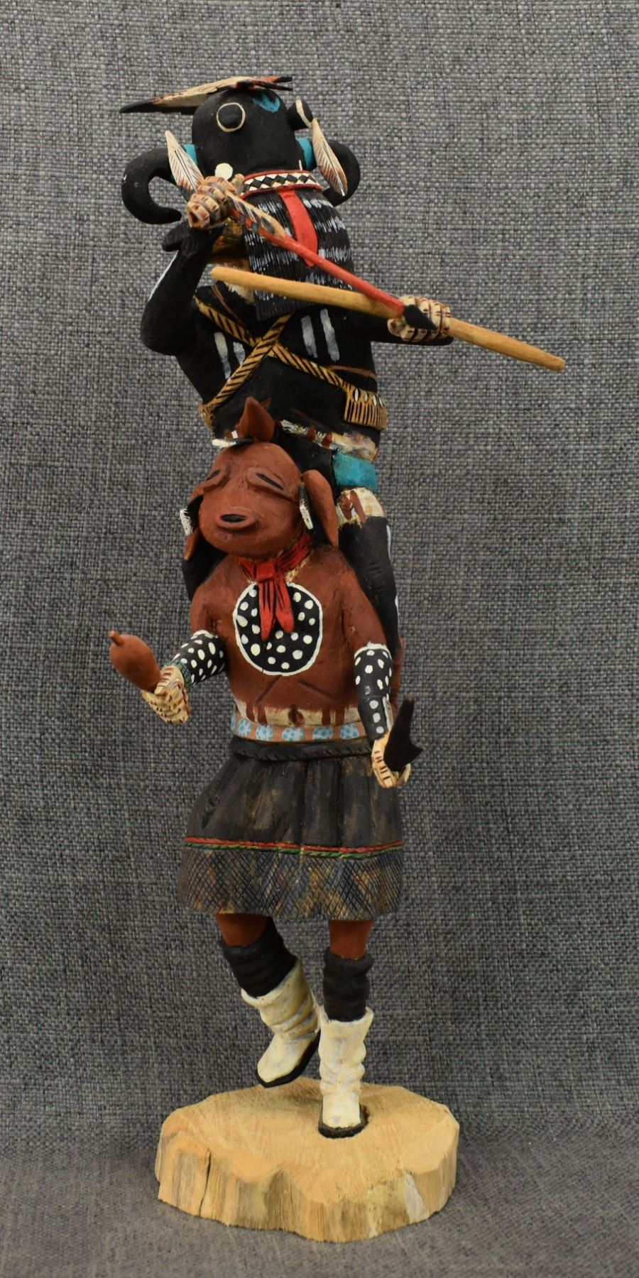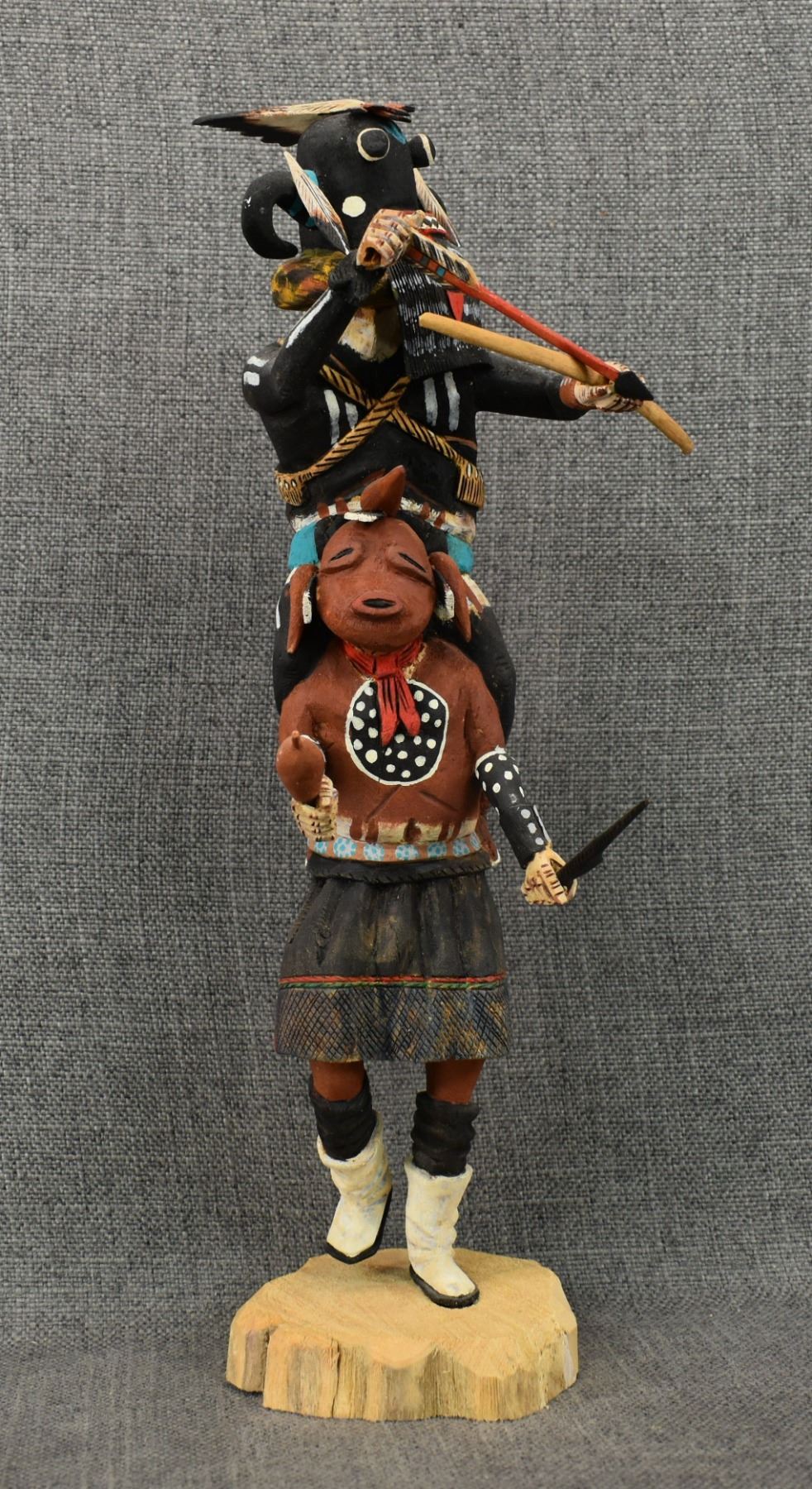 1980-90's Hopi, hand carved and painted cottonwood depicting Tuhavie and Koyemsi kachinas signed R Duwyenie 15" tall