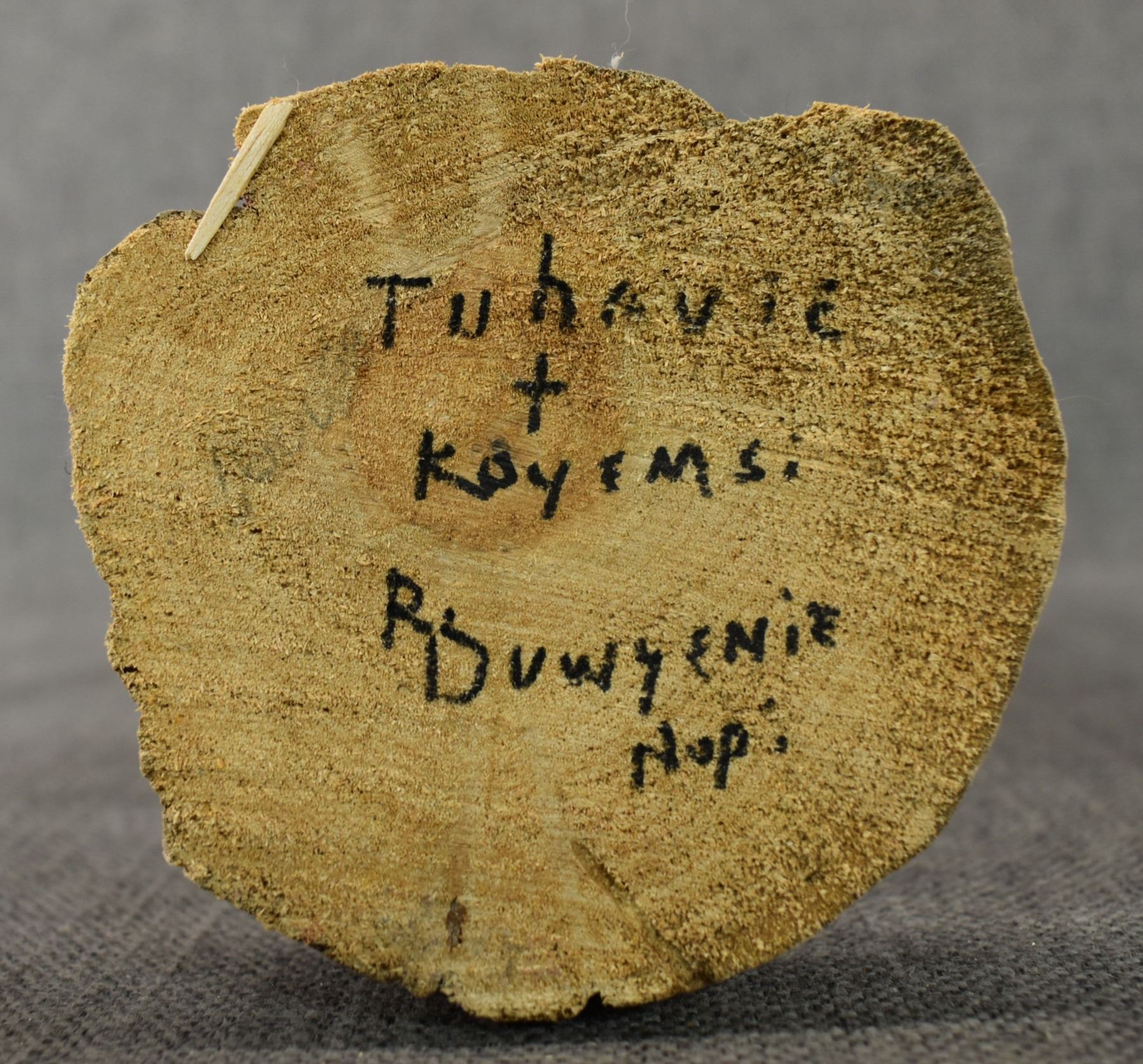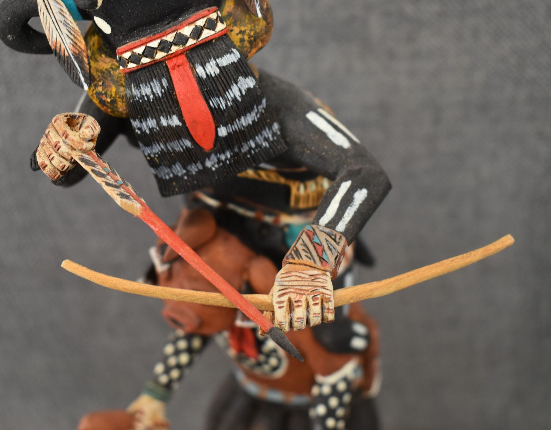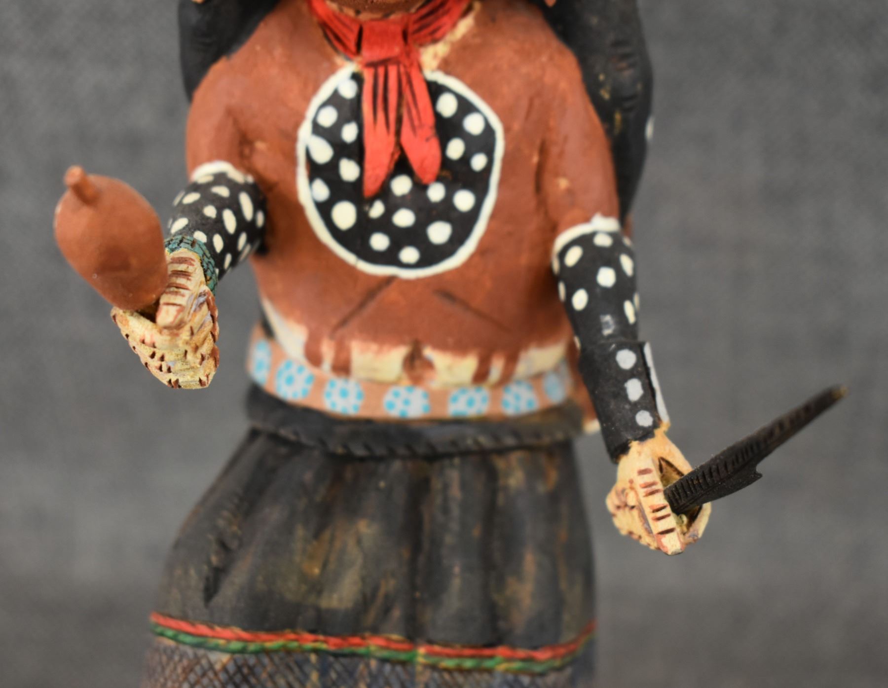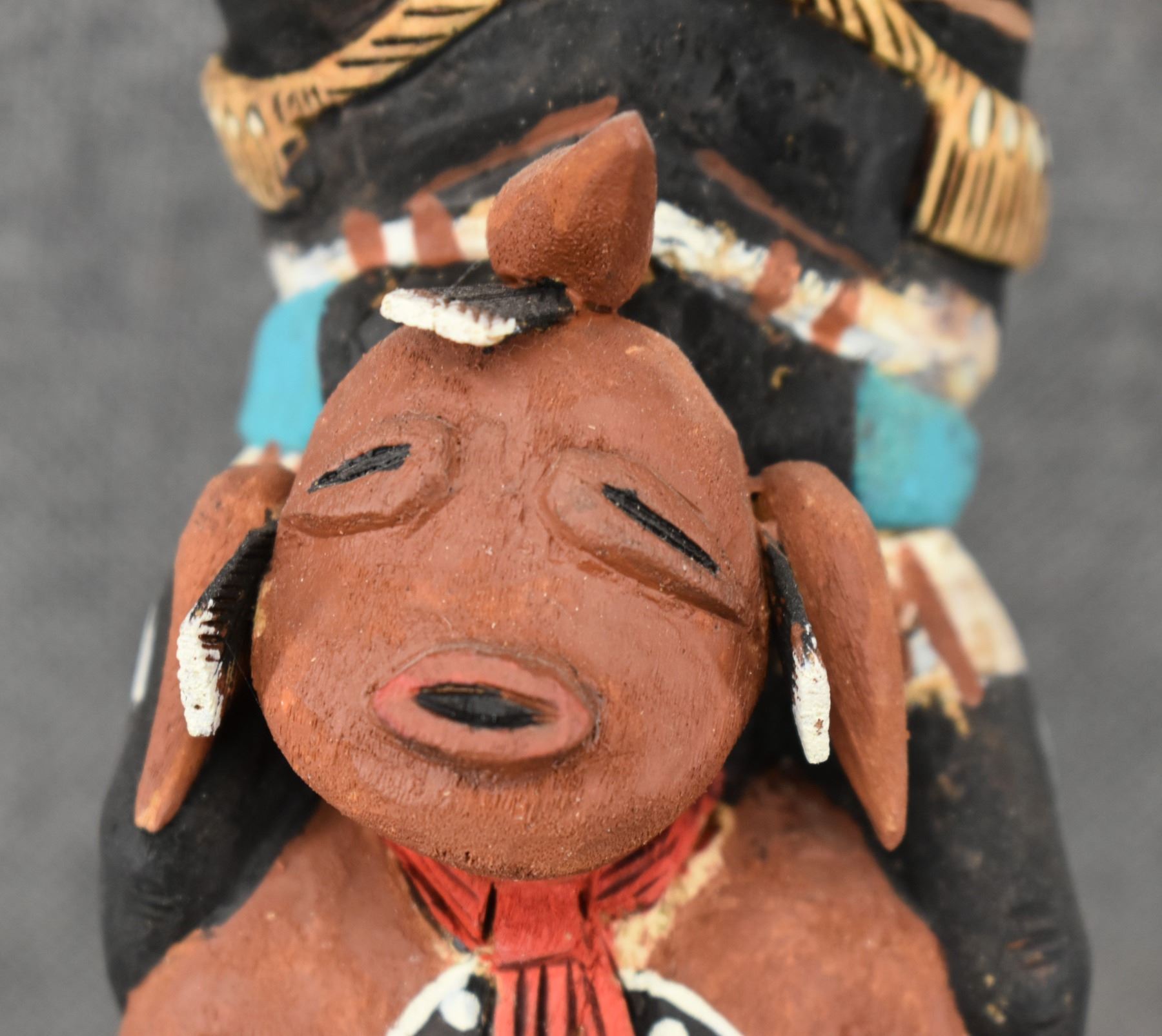 1980-90's Hopi, hand carved and painted cottonwood depicting Tuhavie and Koyemsi kachinas signed R Duwyenie 15" tall
