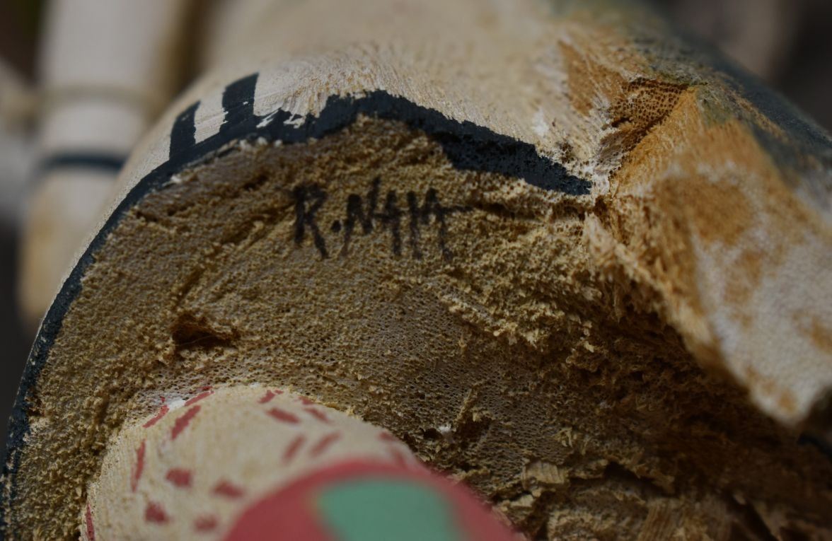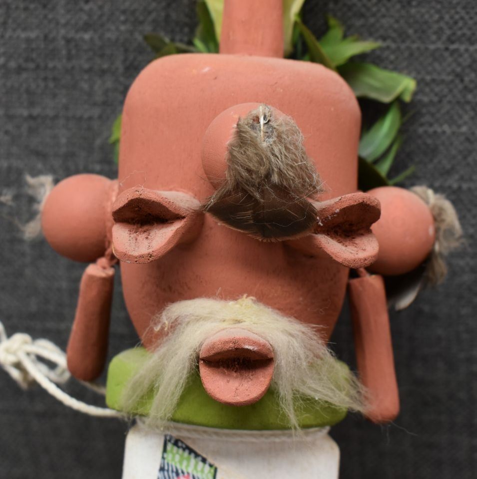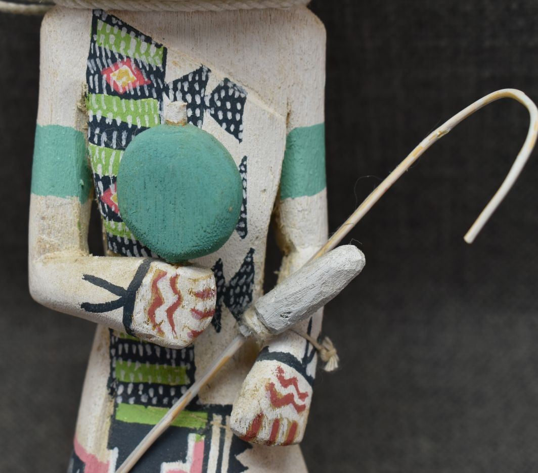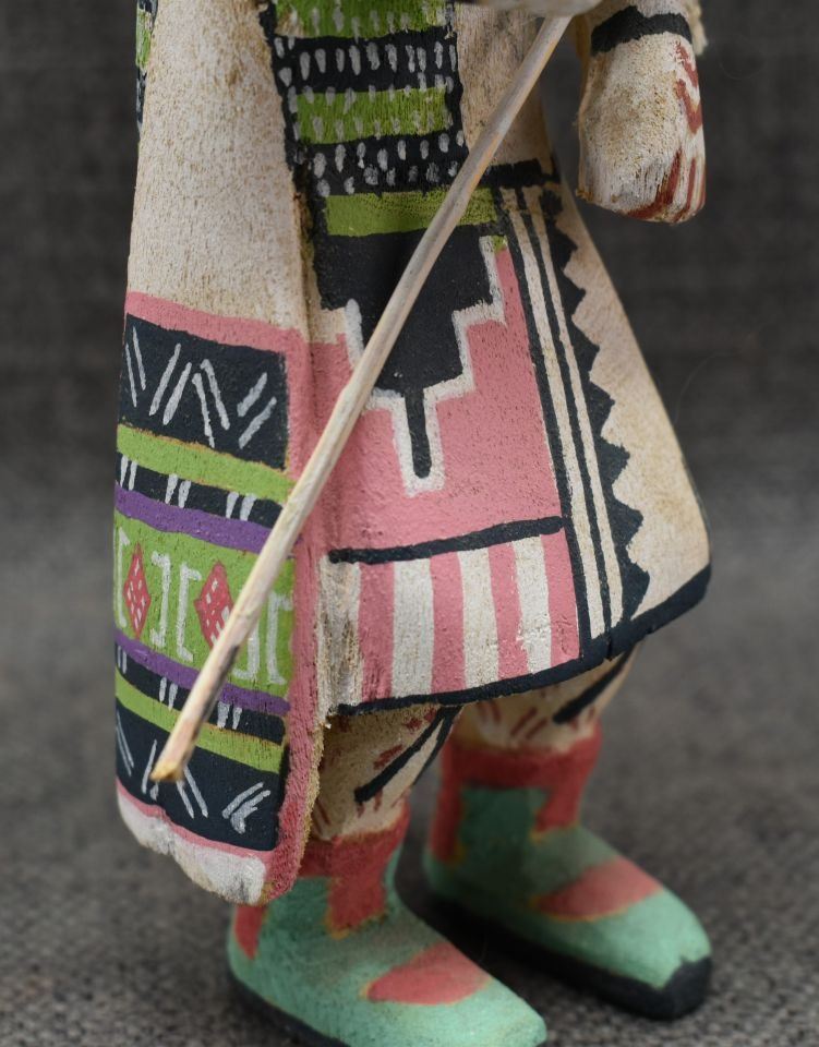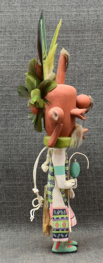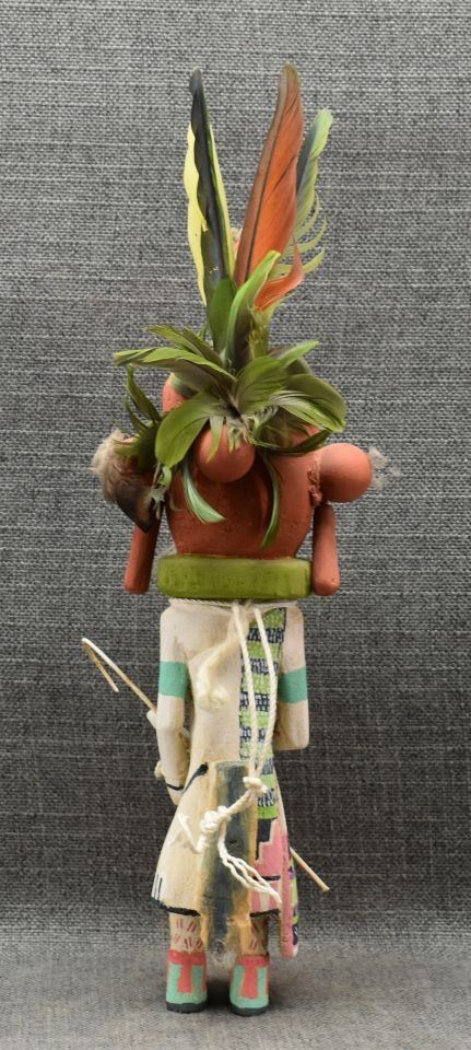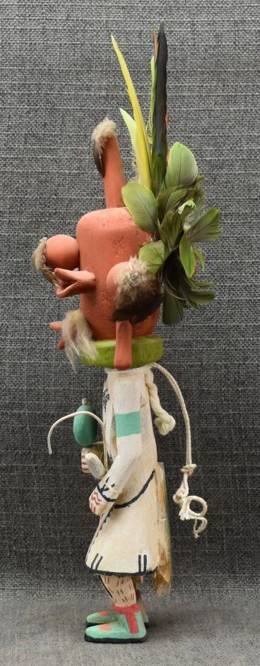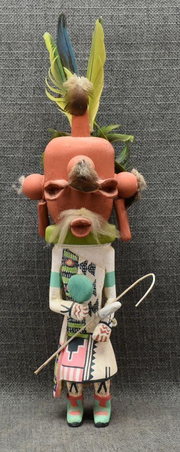 1990's Hopi. Hand carved and painted cotton wood kachina. Signed R. Naha. 15'' tall