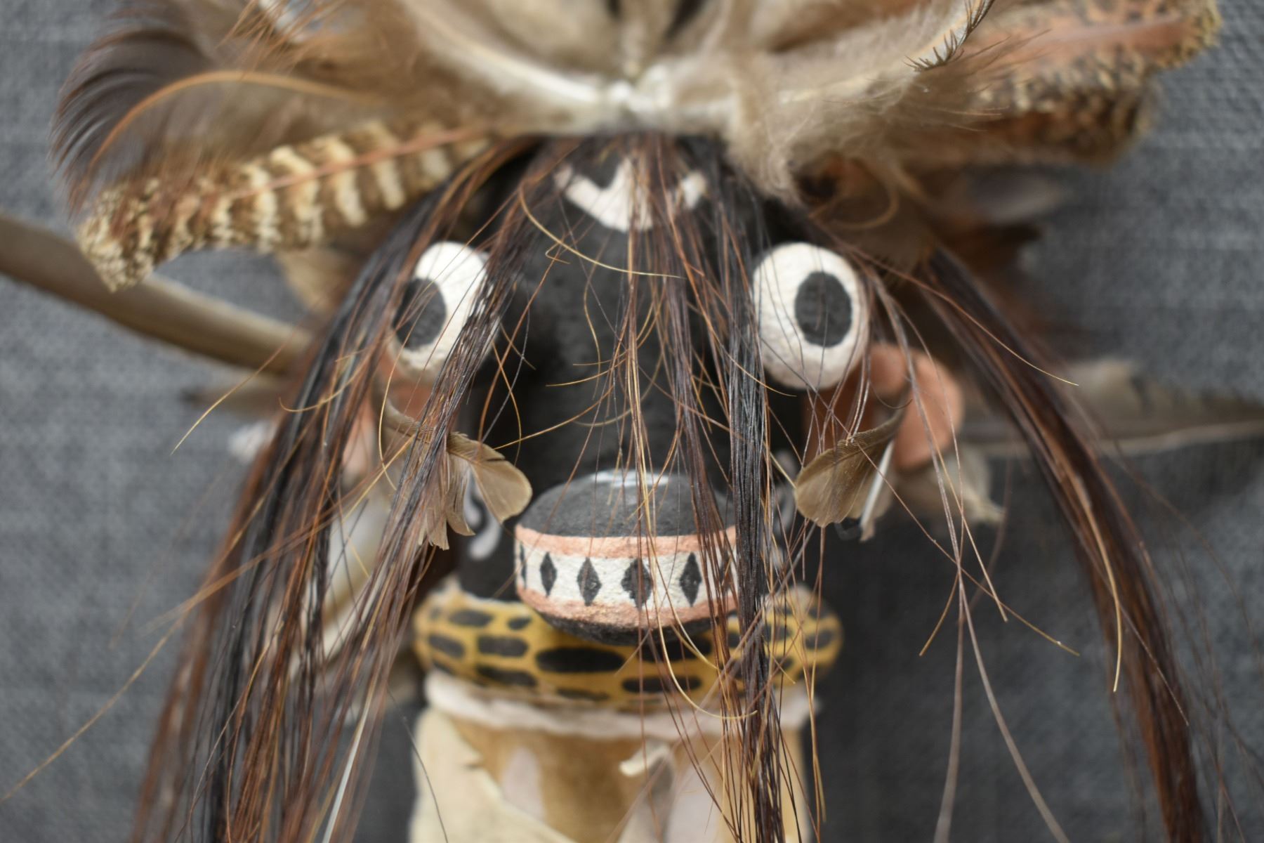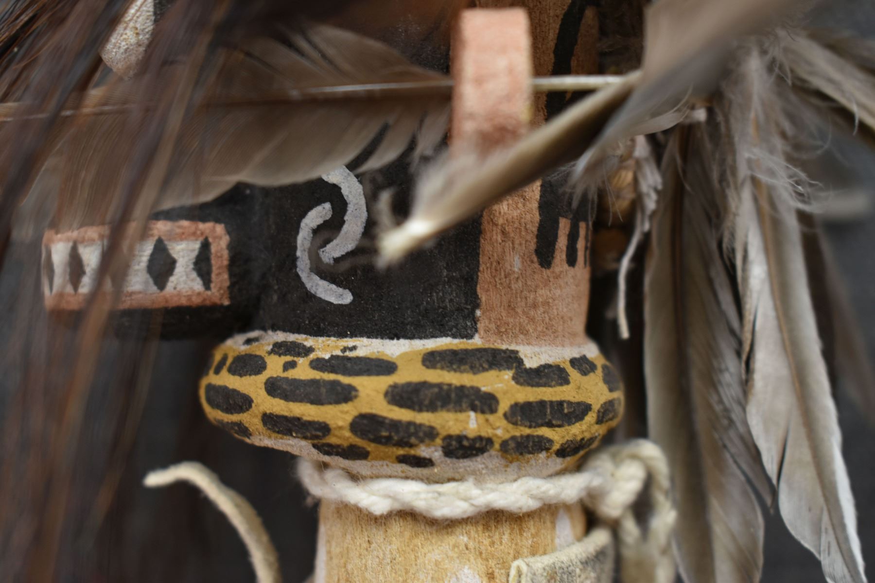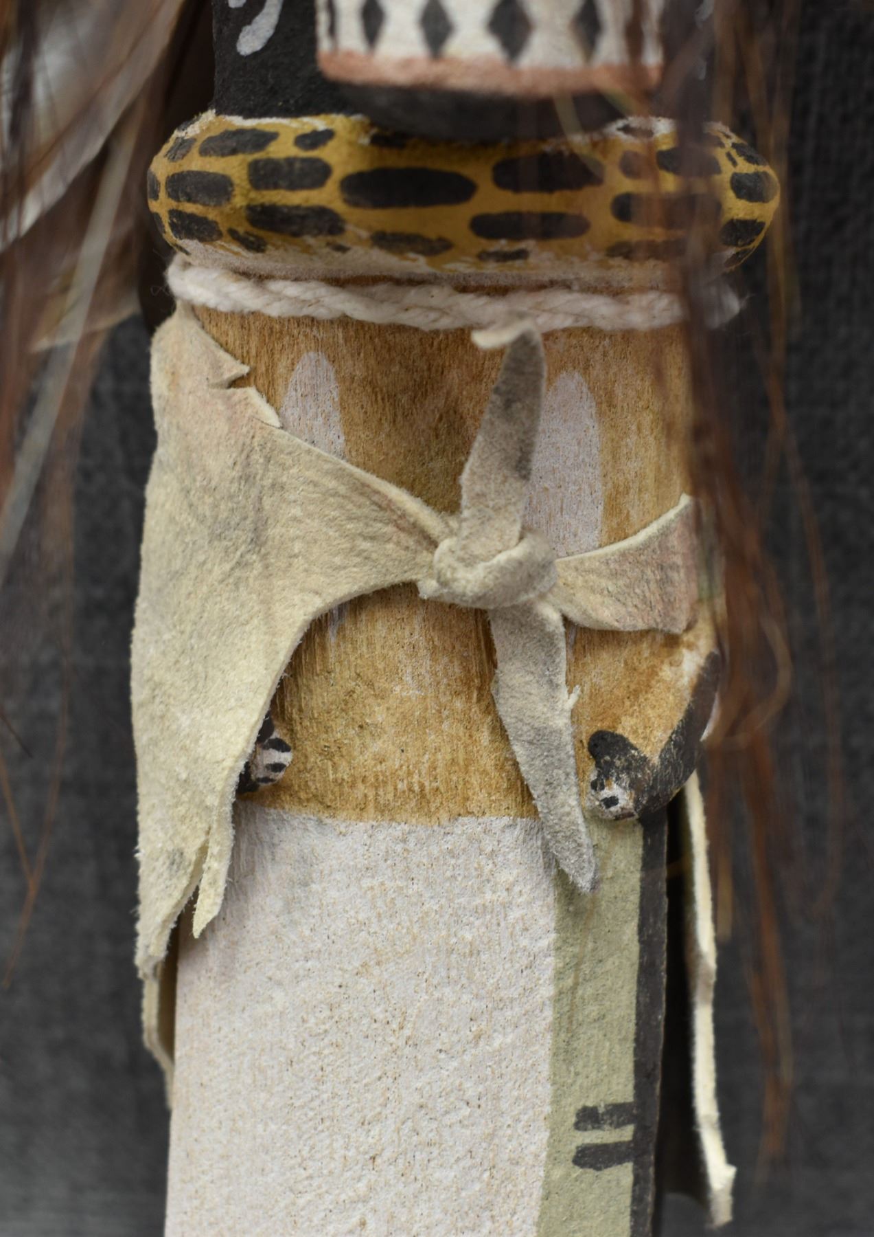 1980's Hopi. Hand carved and painted cotton wood kachina. Attributed to Randy Brokeshoulder. 13'' tall