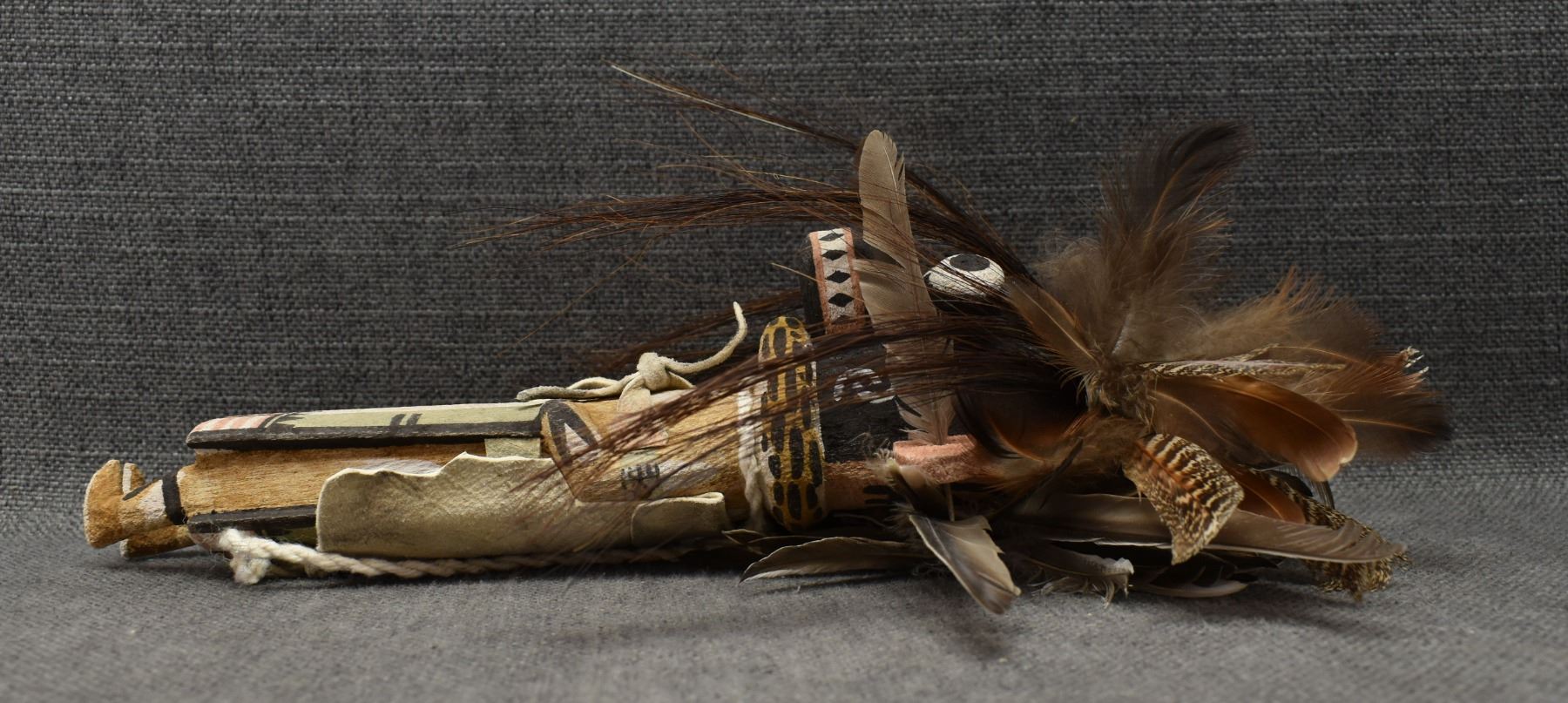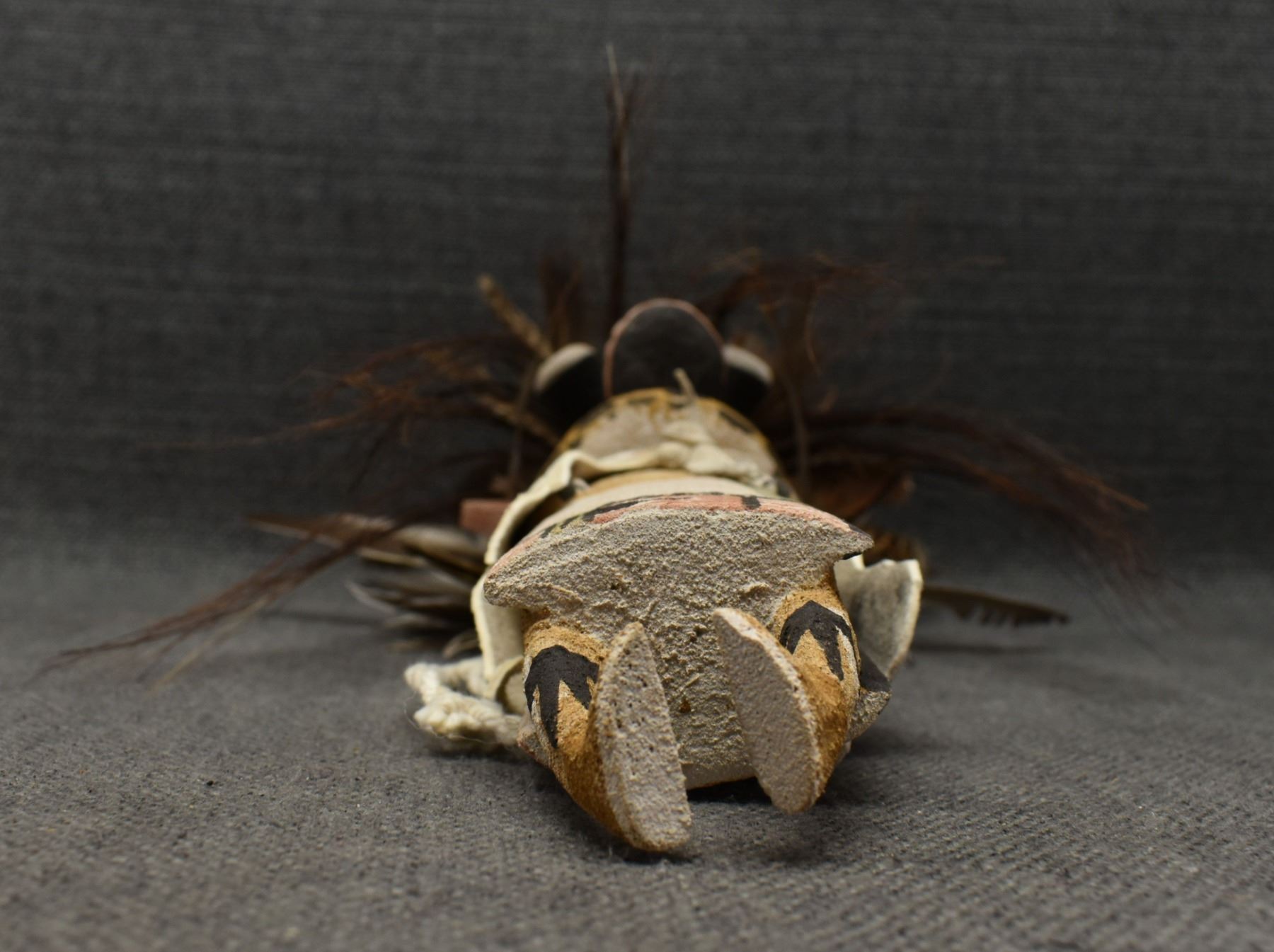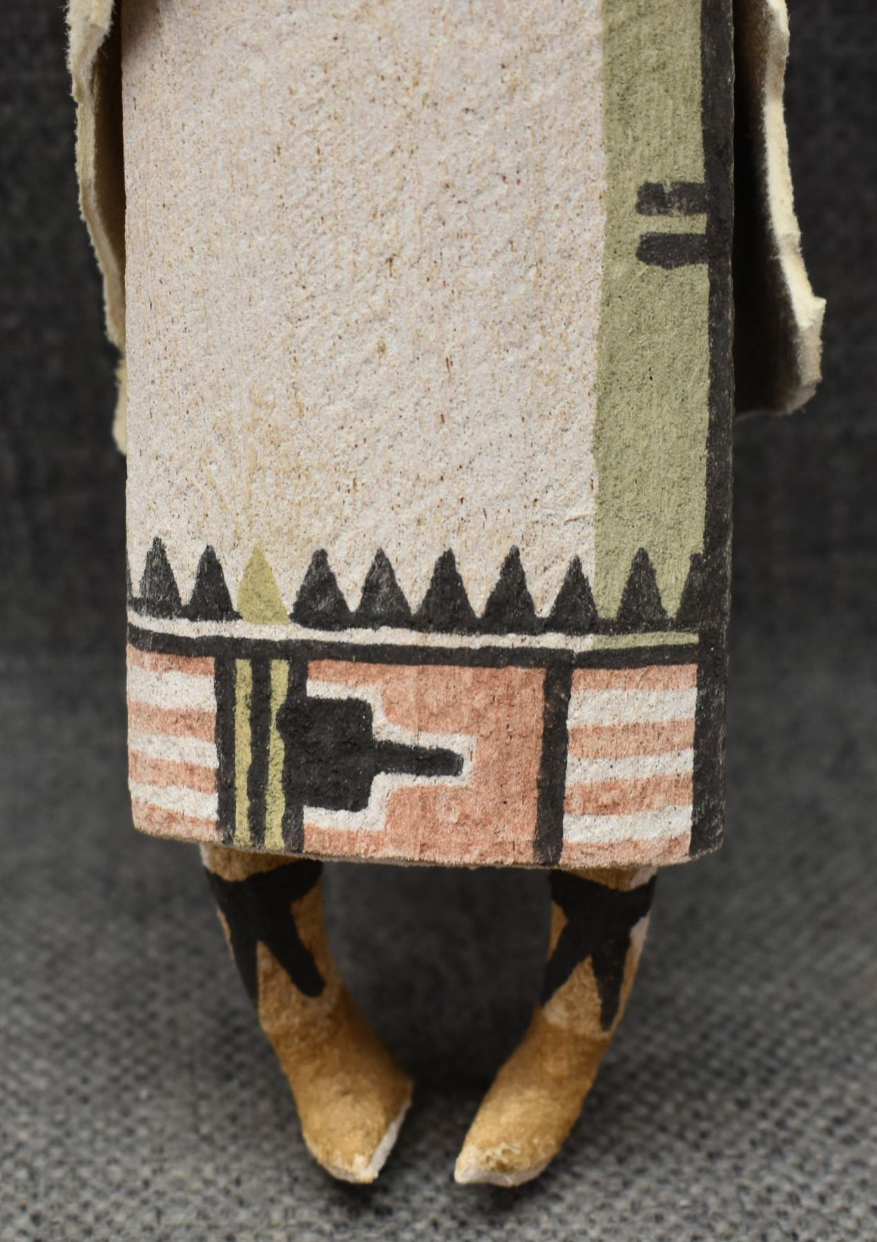 1980's Hopi. Hand carved and painted cotton wood kachina. Attributed to Randy Brokeshoulder. 13'' tall