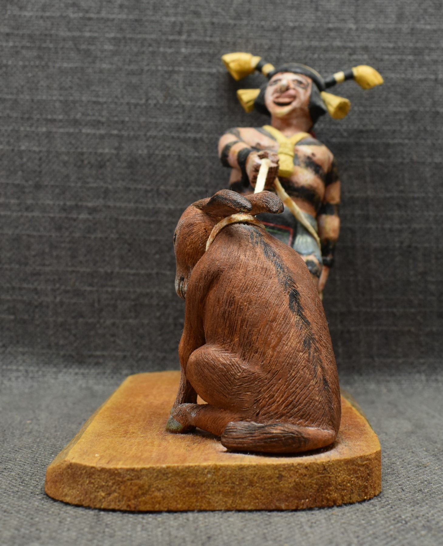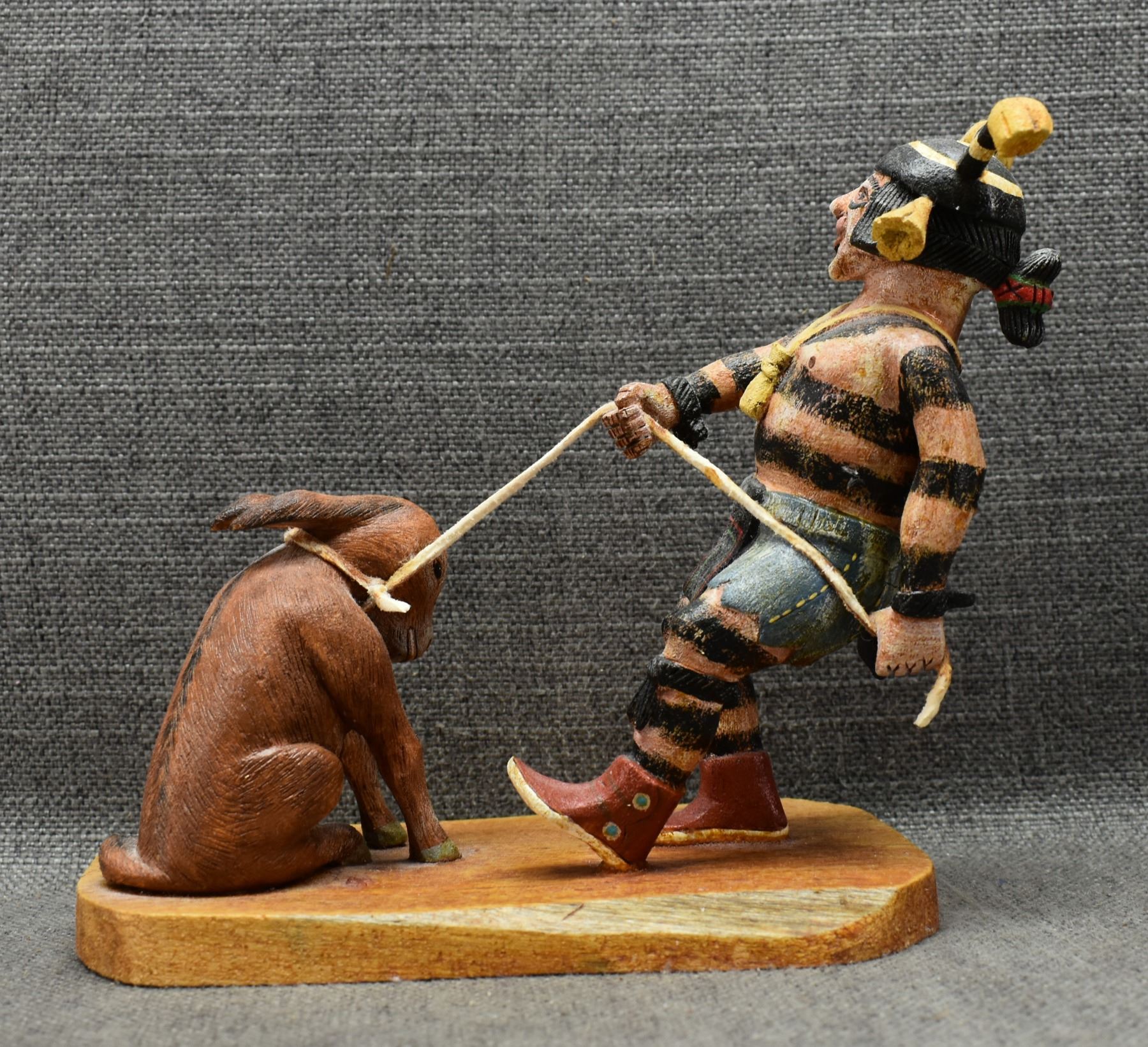1996 Hopi. Hand carved and painted cotton wood kachina scene signed Regina Naha. 7'' x 7'' x 4''