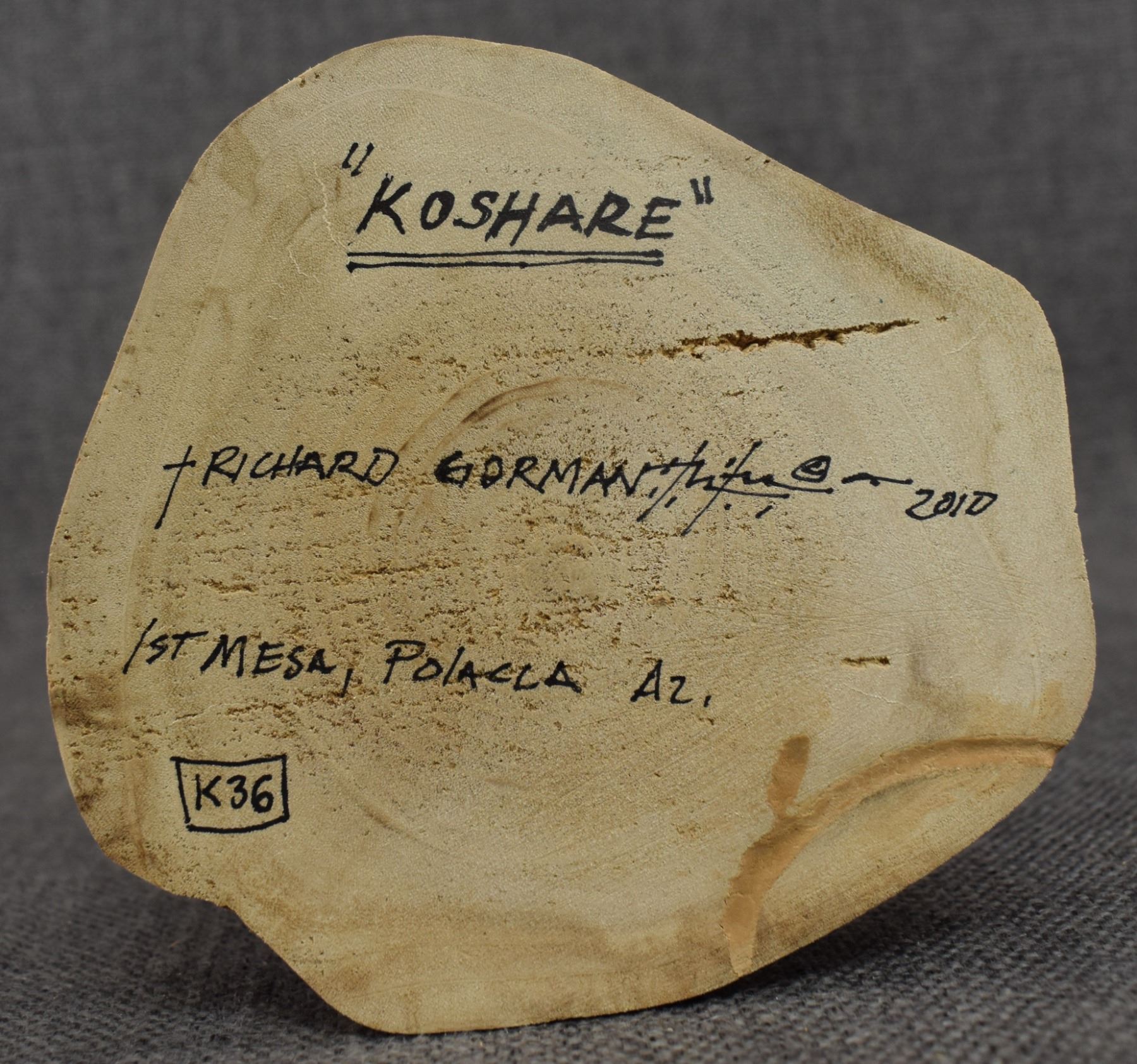 2010 Hopi. Hand carved and painted cotton wood kachina. Signed Richard Gorman. 11'' tall