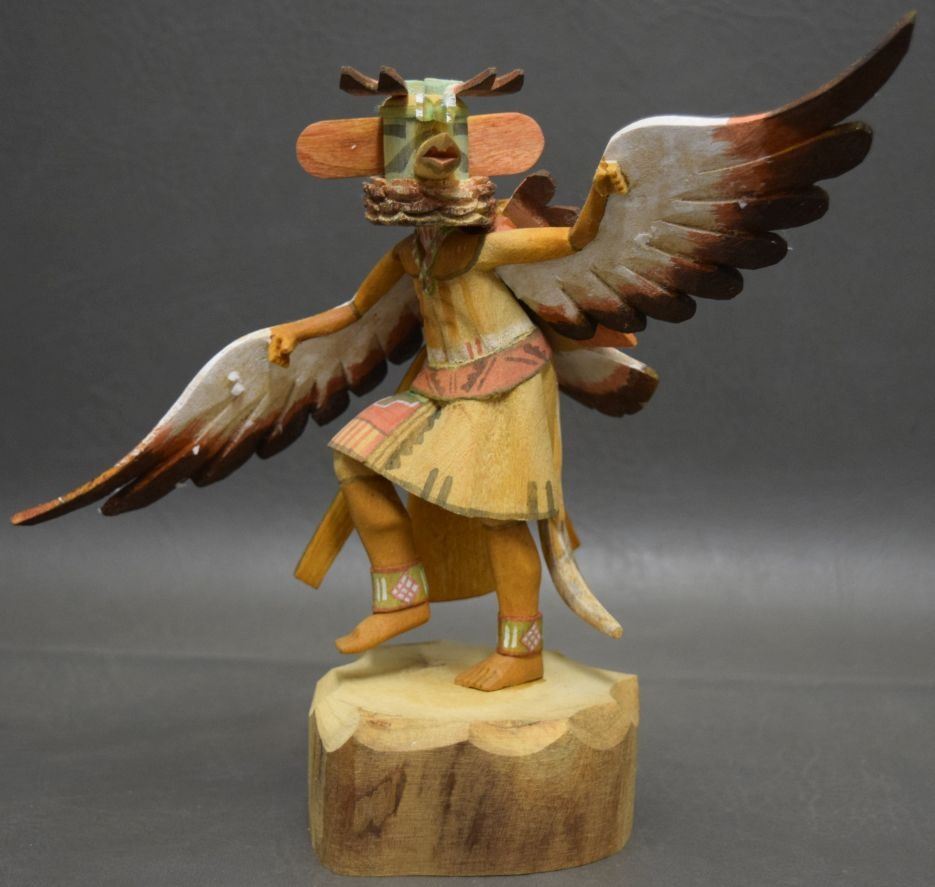 1990's hand carved and painted cotton wood depicting eagle dancer, signed Coolidge Roy Jr. 8'' x 9''