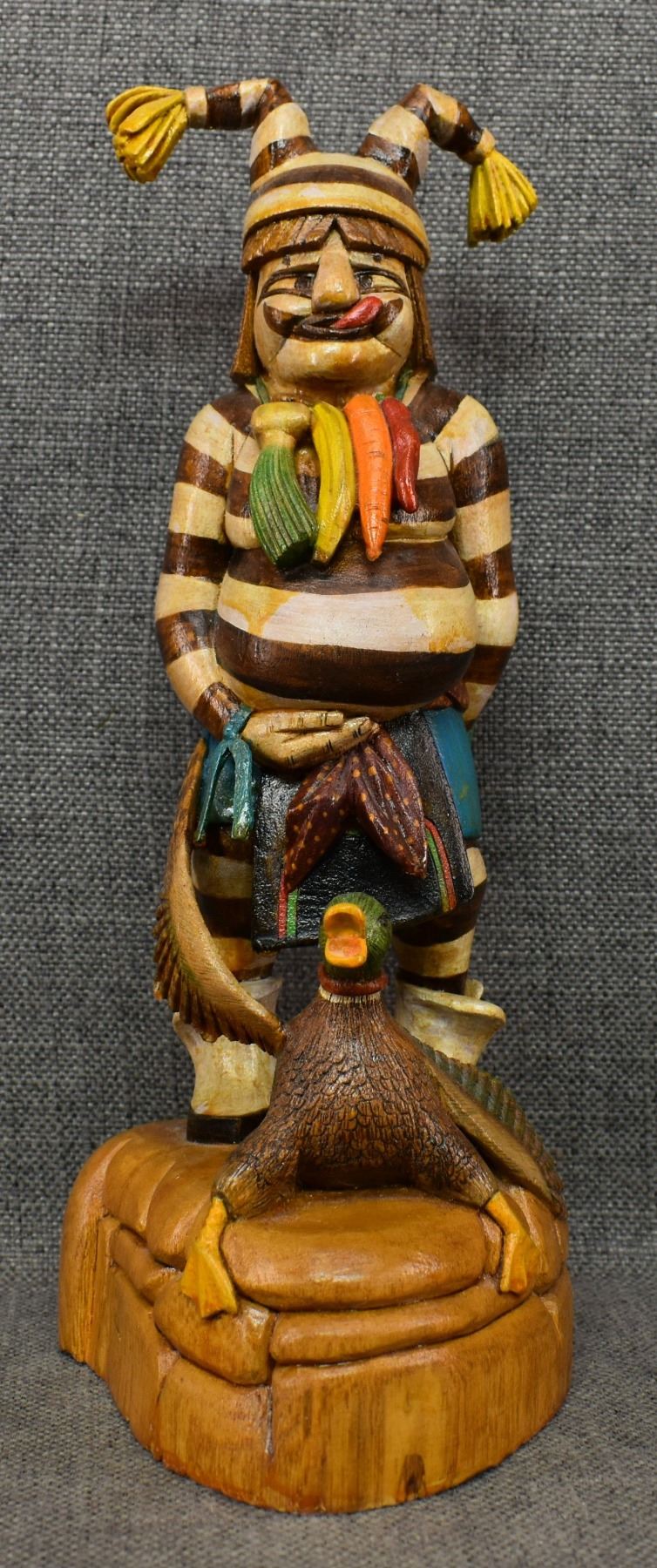 2000's Hopi, carved and painted koshari walking his duck signed Lomahquahu 12.25" x 4.75" x 6"