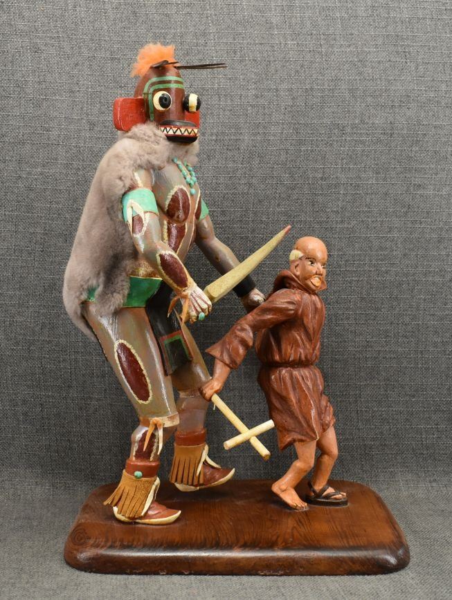 1980-90's Hopi, carved and painted cottonwood depicting Priest killer by Robert Harris 15" x 7.25" x 11"