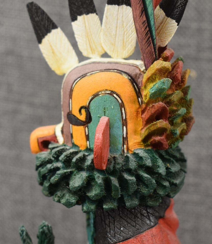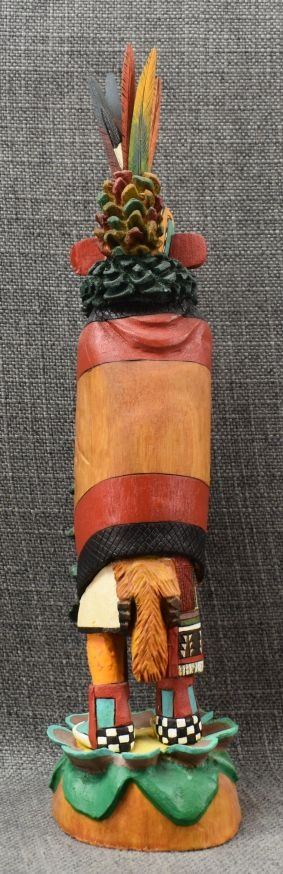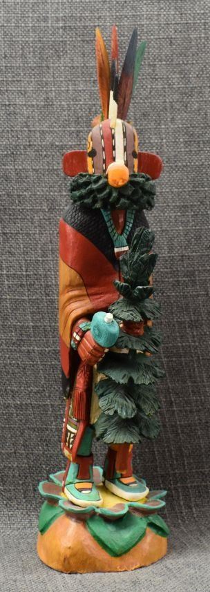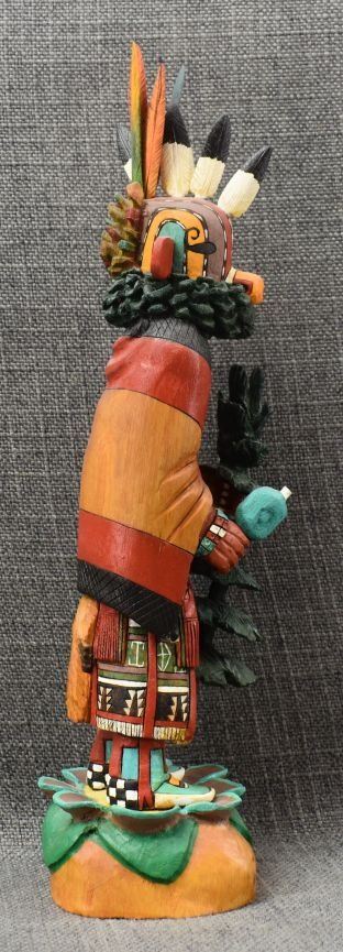 1990-2000's Hopi, carved and painted cottonwood titled " Hopi Flower Katsina" signed Silas 13" tall