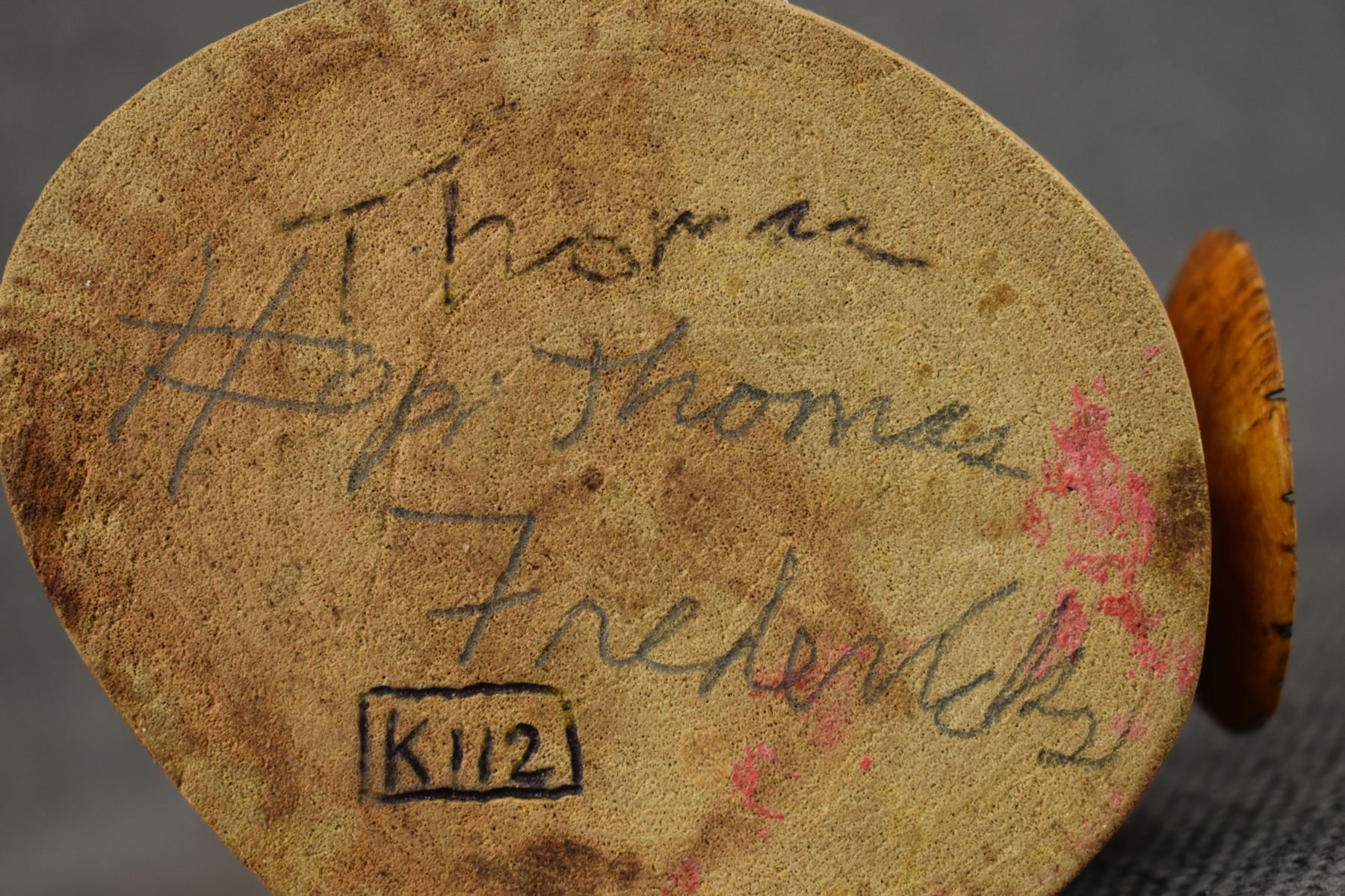 1990's Hopi, hand carved and painted cotton wood kachina signed Thomas Fredricks. 11'' tall