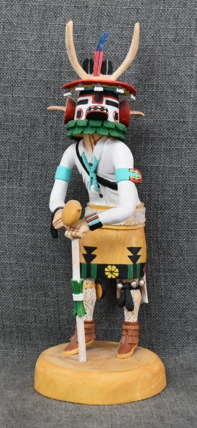 1990's Hopi, carved and painted cottonwood depicting Deer Kachina by Thomas Takala 13" tall