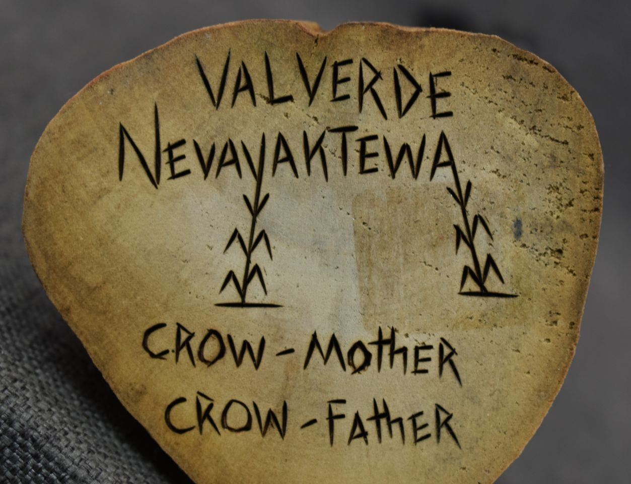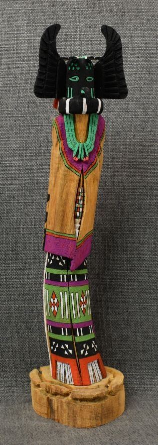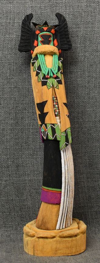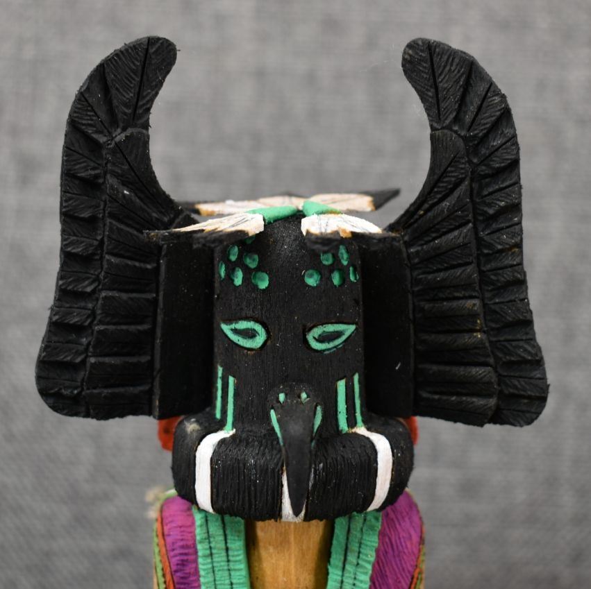 1990-2000's Hopi, hand carved and painted double sided depicting Crow Mother and Crow Father by Valverde Nevayaktewa 15" tall