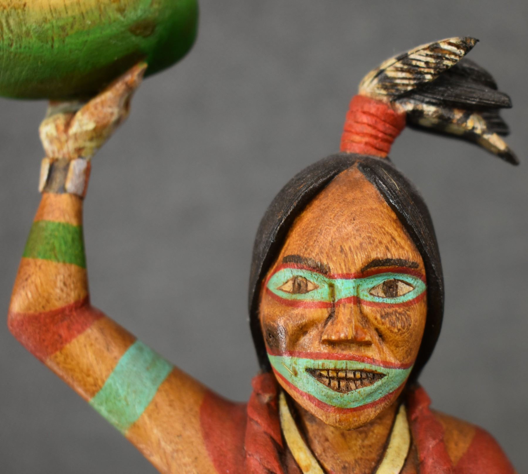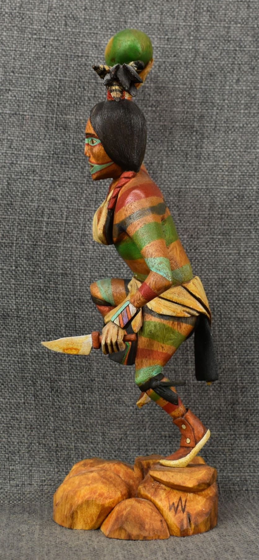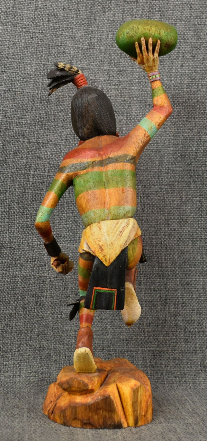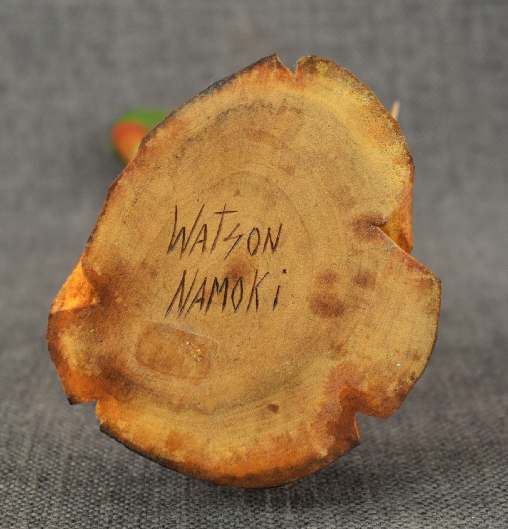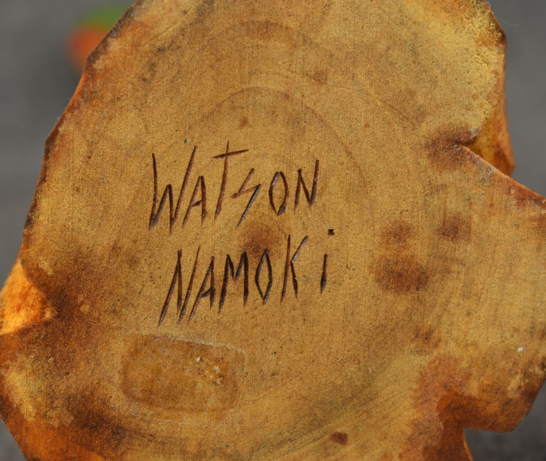 1980's Hopi Indian, hand carved and painted cotton wood kachina, signed Watson Namoki. 12'' tall