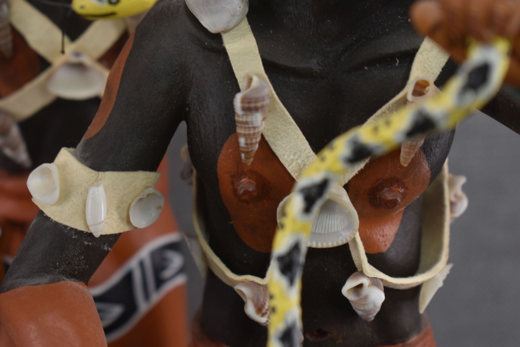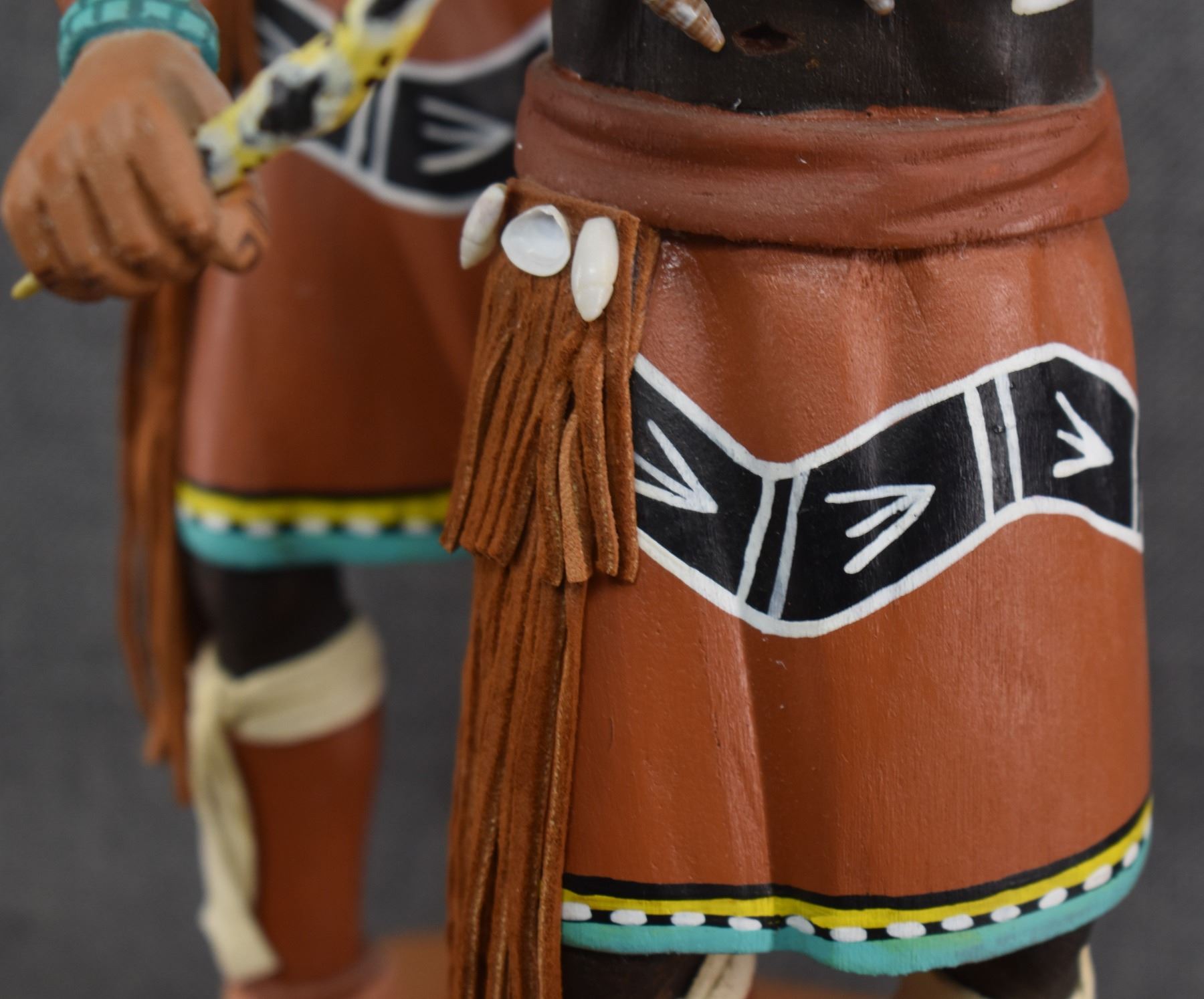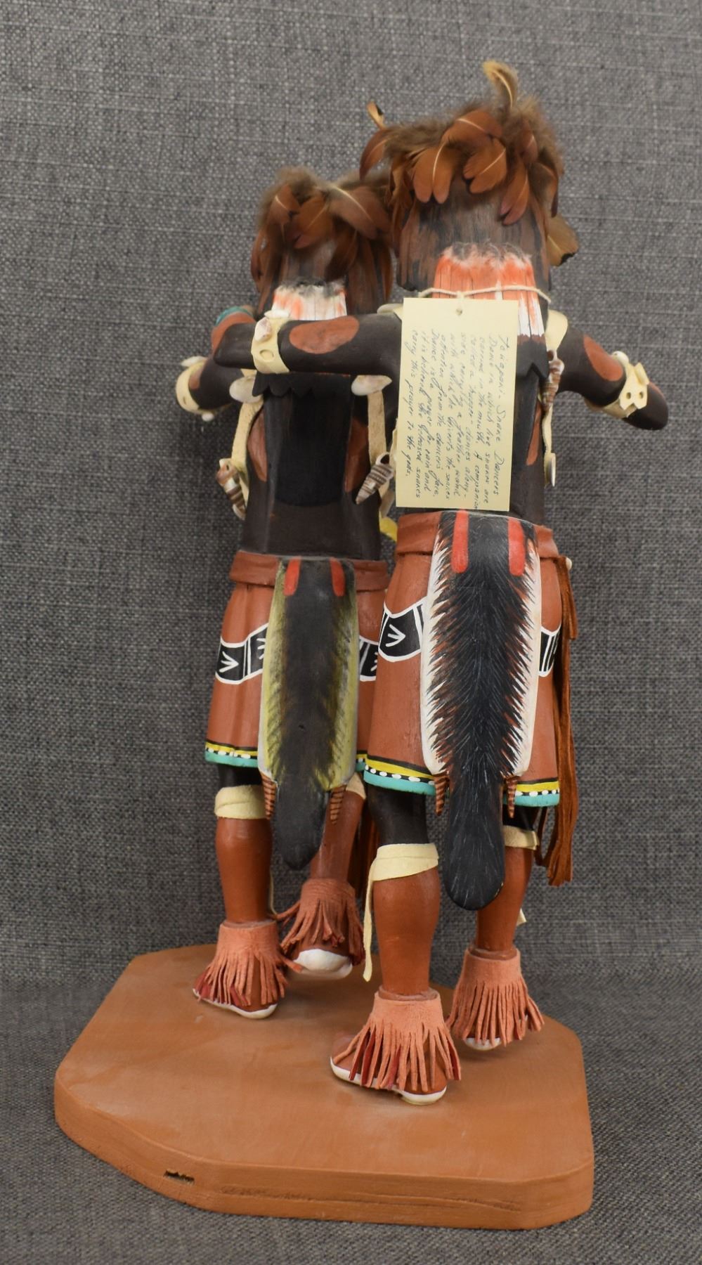 1970's Hopi. Hand carved and painted cotton wood depicting snake dancers. Signed H. Sheldon. 14'' tall