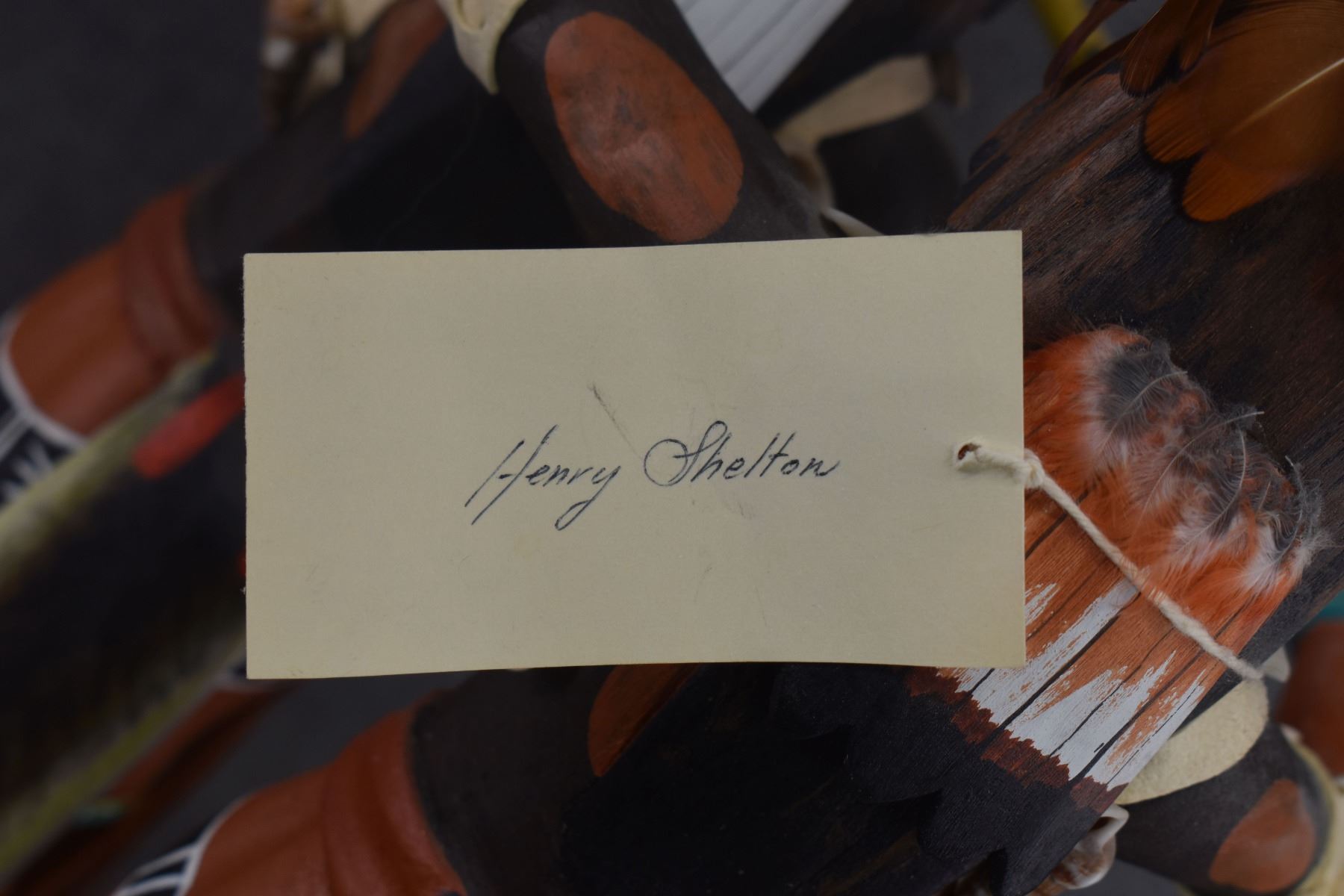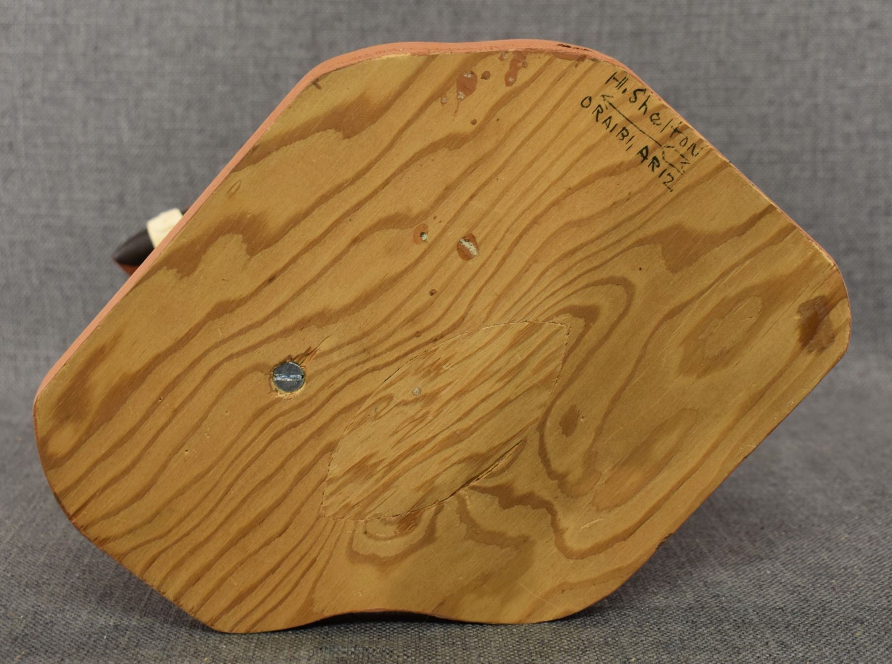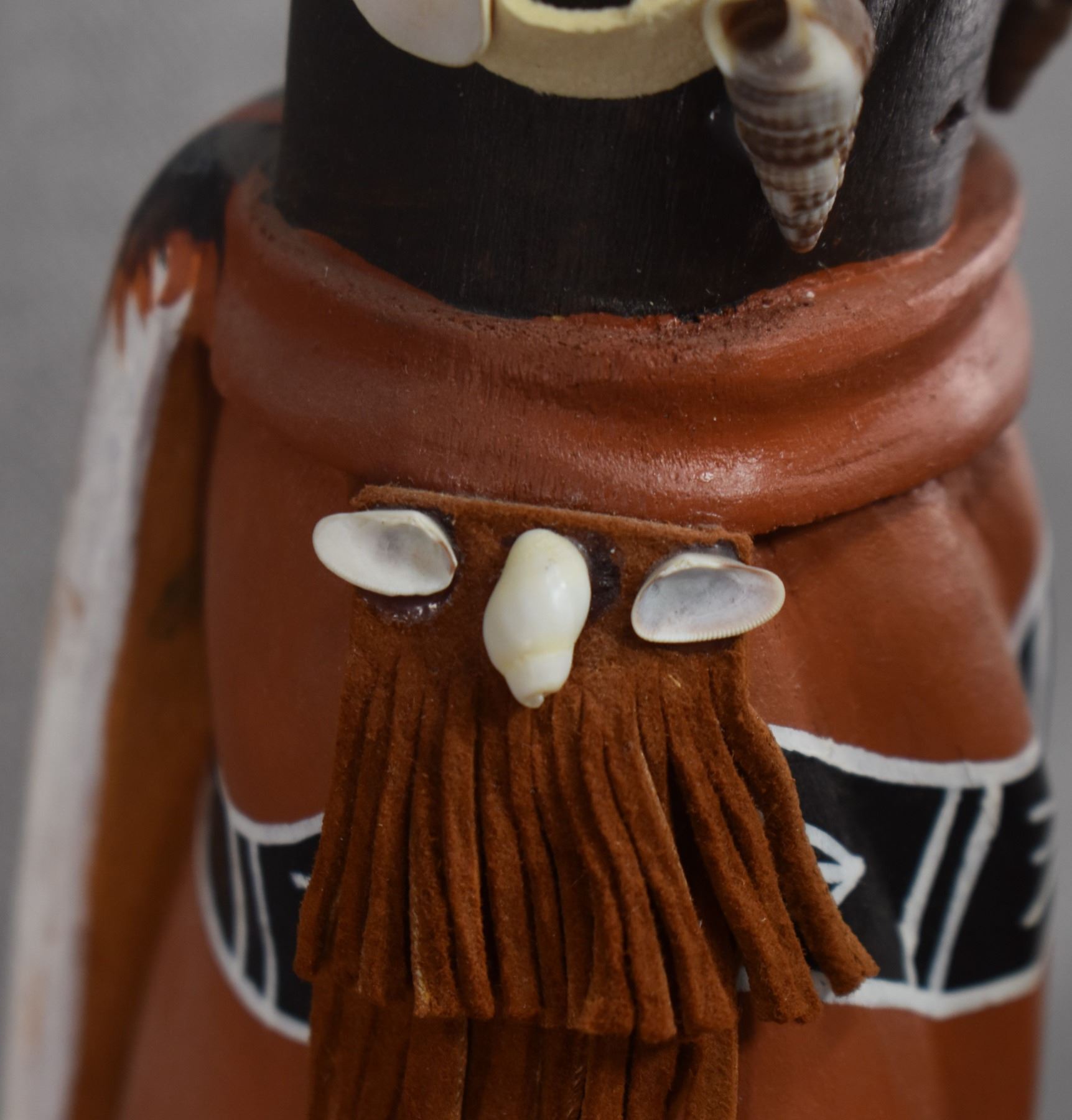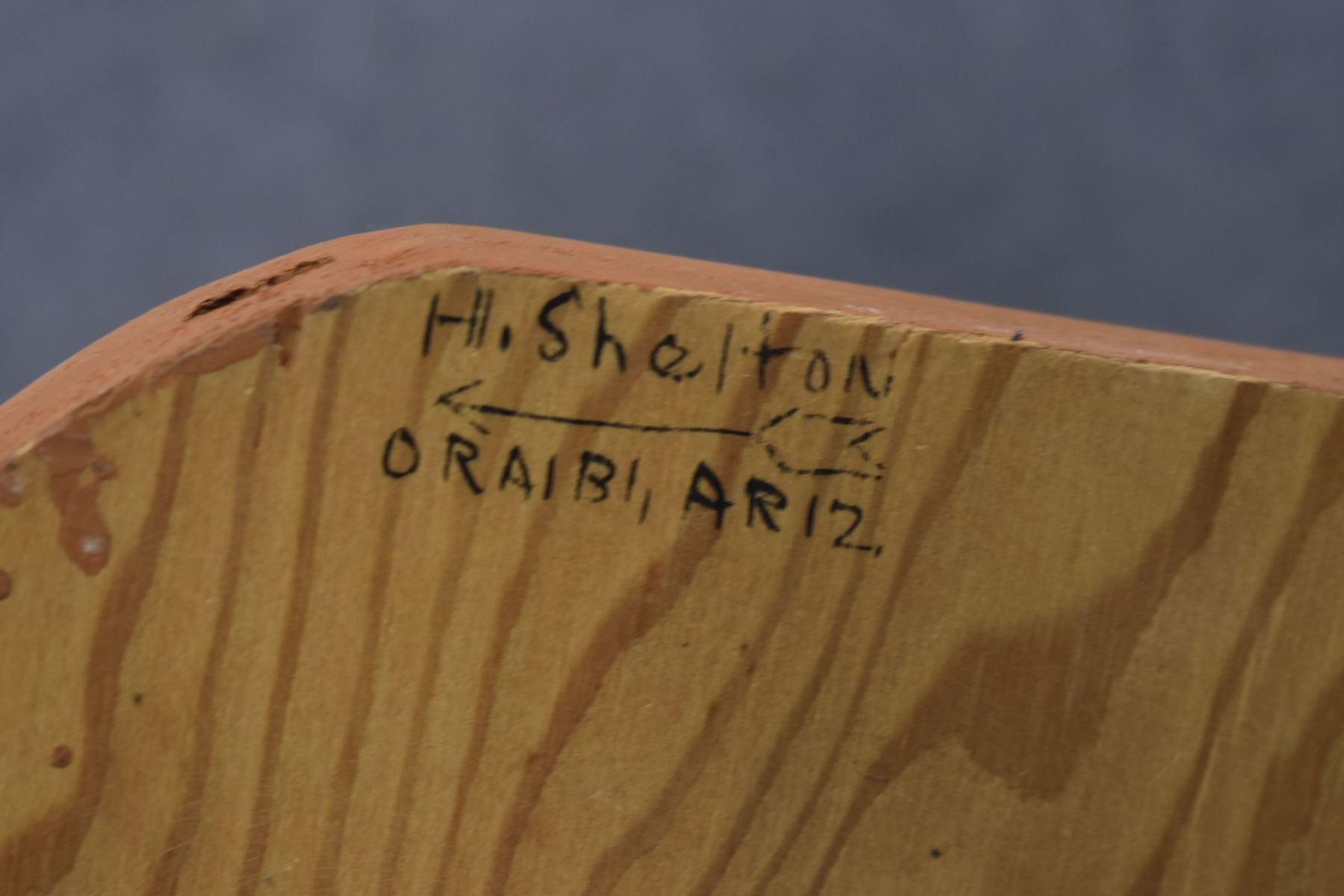 1970's Hopi. Hand carved and painted cotton wood depicting snake dancers. Signed H. Sheldon. 14'' tall