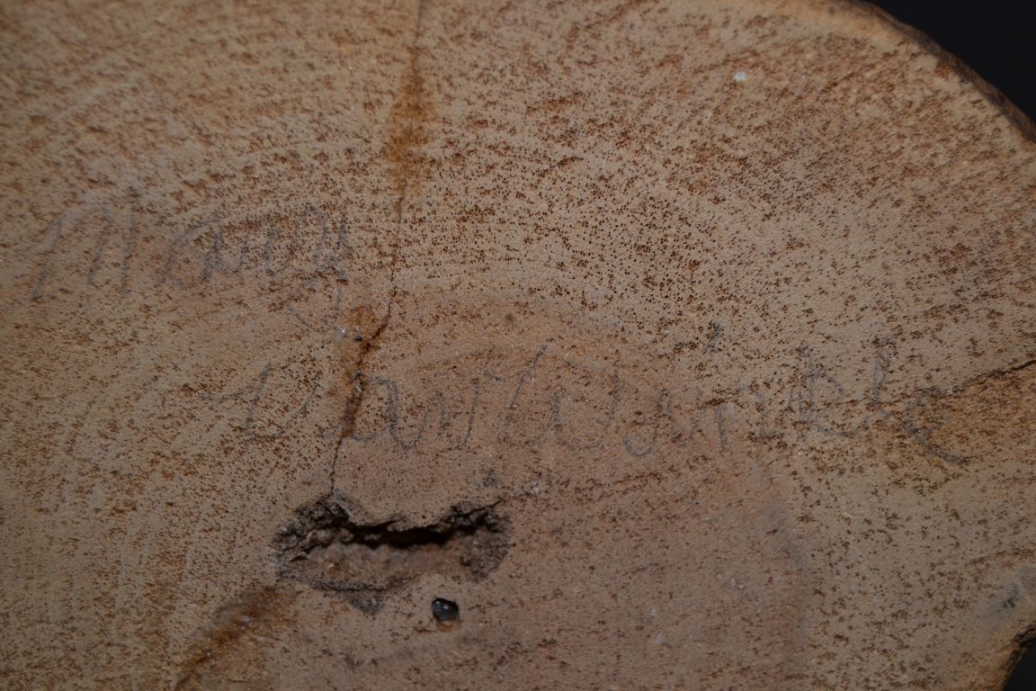1970s 80s hand carved and painted signed in pencil sun face design 11" tall