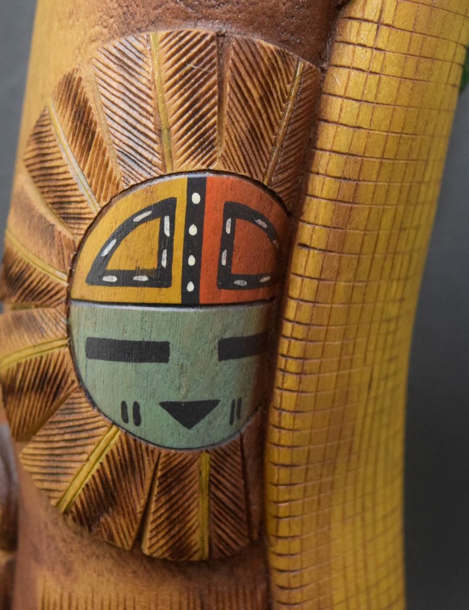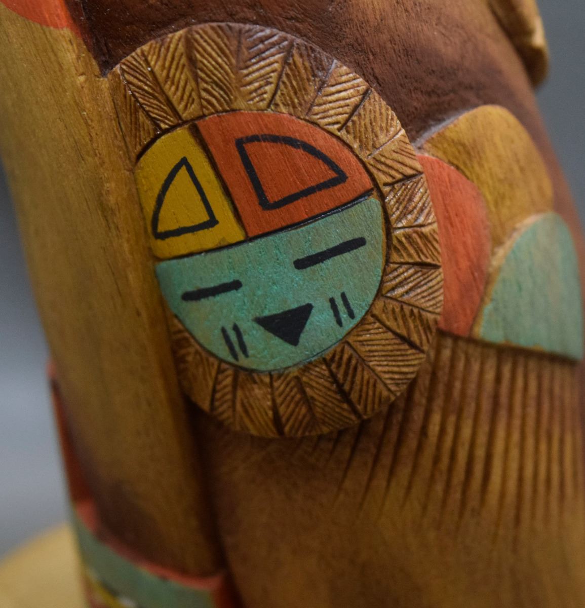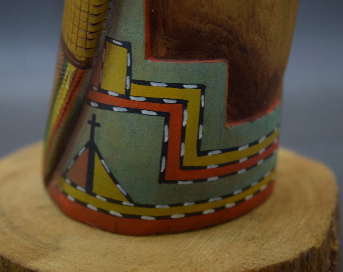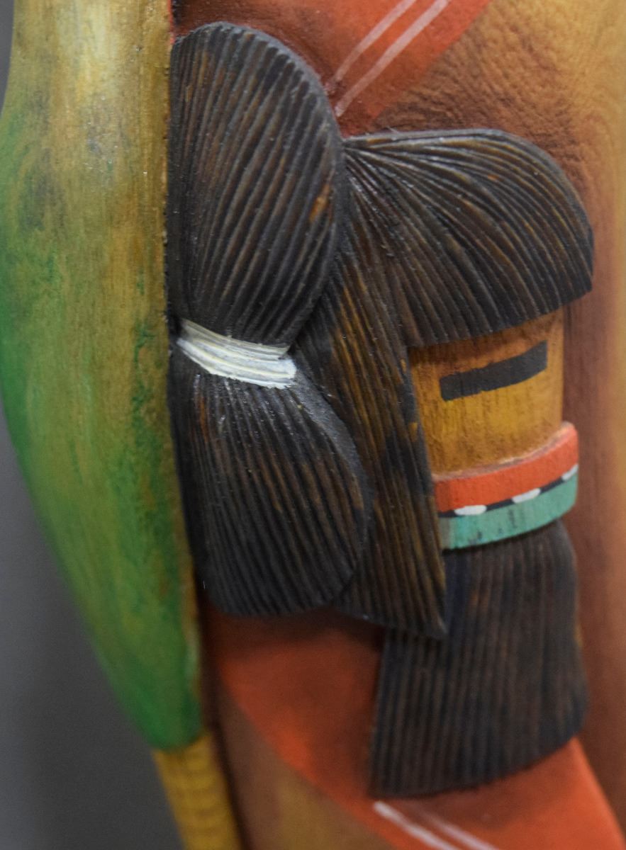 1980's hand carved and painted cotton wood signed J.F 19'' tall