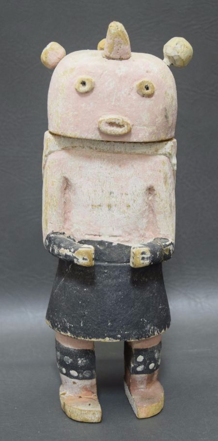 1920's hand carved and painted Mudhead carrying deer arms and foot have been broken and glued 11'' tall