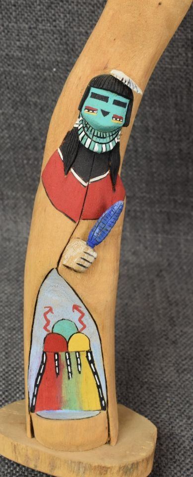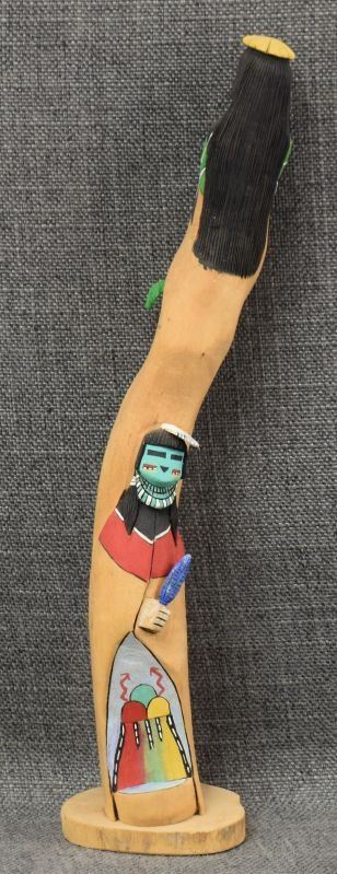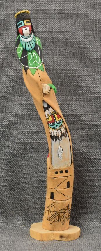 1990's Hopi, hand carved and painted cotton wood, signed but unreadable. 13'' tall