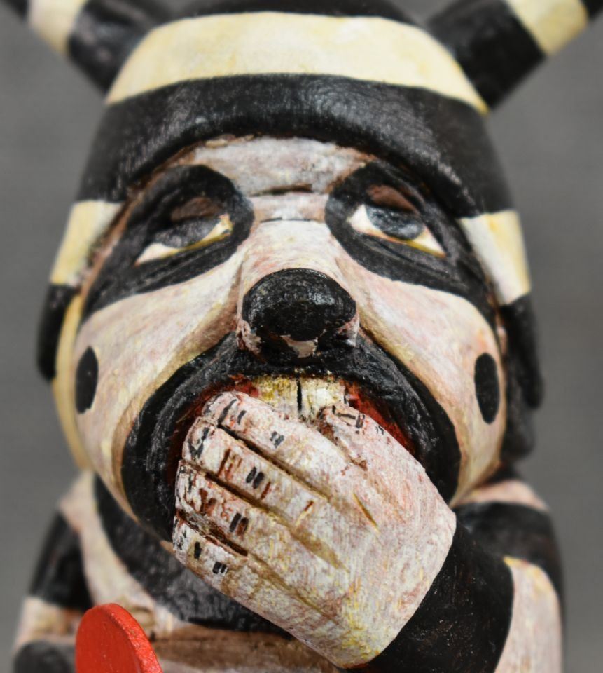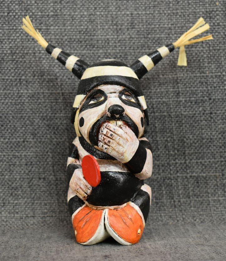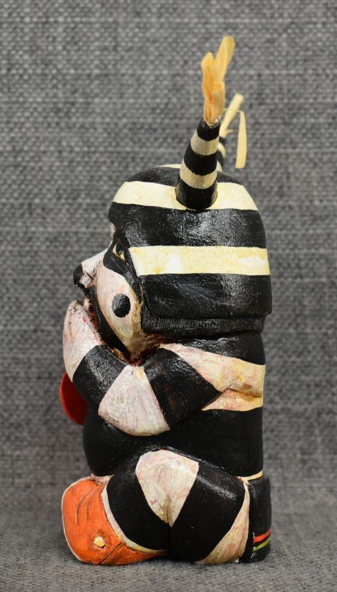 1990's Hopi. Hand carved and painted cotton wood depicting clown. 5.5'' tall