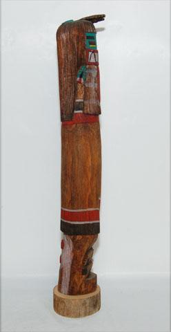 hand carved & painted cottonwood, signed W. Sakiestewa, 1 feather missing, 14” tall, 1970’S