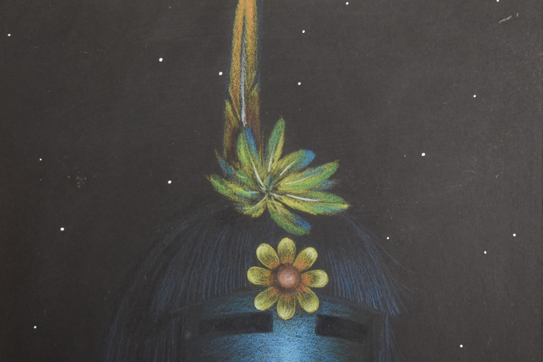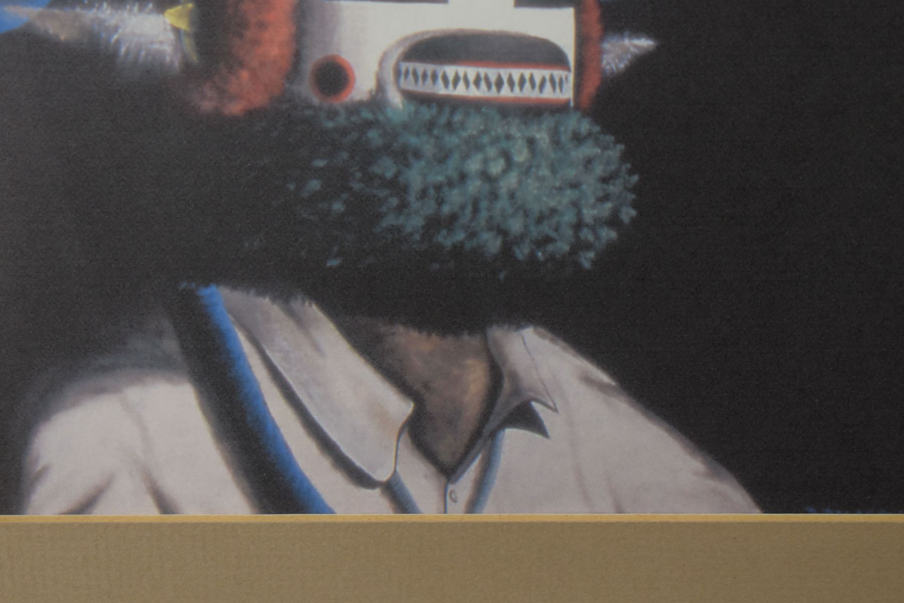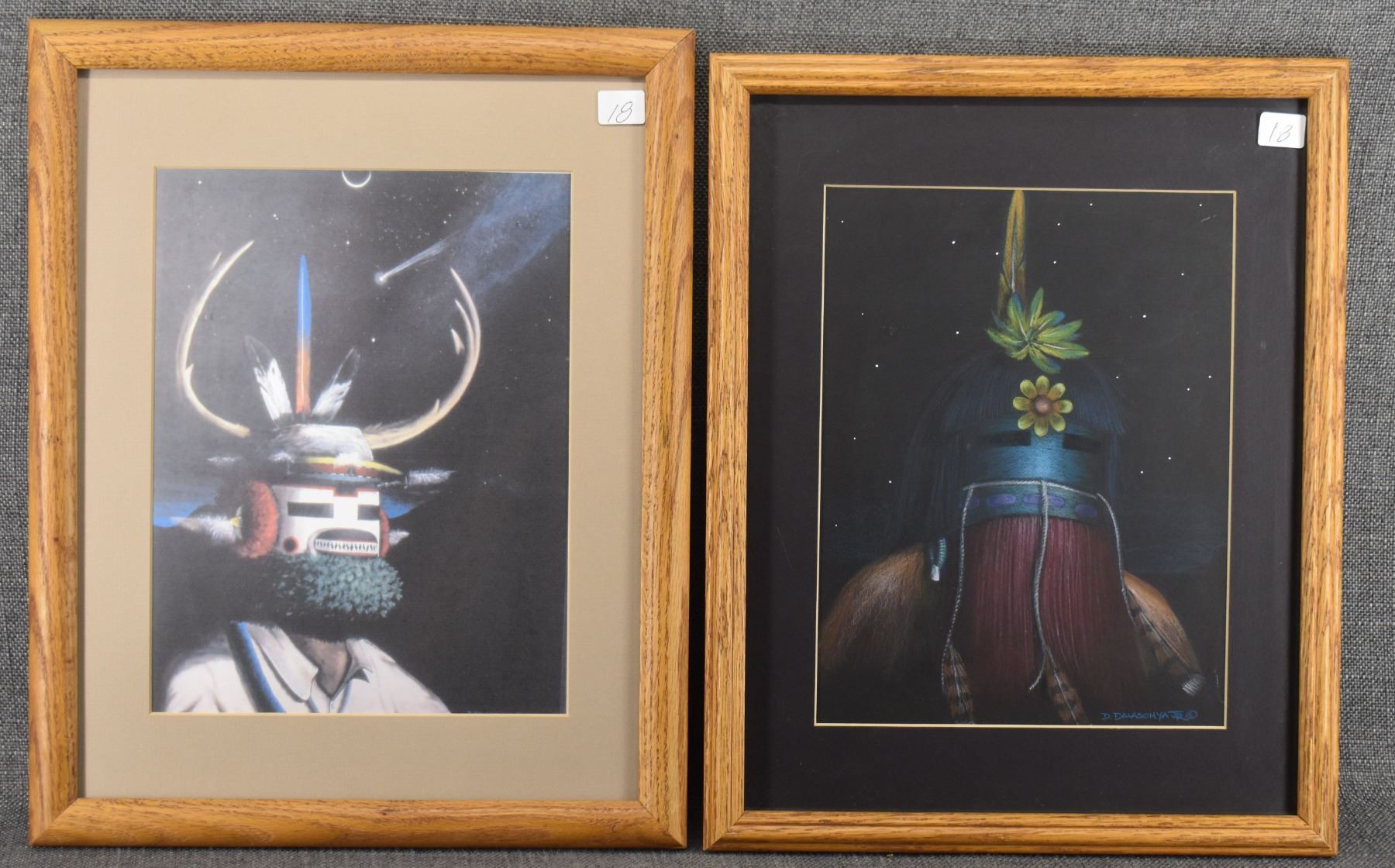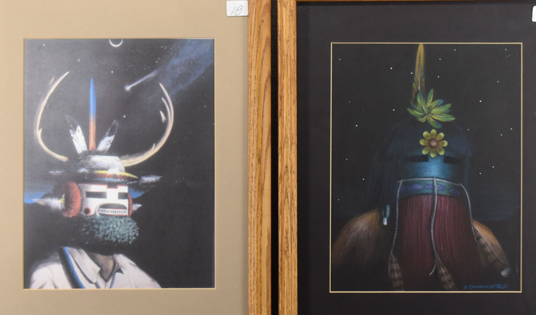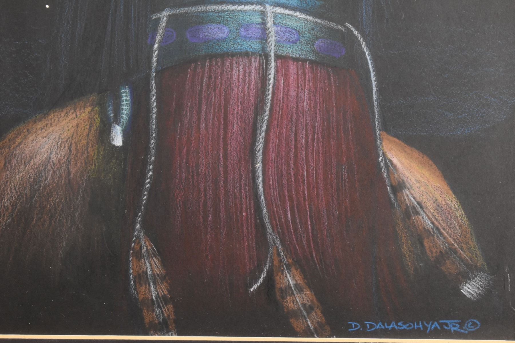2000's Hopi . hand painted depicting kachina signed D Dalasohya jr 10" x 7.75" matted and framed to 15" x 12" includes print of same size