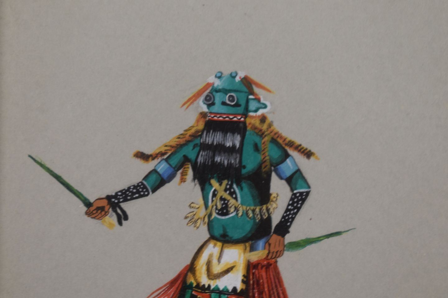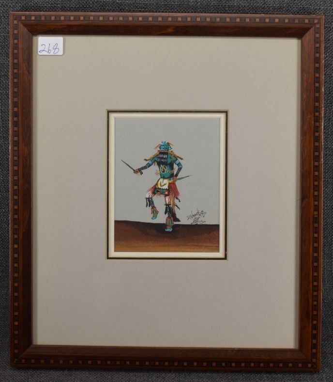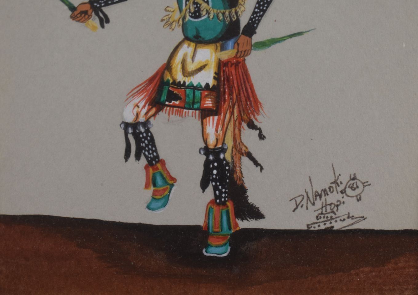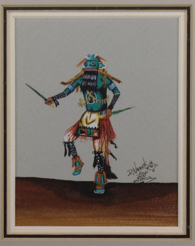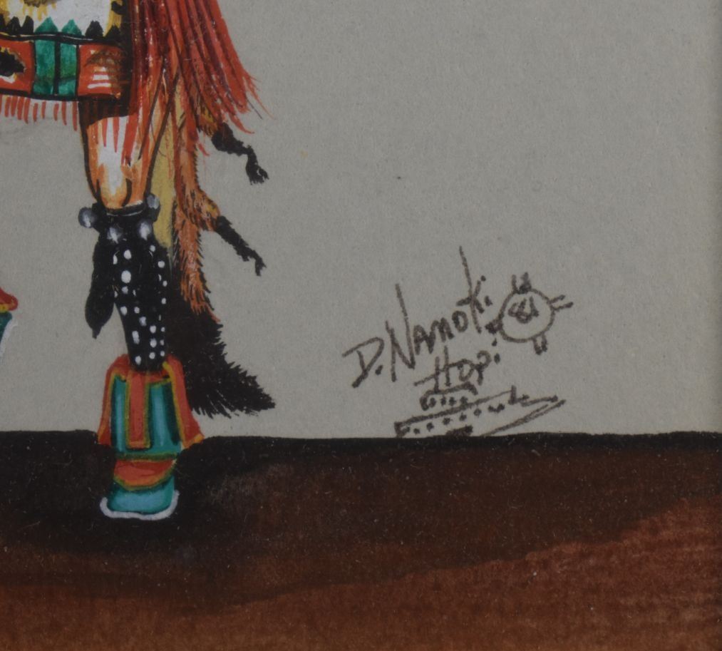 1981 Hopi, original hand painted kachina figure signed D Namoki 4.75" x 3.75" matted and framed to 12.75" x 11"