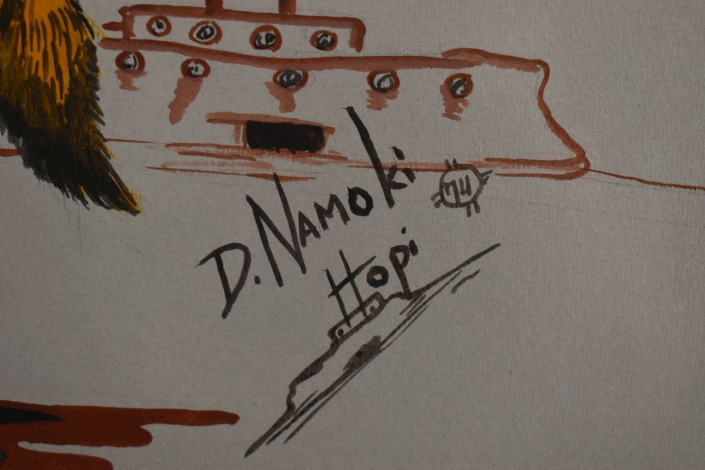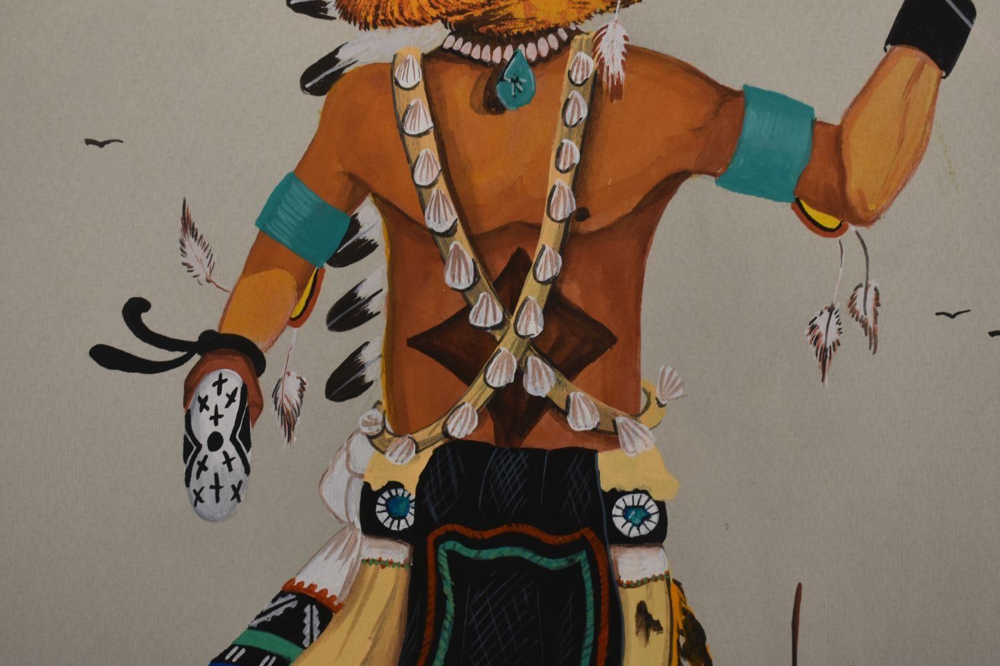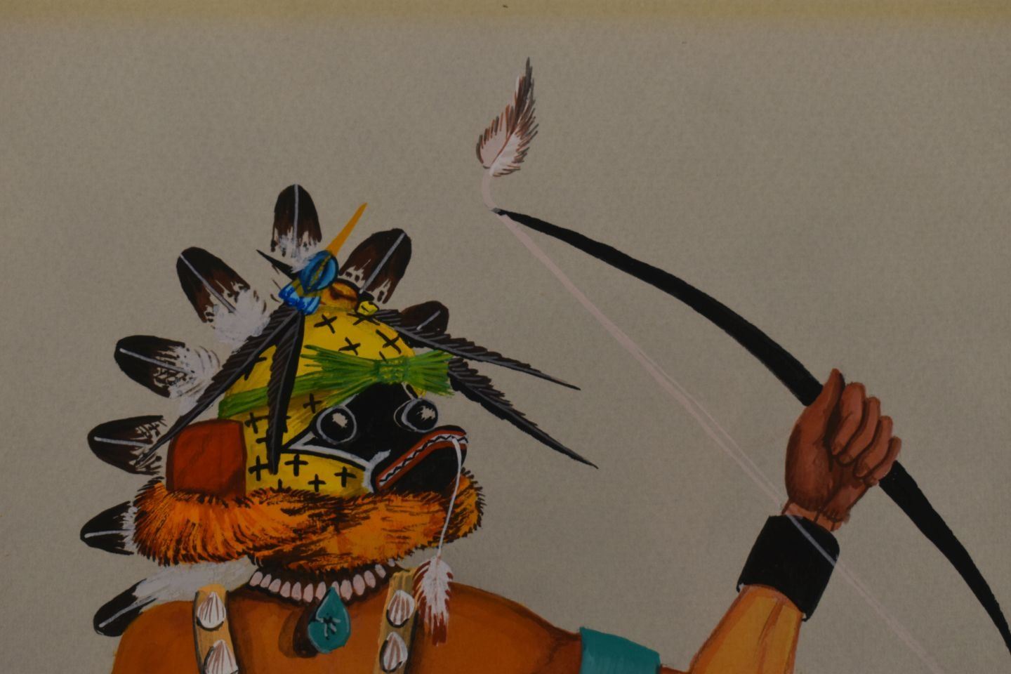 1974 Hopi, original hand painted kachina dancer signed D Namoki 17" x 13" matted and framed to 23" x 19"