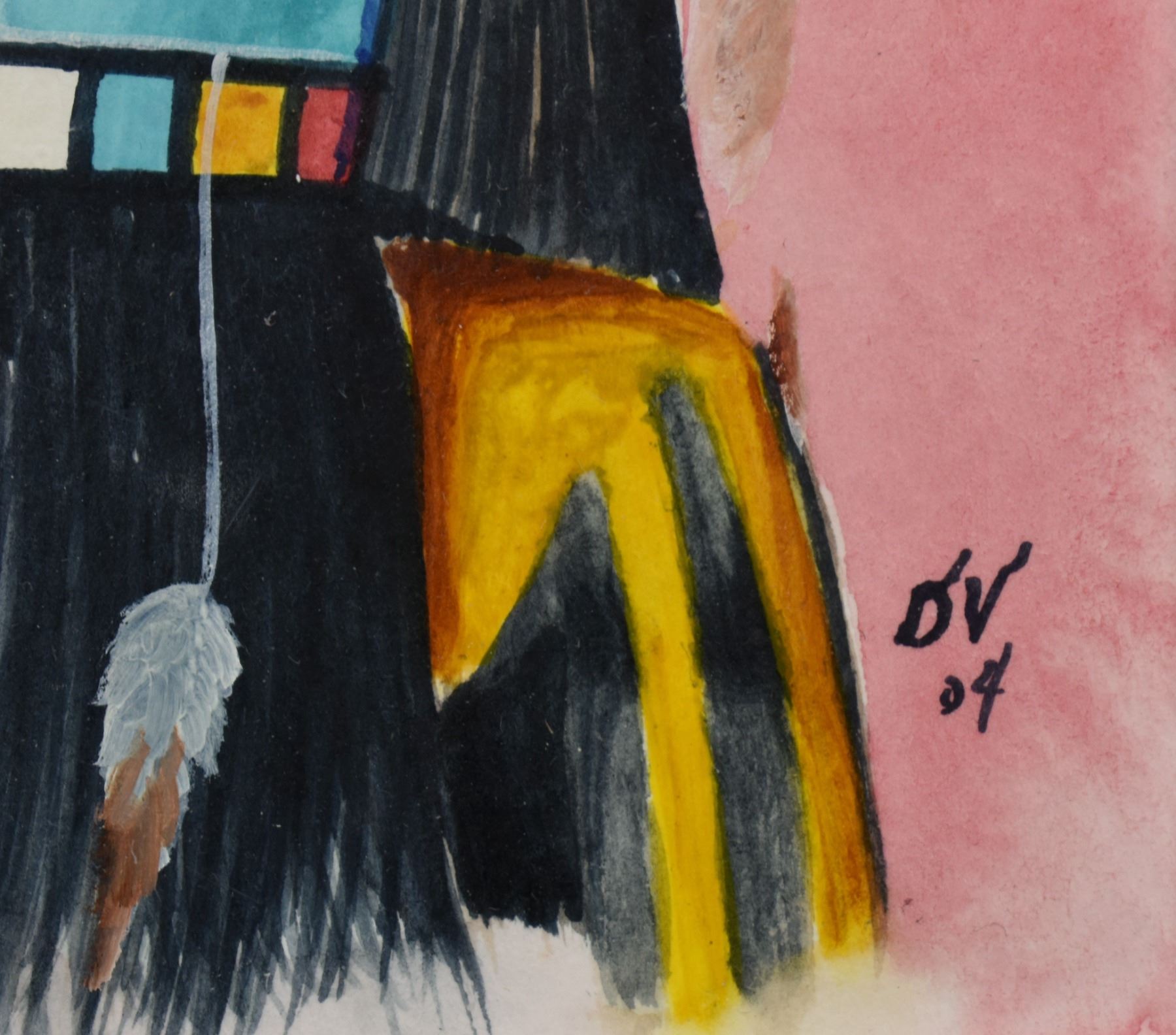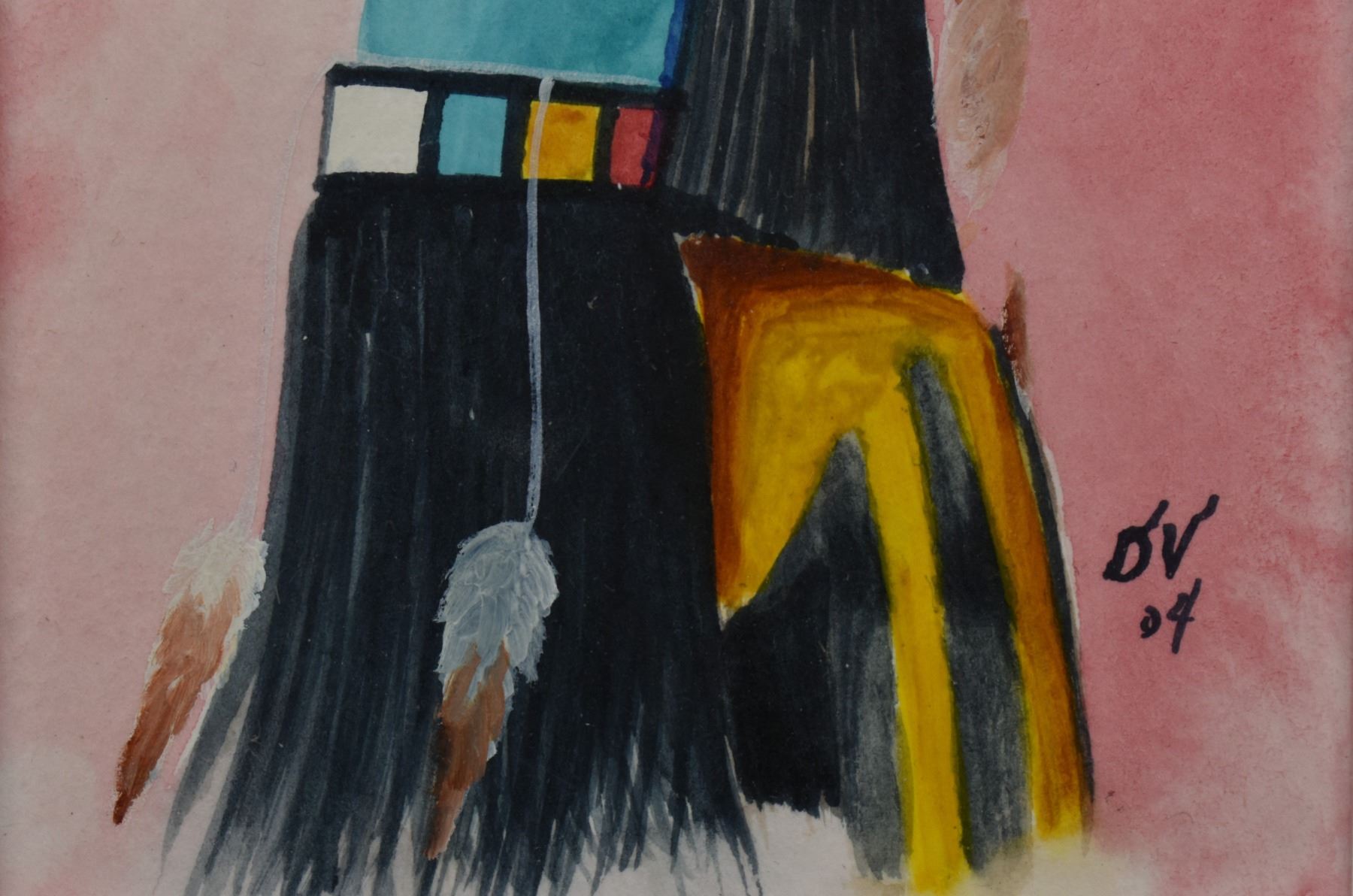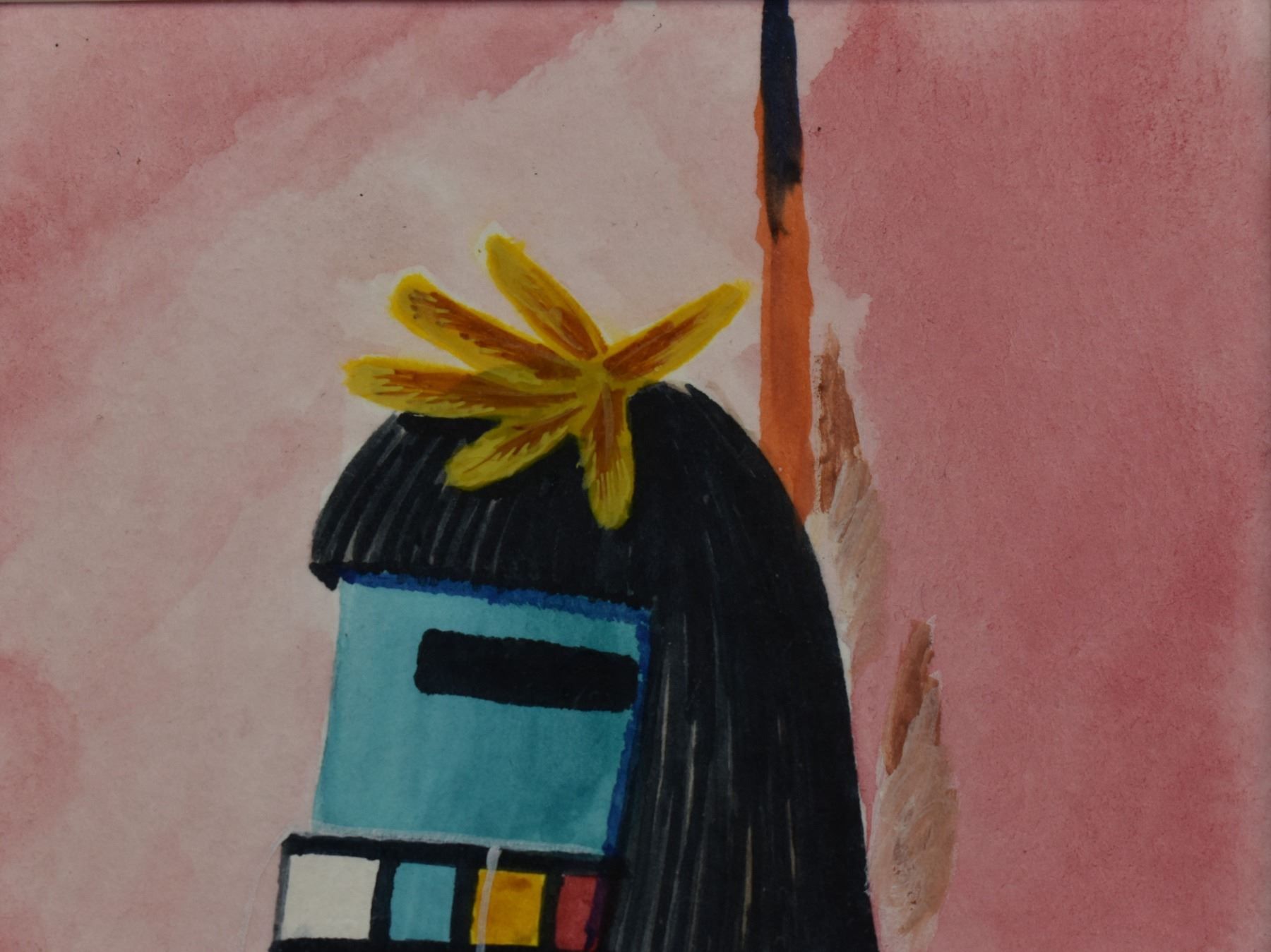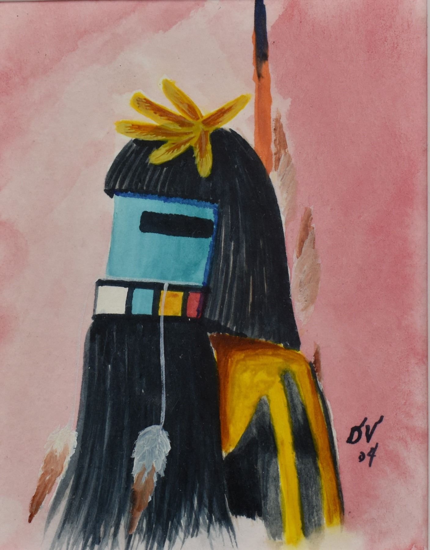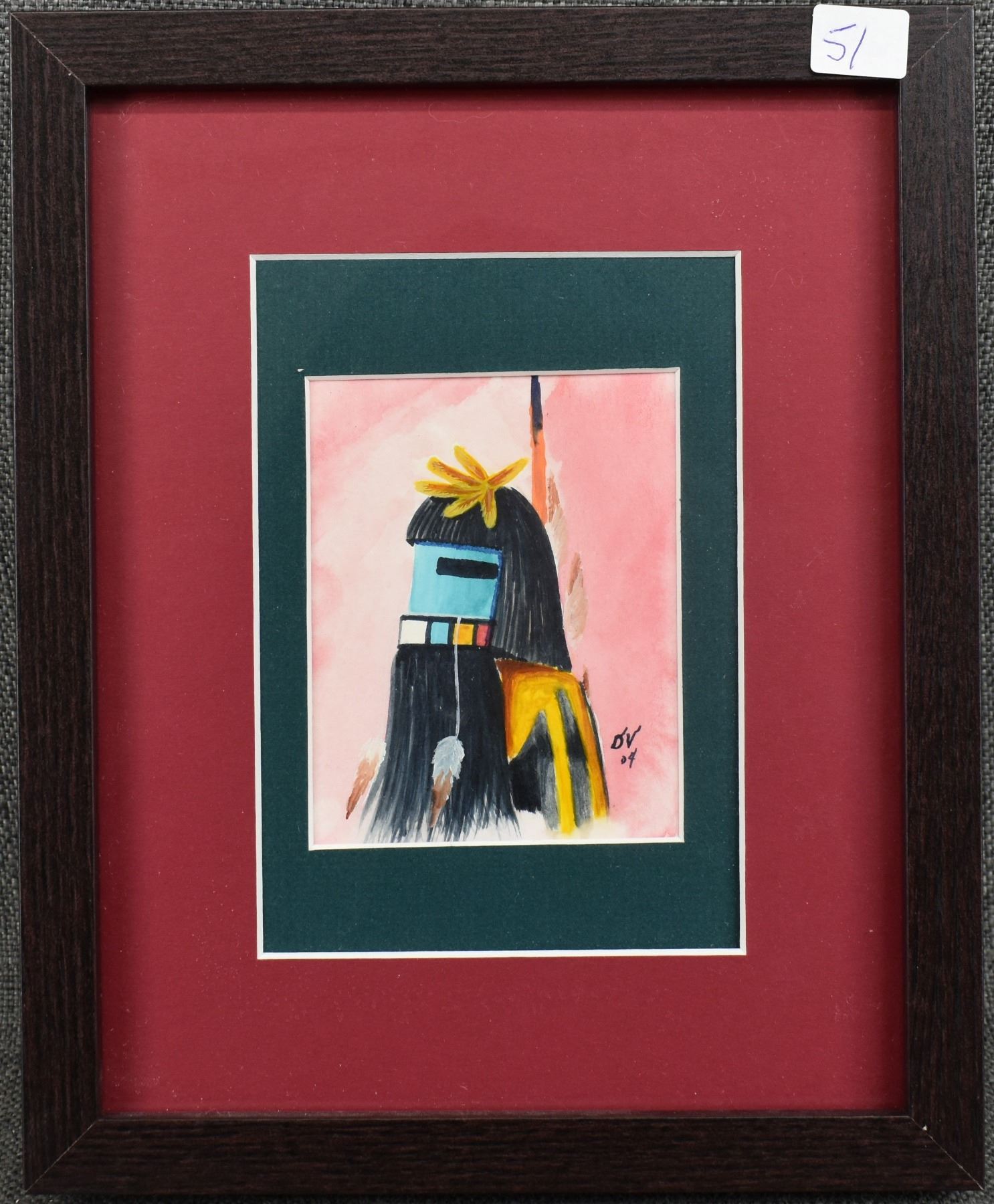 2004 Hopi. Original on paper depicting long hair kachina. Signed. 4'' x 3'' frame size 11'' x 9''