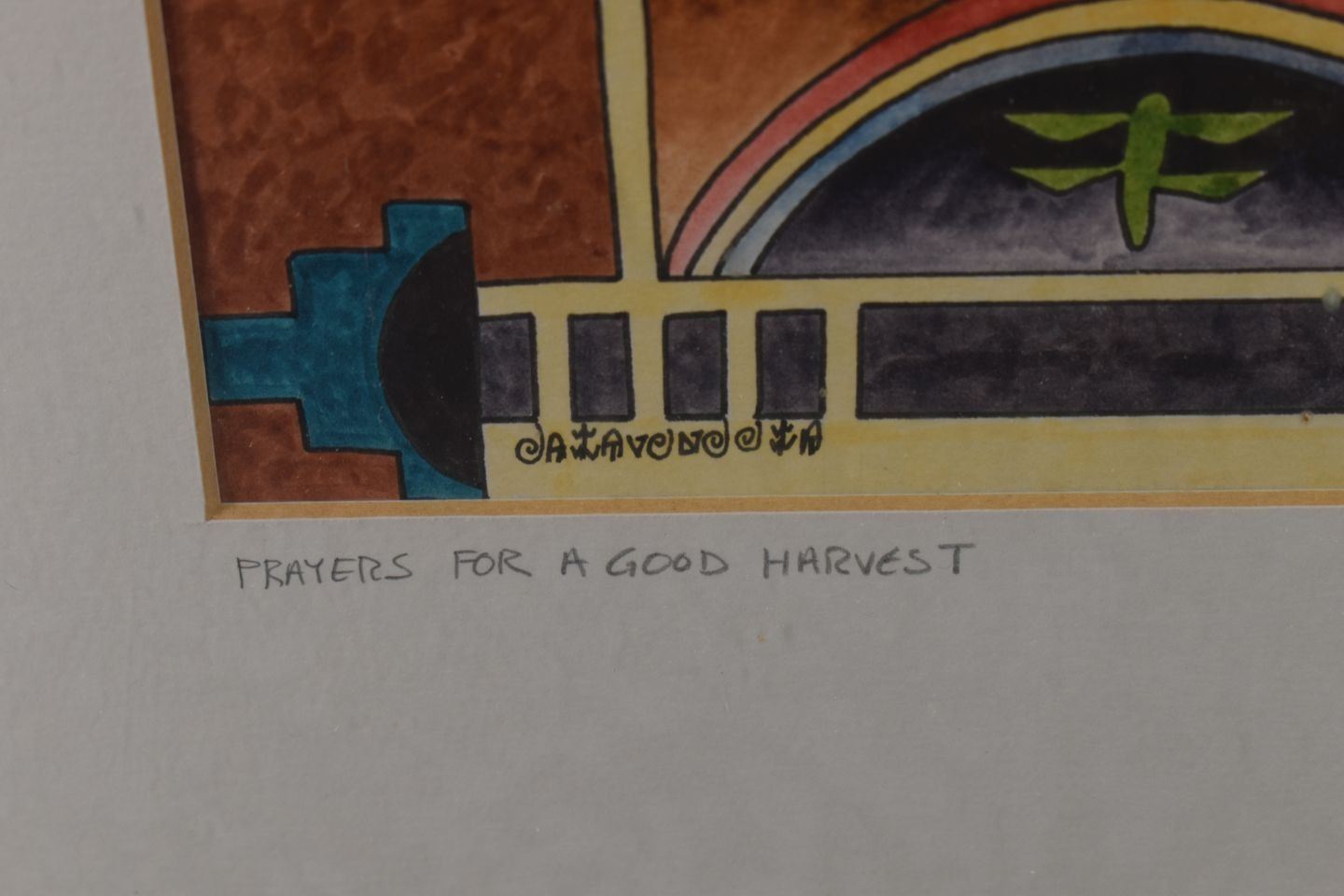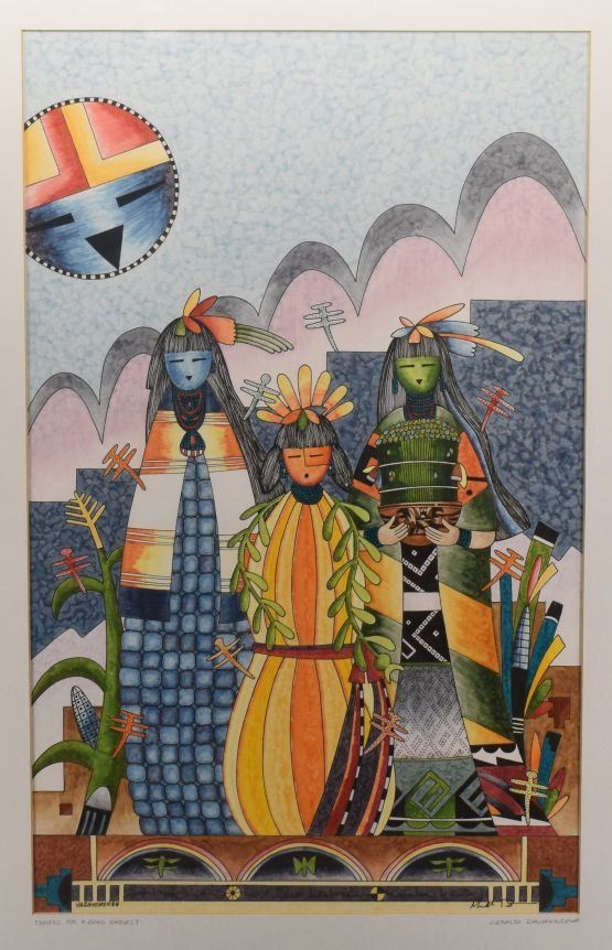 1990's Hopi. Original on paper titled "Prayers for a Good Harvest" 20'' x 13'' frame size 27'' x 20''