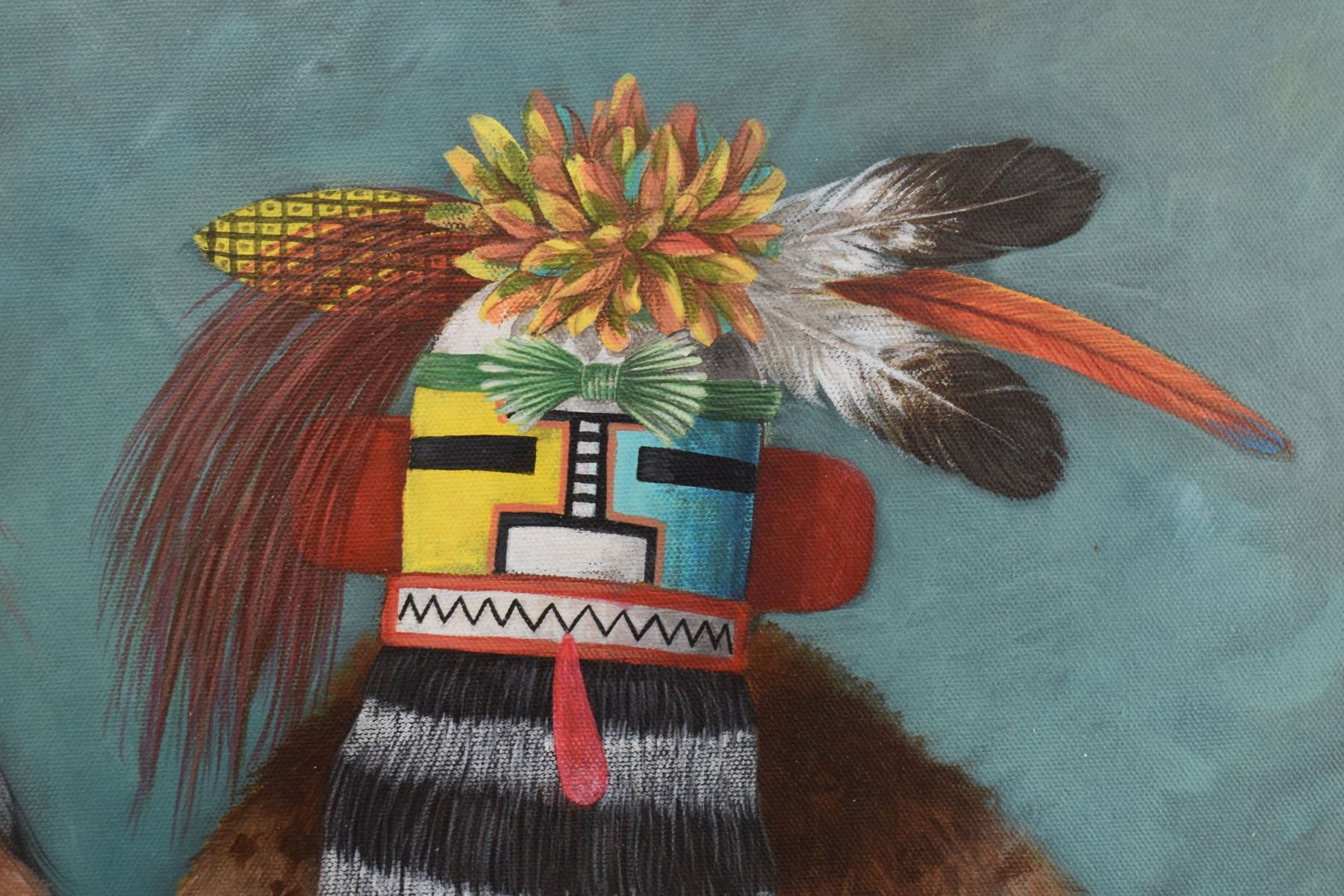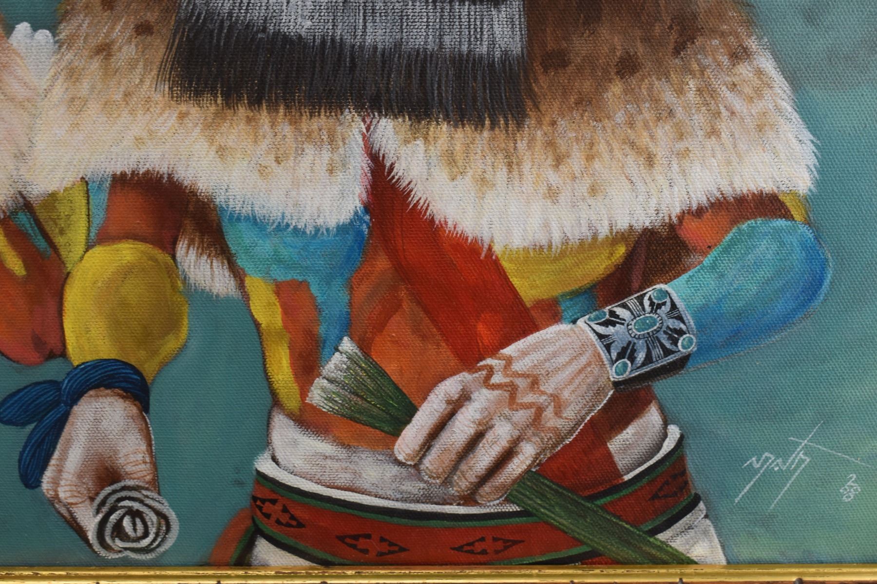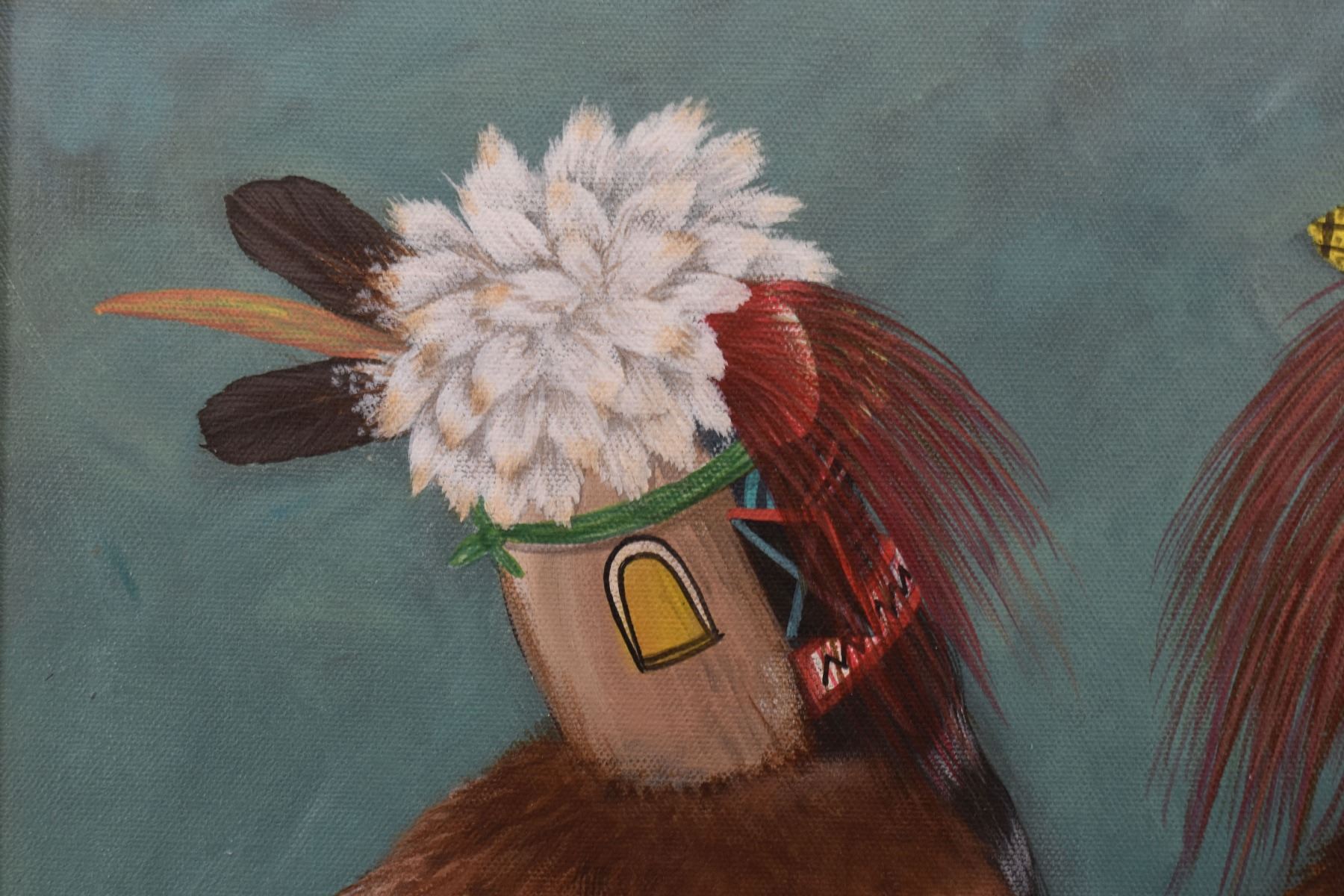 2000 Hopi original painting on canvas depicting kachinas, signed N.David. 21'' x 17'' frame size 22'' x 18''