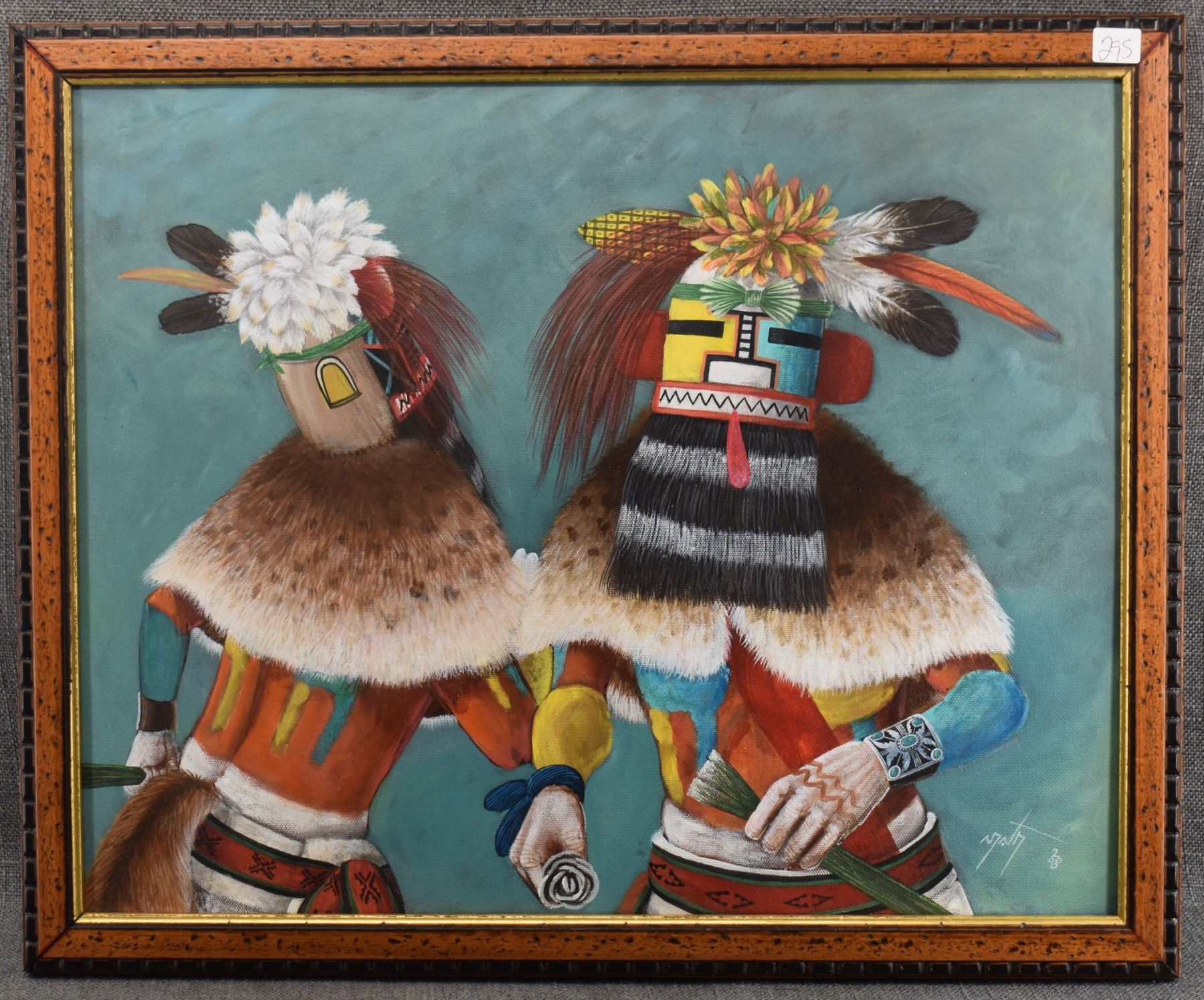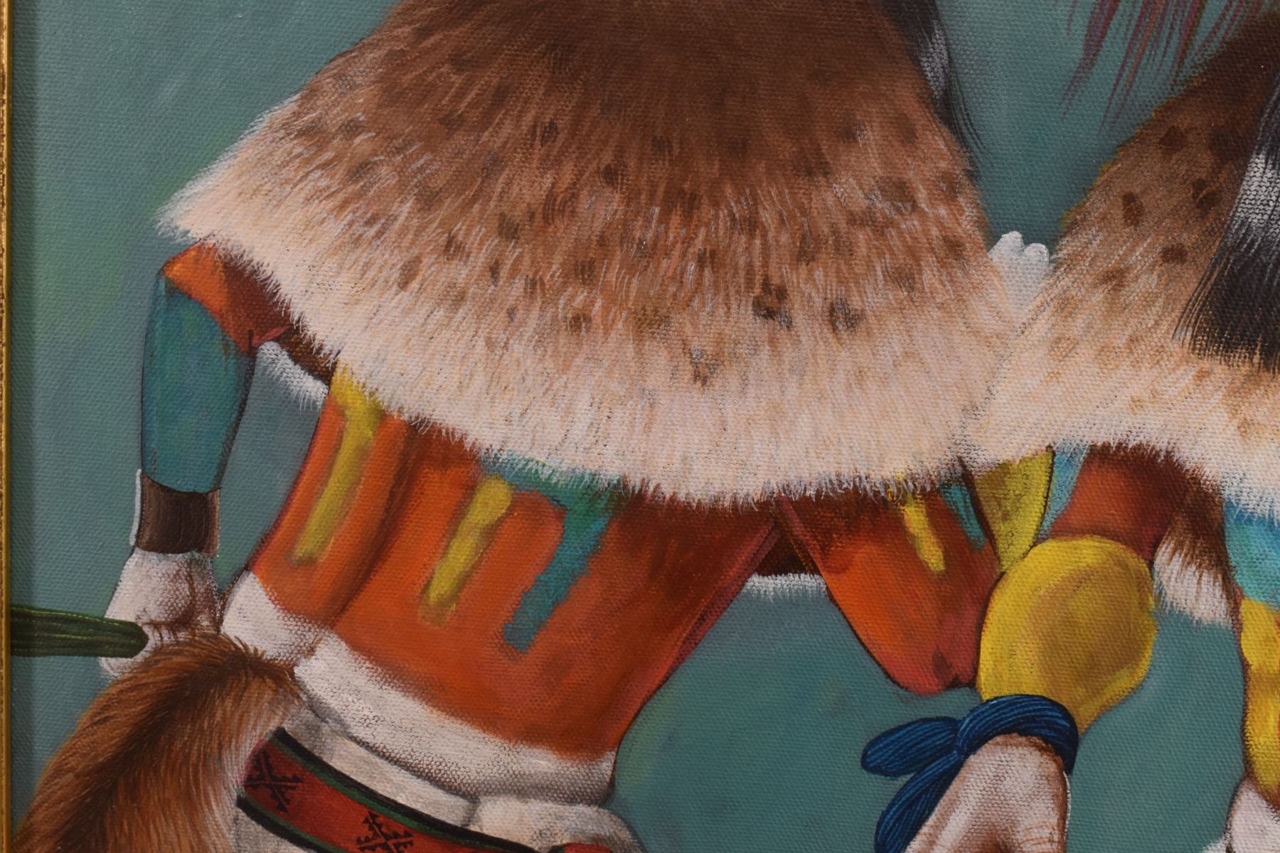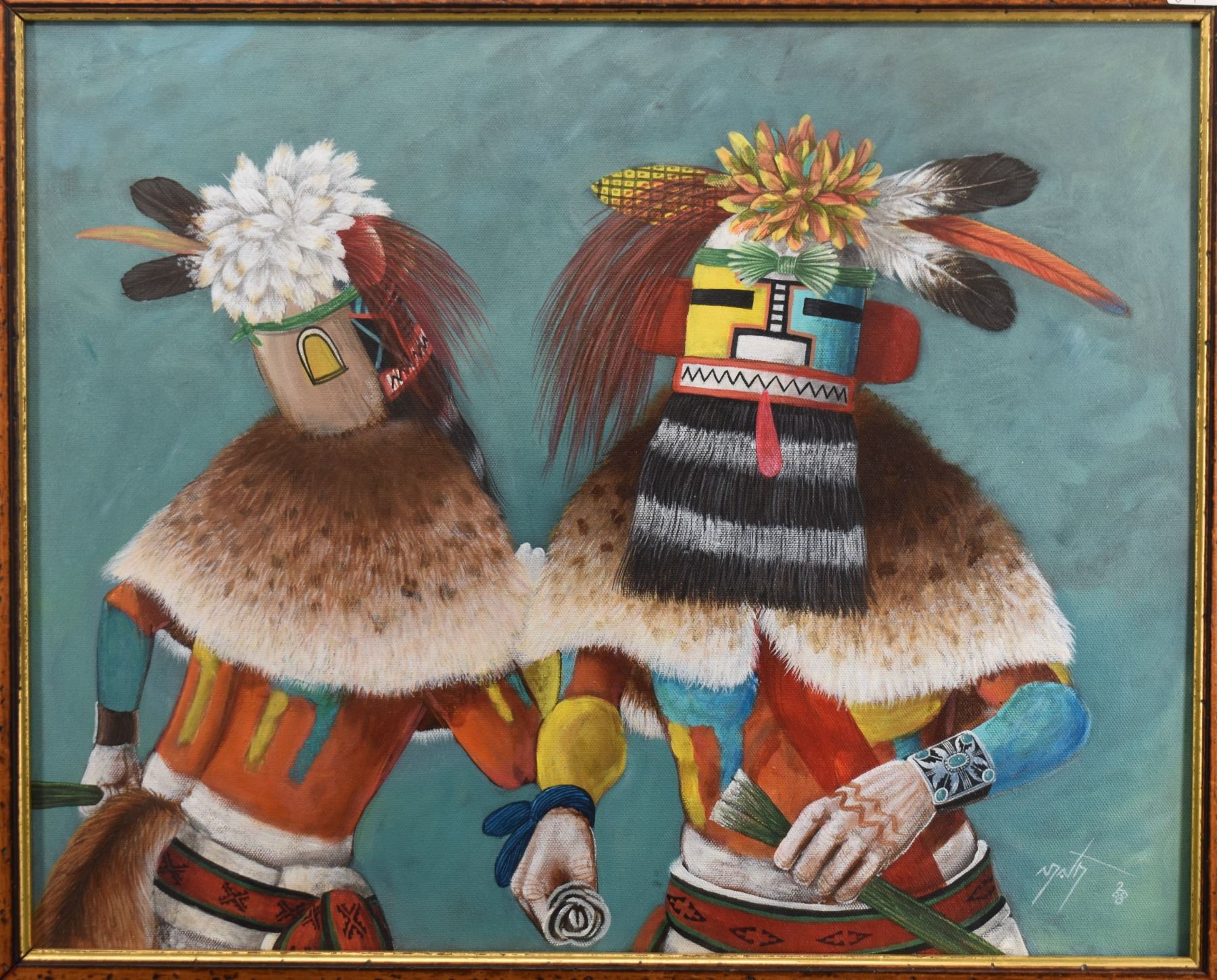 2000 Hopi original painting on canvas depicting kachinas, signed N.David. 21'' x 17'' frame size 22'' x 18''