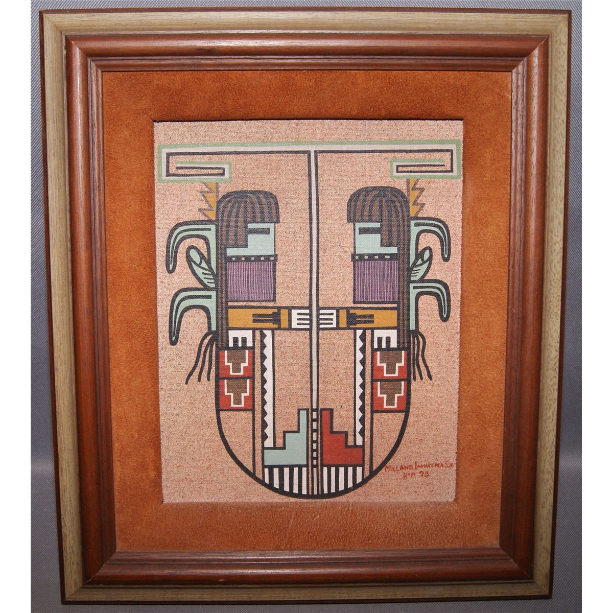 1973 acrylic on board signed Millard Lomakewa Sr, 9.25" x 7.25"