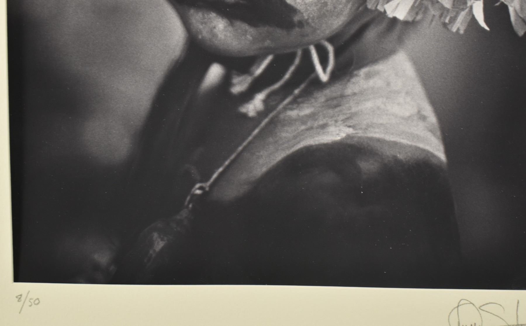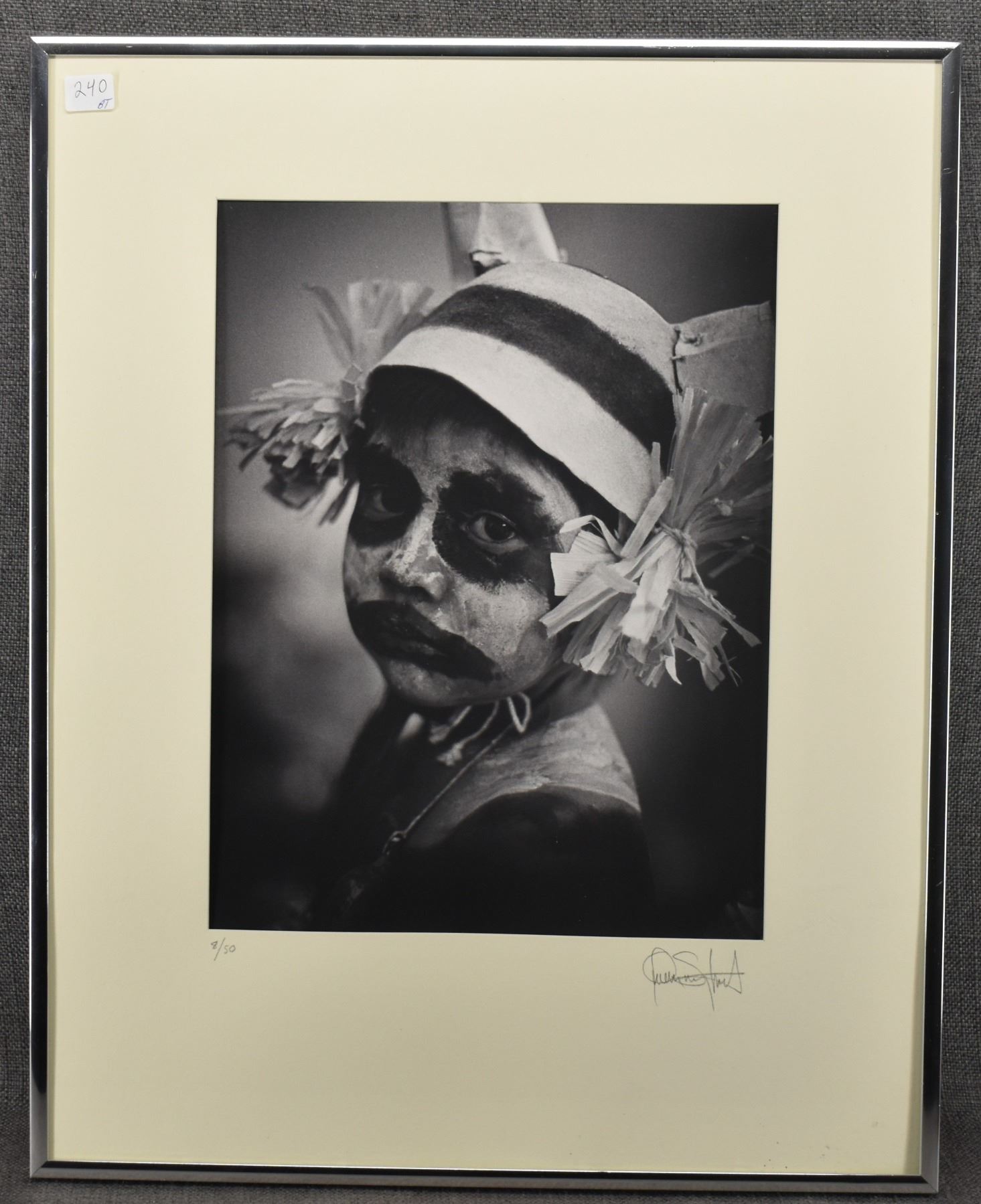 1980 Hopi, photograph of Ko-ya-la, or “Clown Boy” by Owen Seumptewa, number 8/50 hand signed, 12.75" x 9.75" framed to 20.25" x 16.25". Photo was in Arizona Highway Sept. 1980, https://www.arizonahighways.com/article/beneath-veil