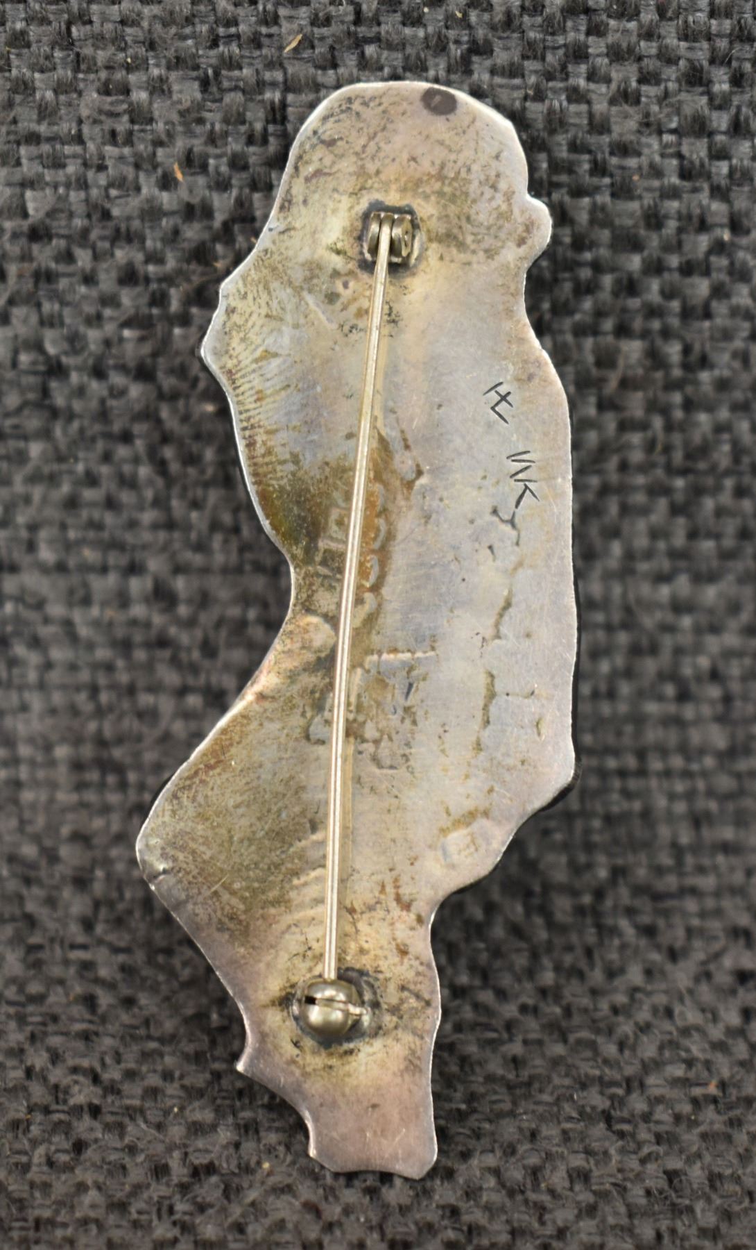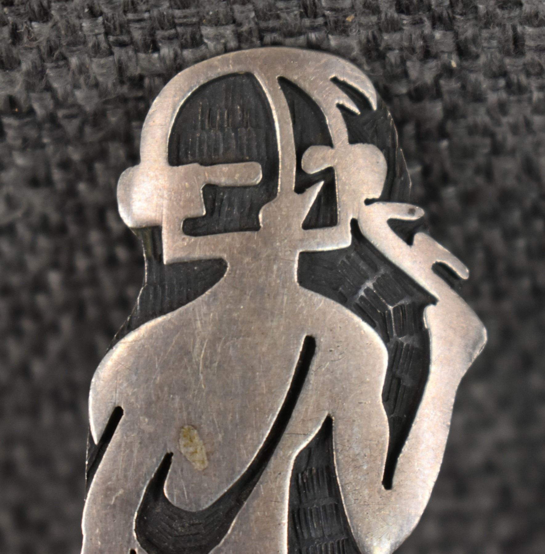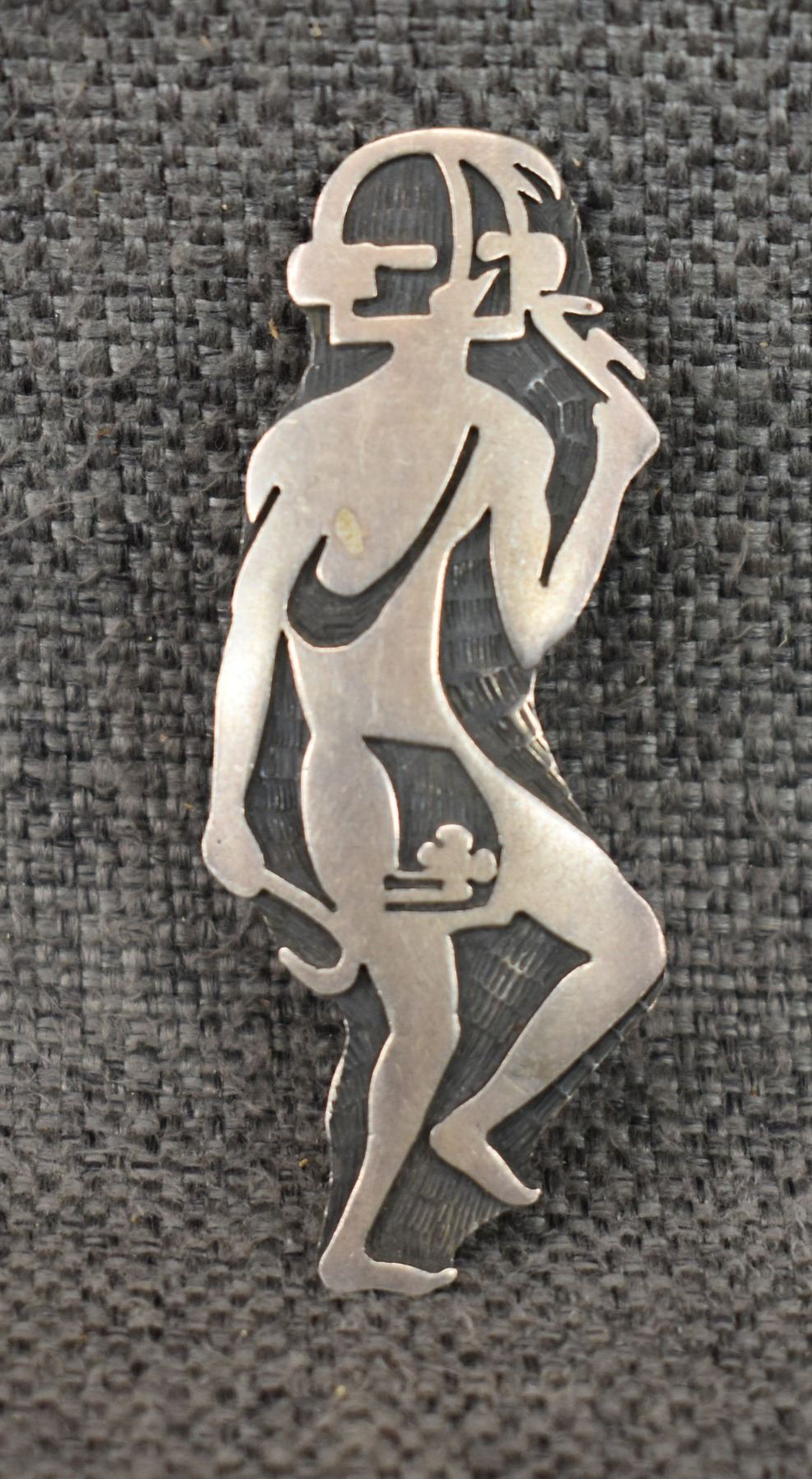 1980-90's Hopi, Sterling silver overlay kachina figure design signed with initials and HC for Hopi Craft. 2.75" x 1" total weight 12 grams