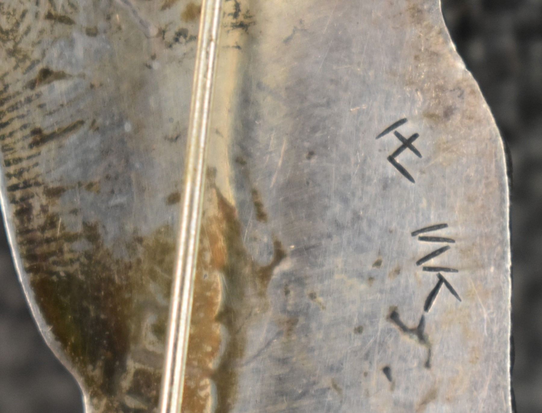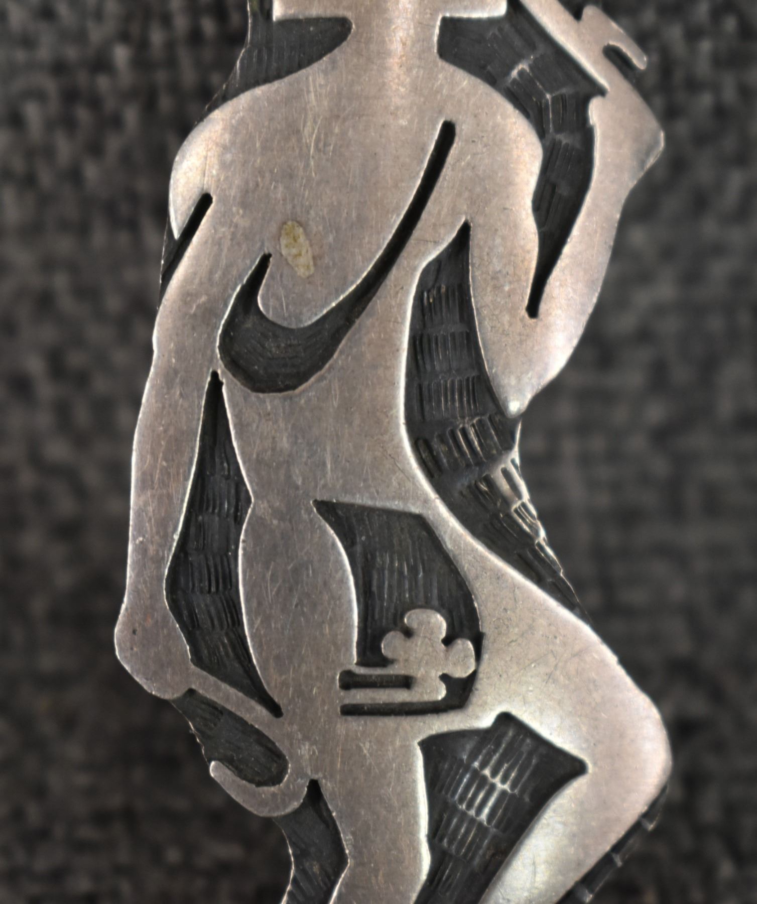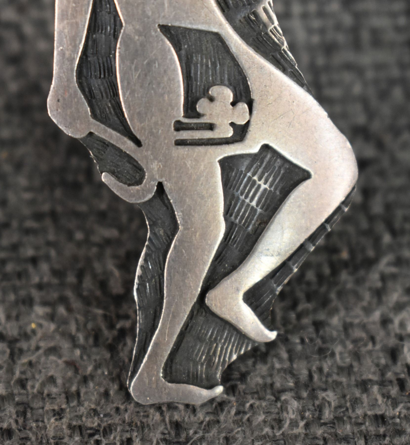 1980-90's Hopi, Sterling silver overlay kachina figure design signed with initials and HC for Hopi Craft. 2.75" x 1" total weight 12 grams