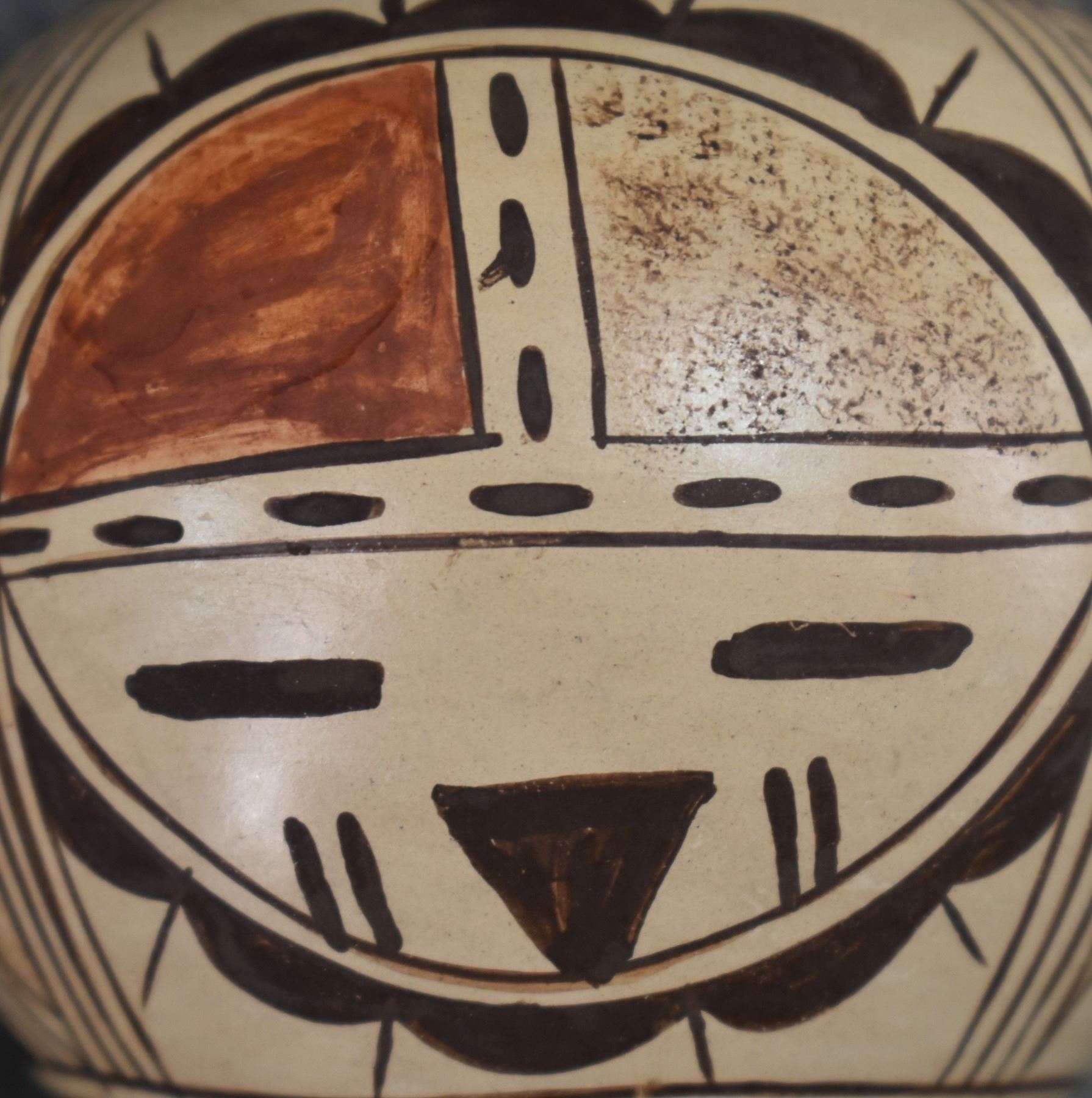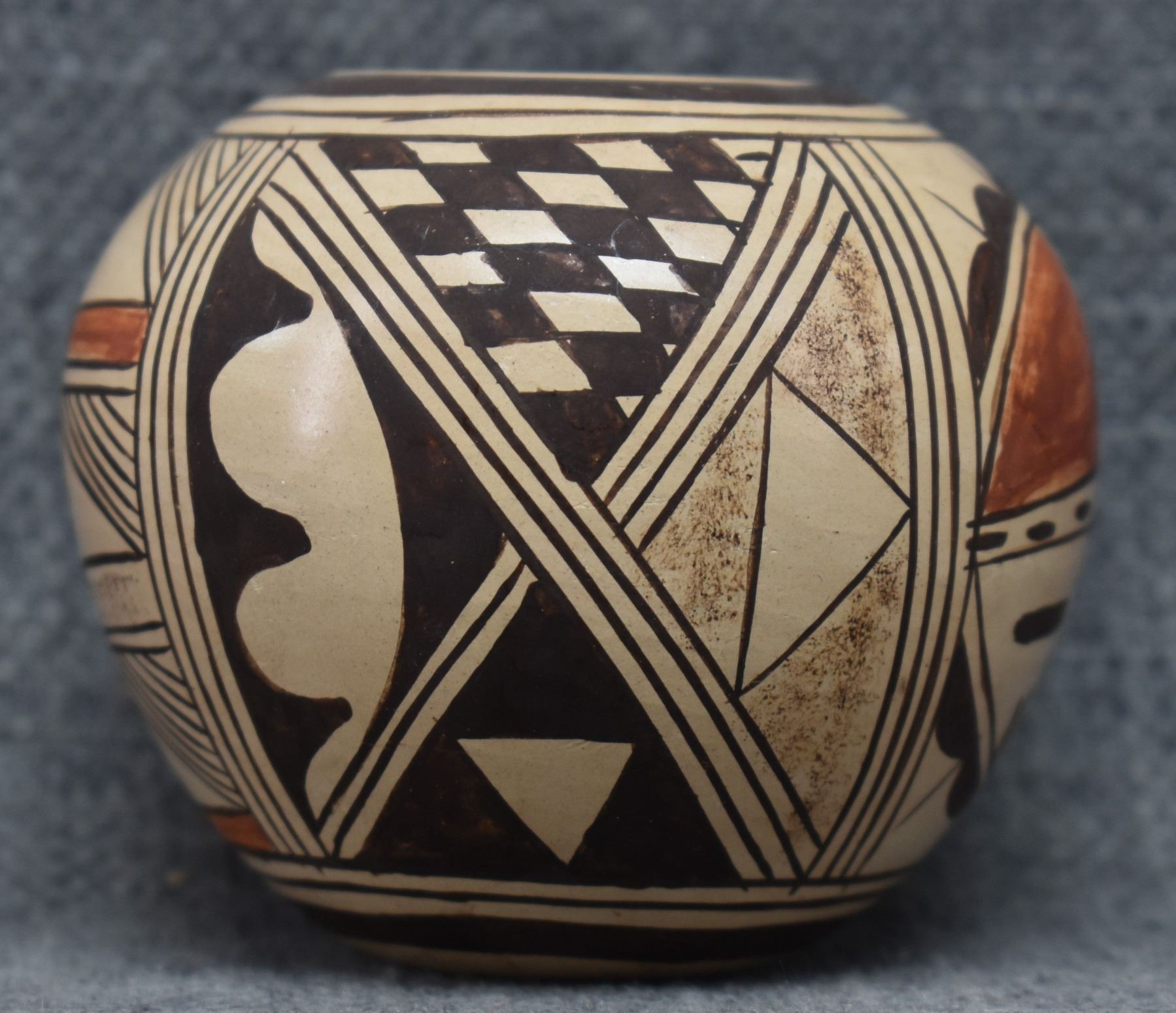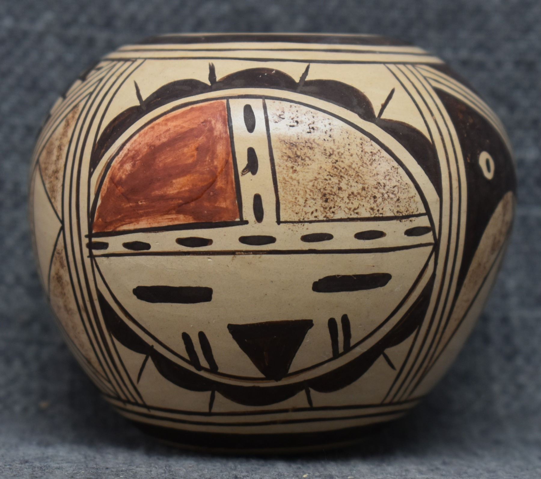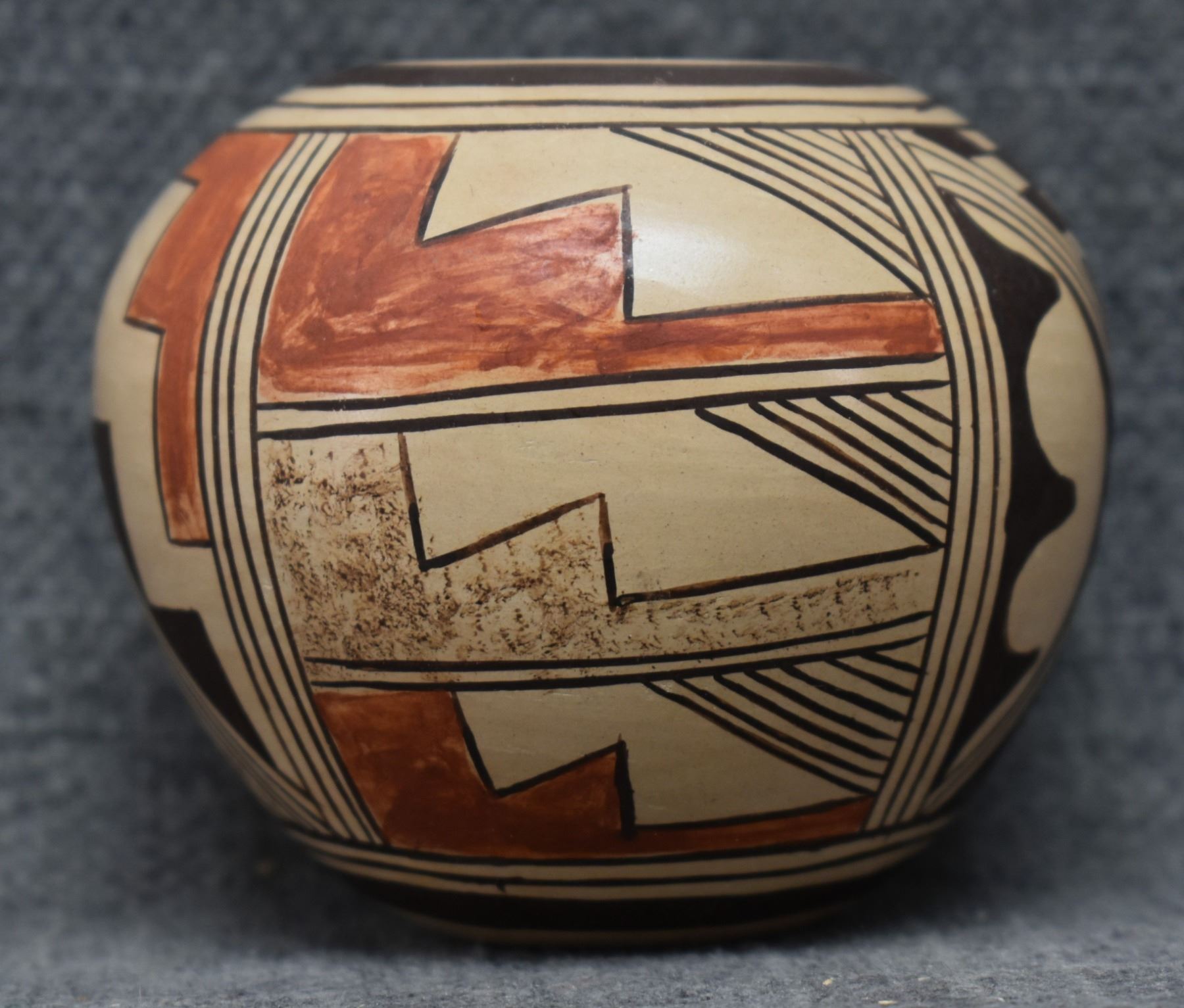 1990-2000's Hopi. hand coiled and polychrome painted design signed R.T.K. 2.5" x 3"