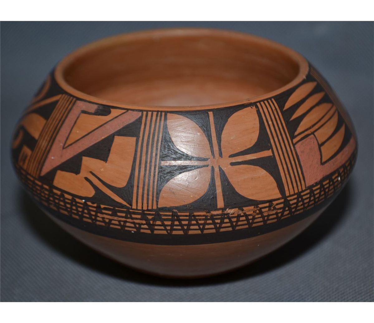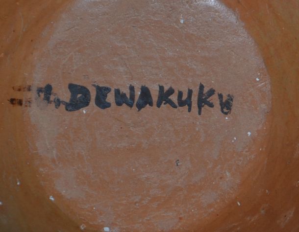 1980s 90s polychrome geometric design signed Dewakuku 2.5" x 4.25"