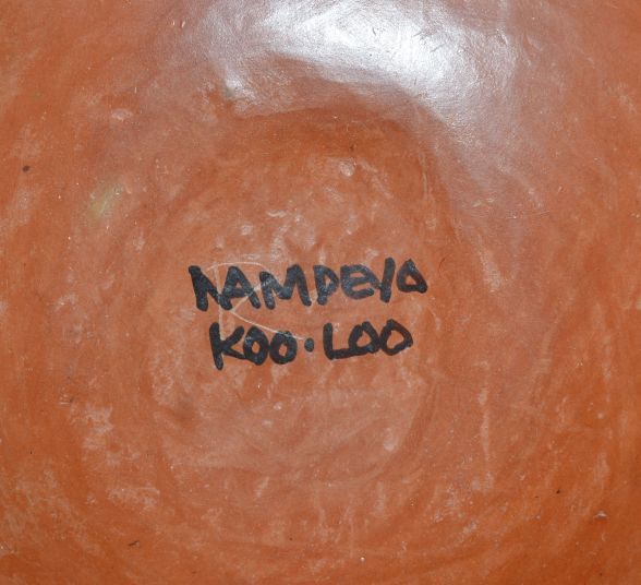 1990's polychrome bird design signed Koo-Loo for Rachel Sahmie,3" x 9"