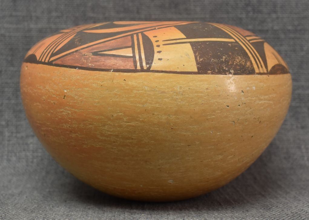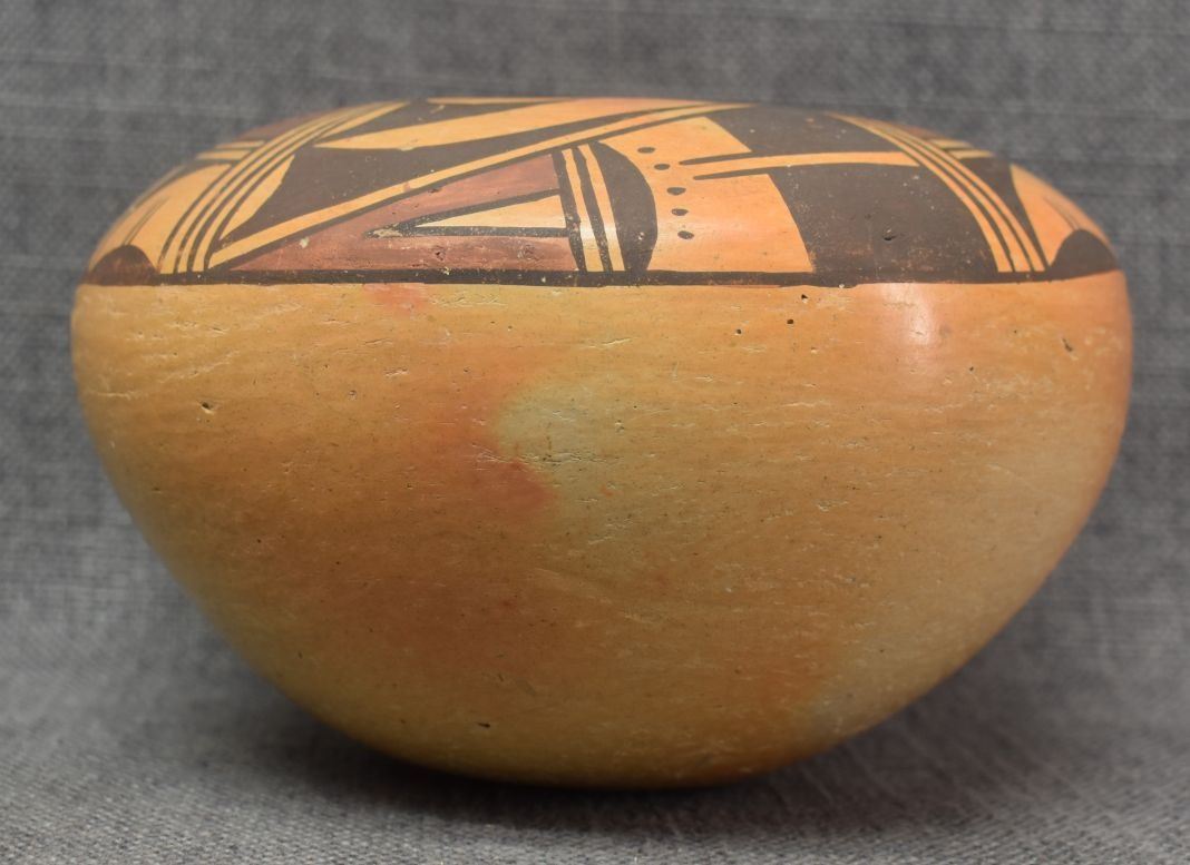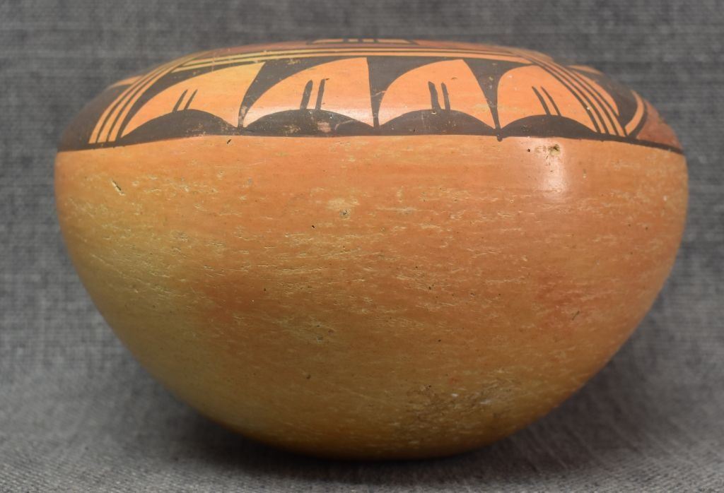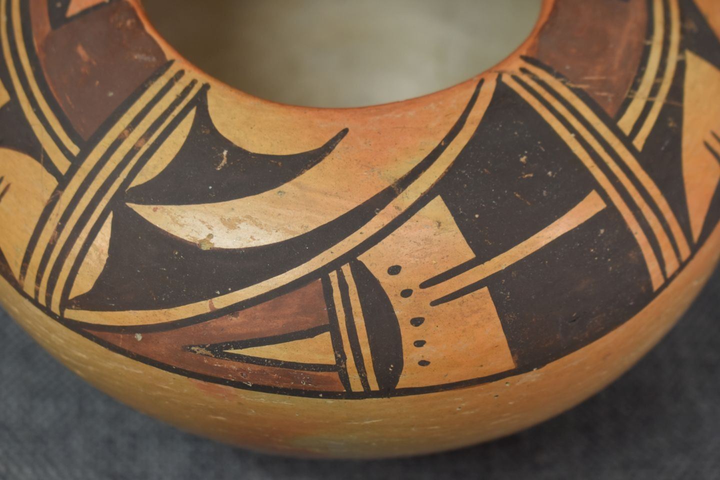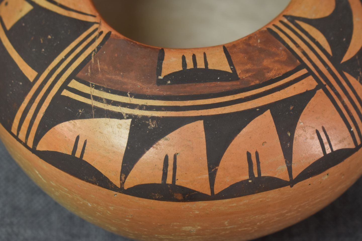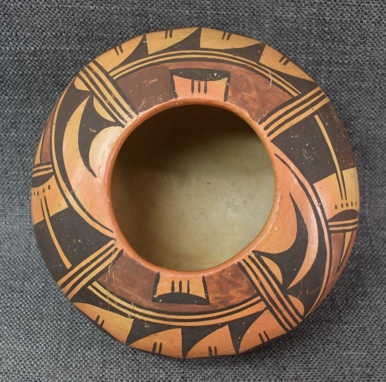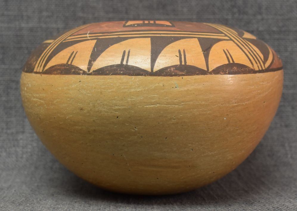 1960-70's Hopi, hand coiled with polychrome painted design 4.25" x 7"