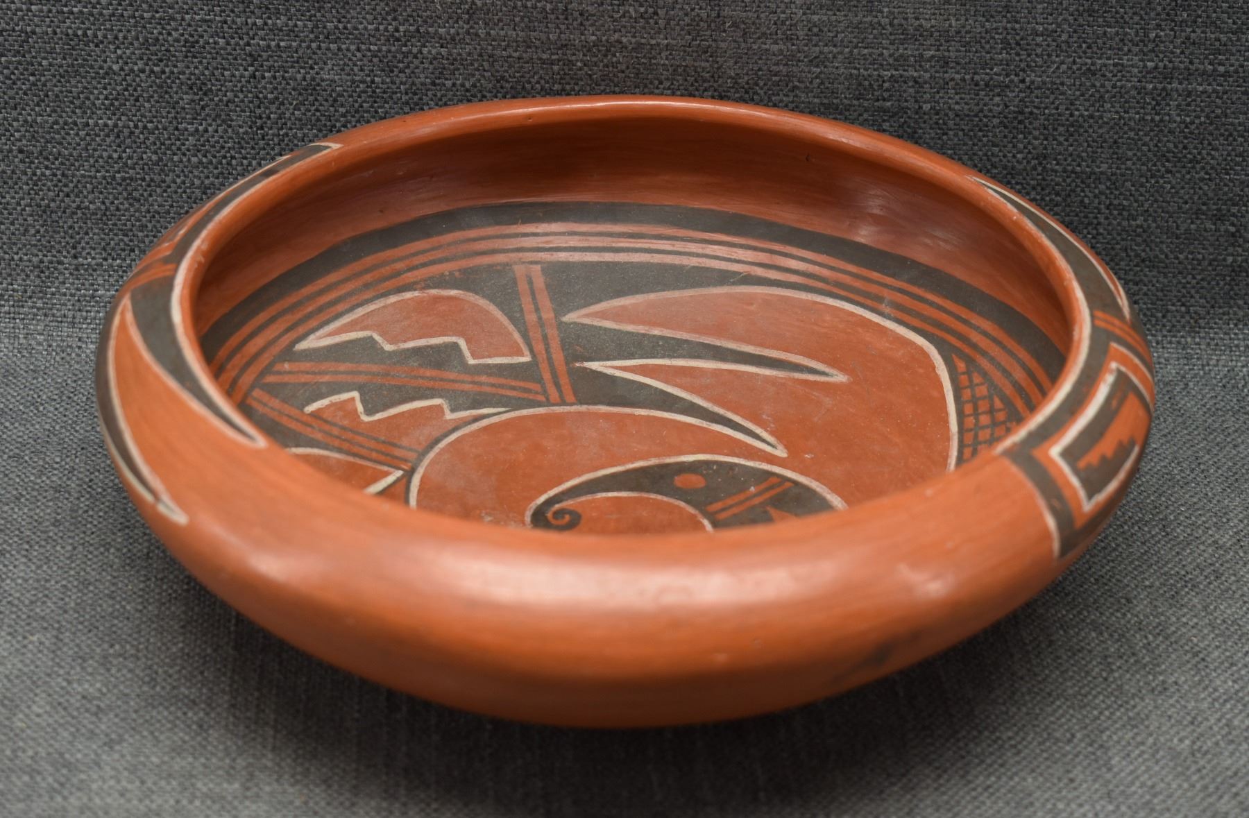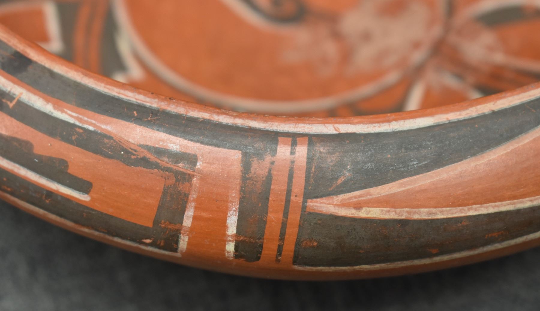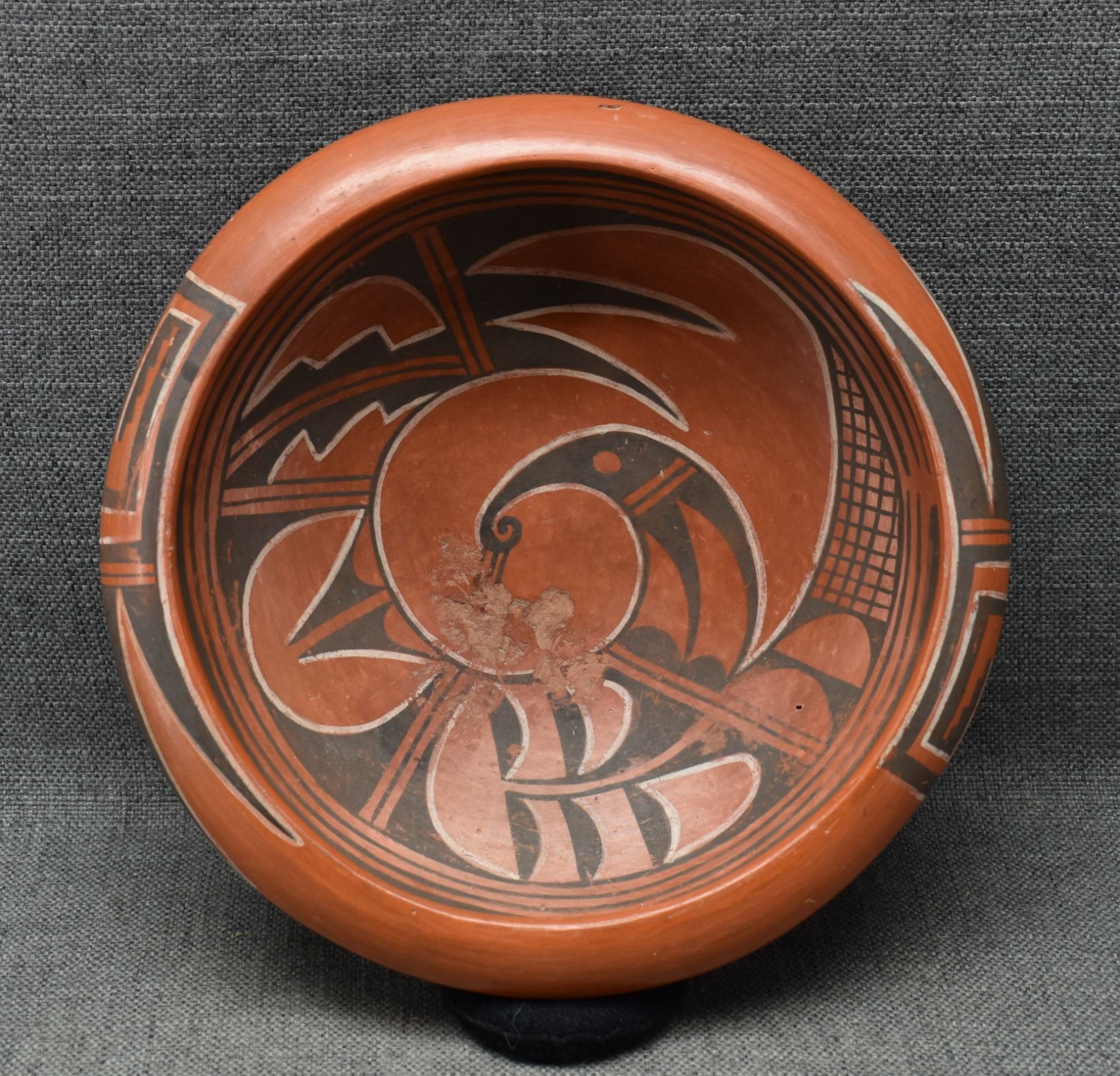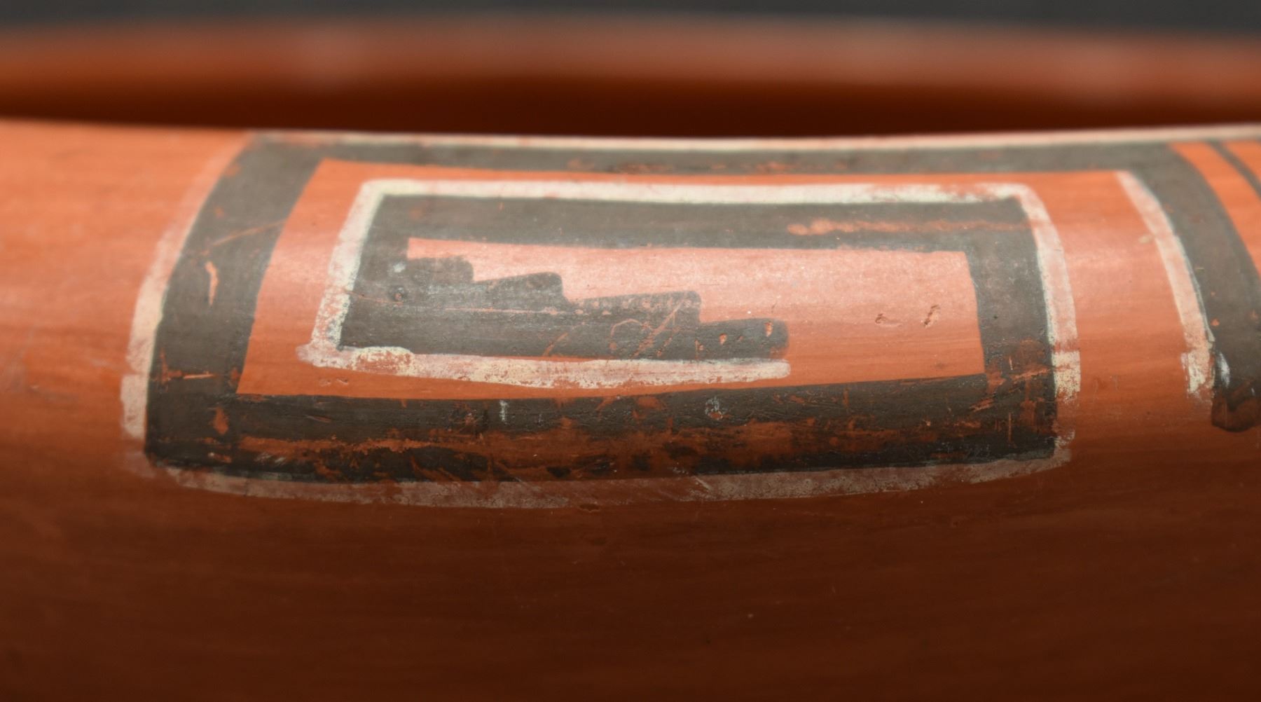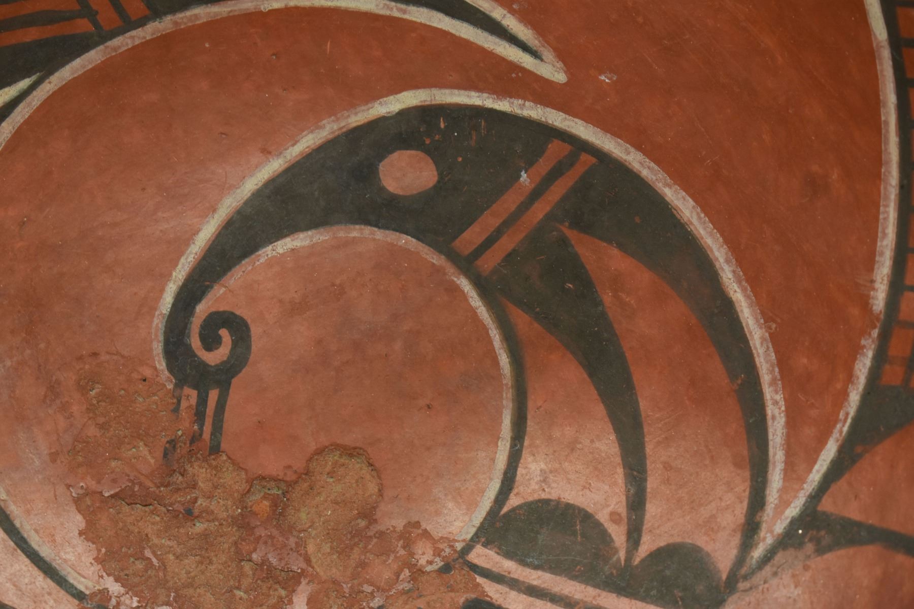 1920's Hopi. Hand coiled and painted design. 3.5'' x 10'' unsigned , has pitting