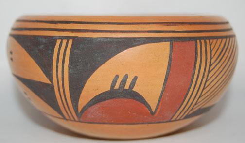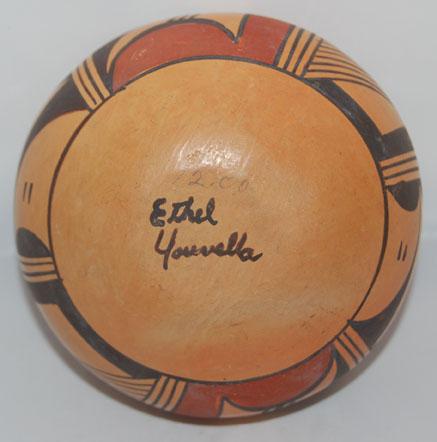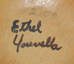 1970'S polychrome design, signed Ethel Youvella, 1.75" x 3.5"