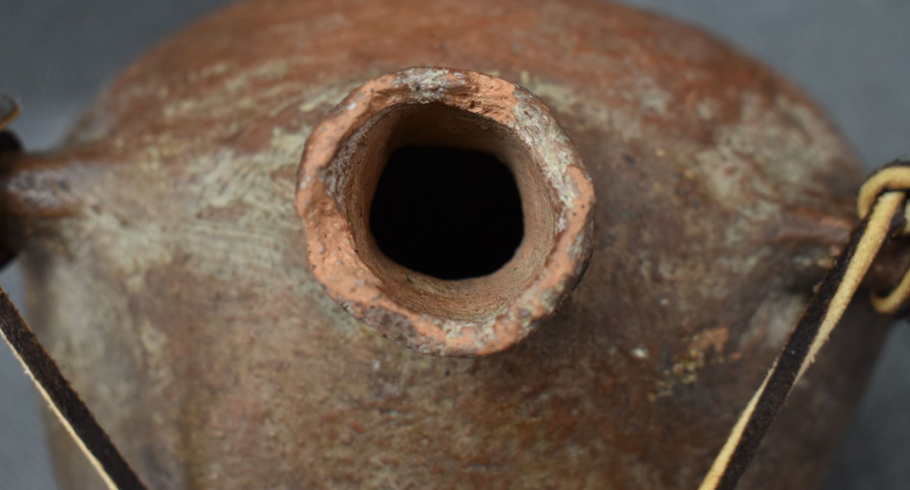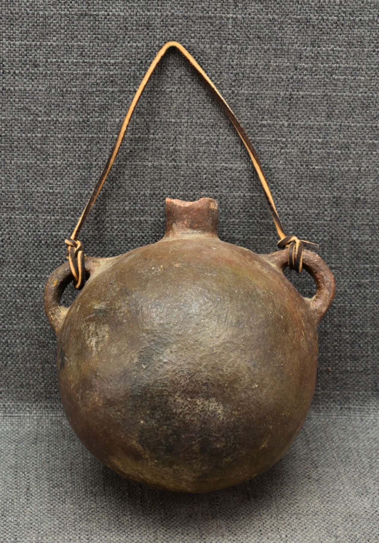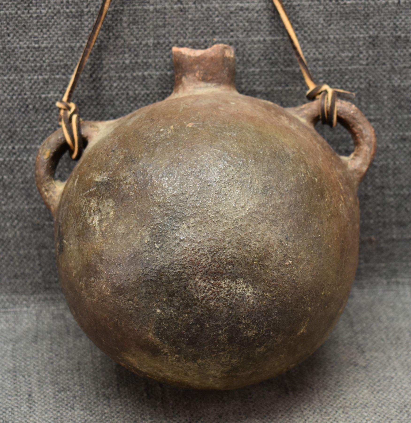 1900's Hopi Indian. Hand coiled plan ware pottery canteen. 7'' x 5'' x 7''