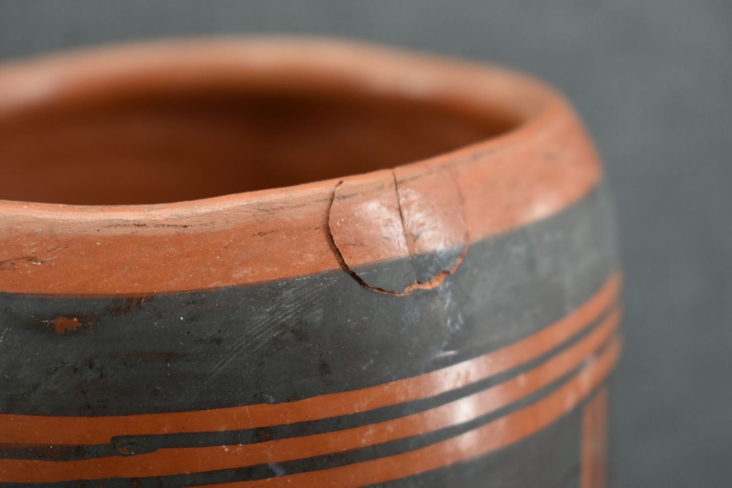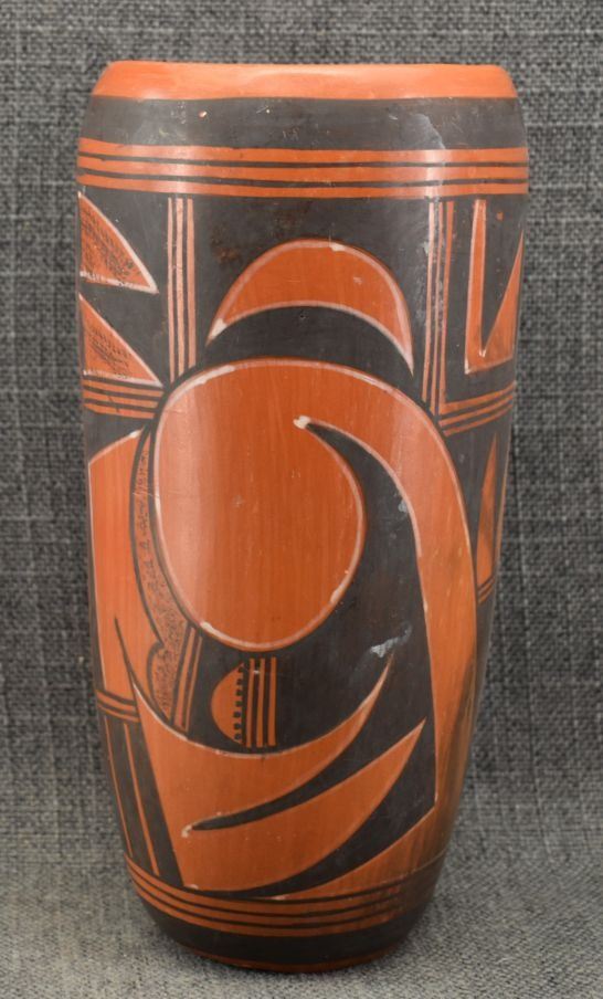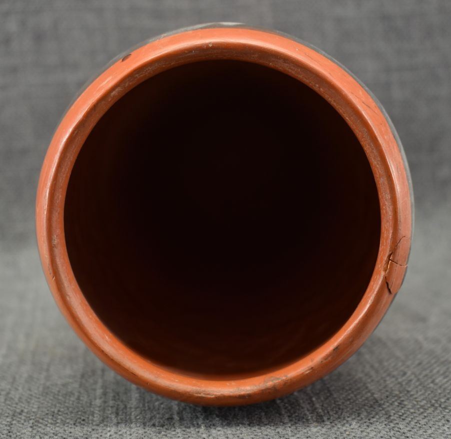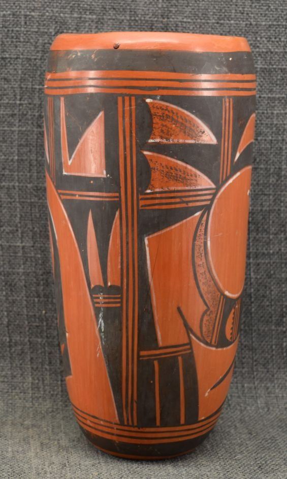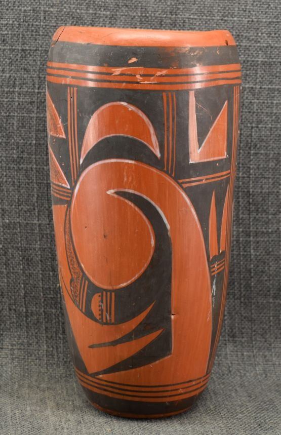 1960's Hopi, hand coiled with polychrome painted sityaki style birds 9.25" x 4.5", has glued chip on rim