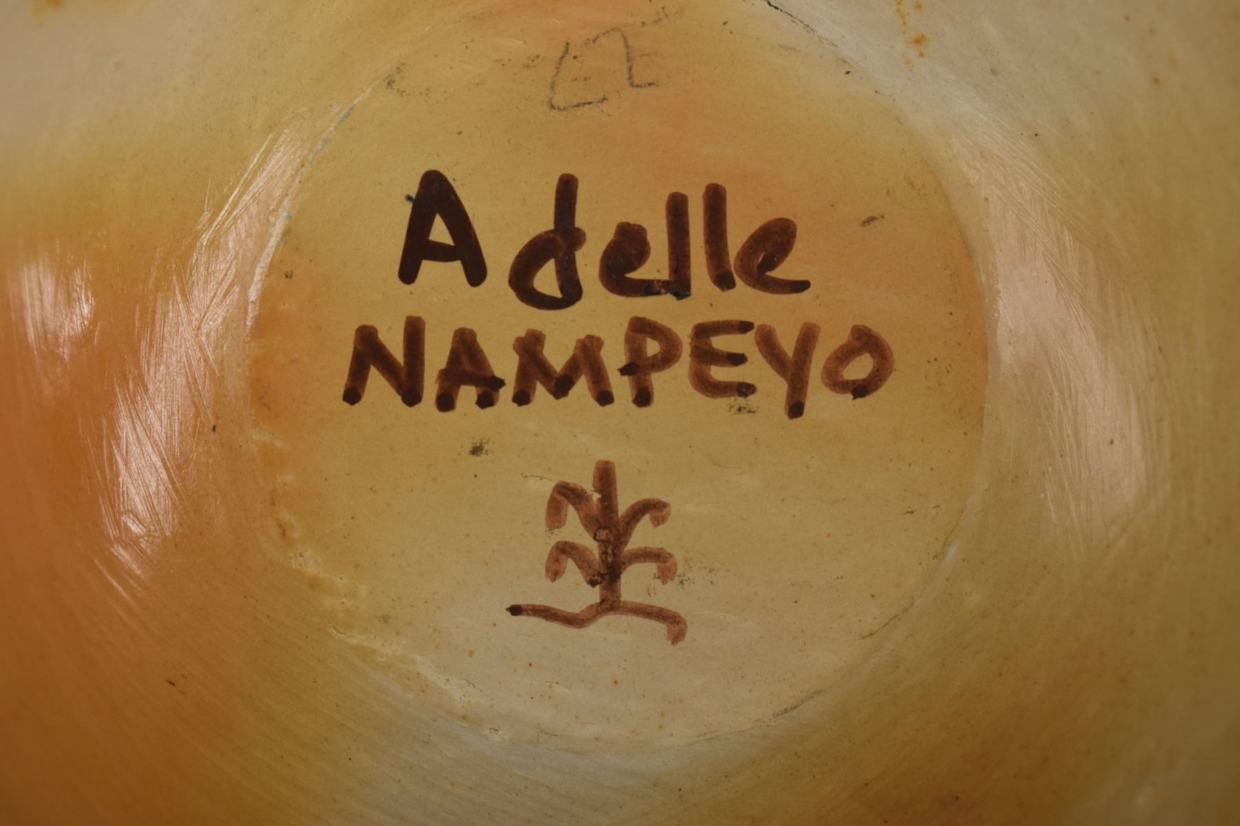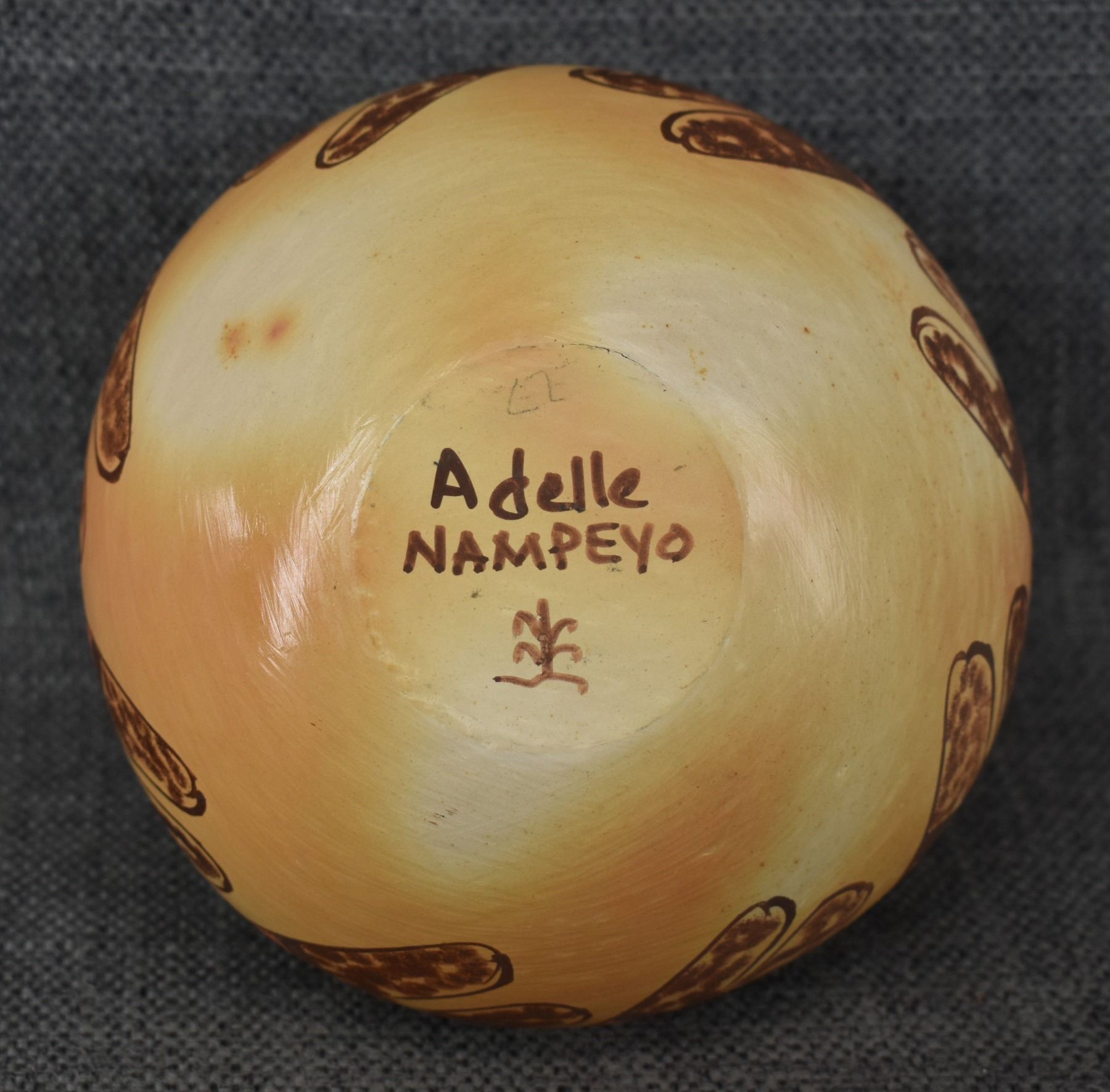 1970's Hopi hand coiled with polychrome painted design signed Adelle Nampeyo. 5" x 5"